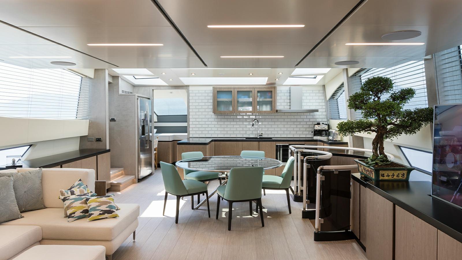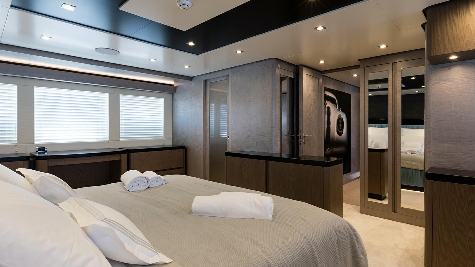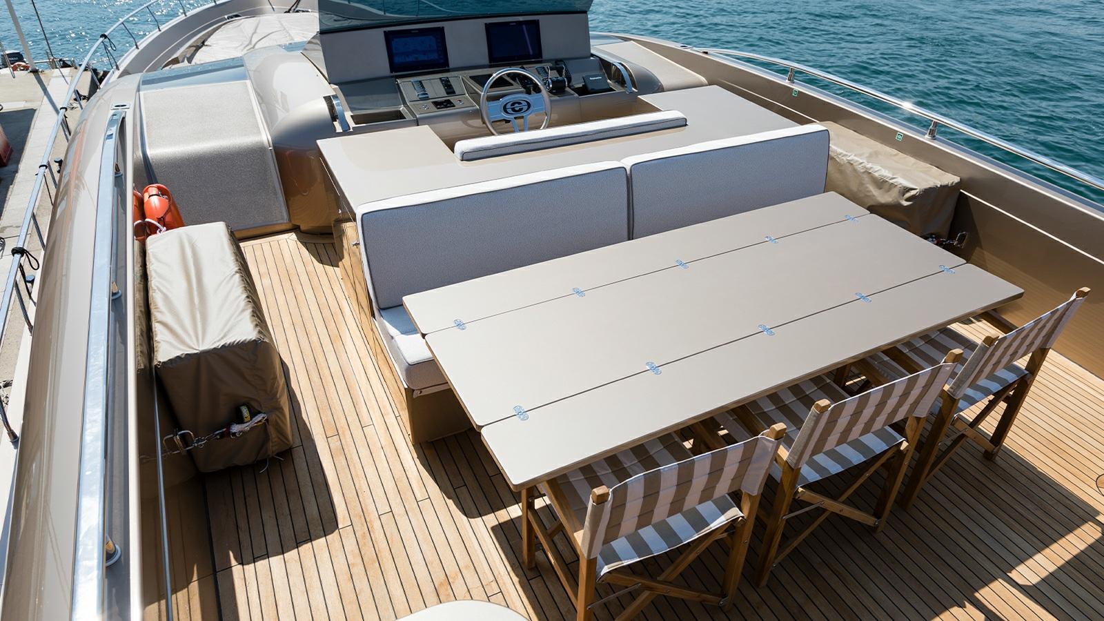Les lignes sobres, l’équilibre des masses, les ouvertures de coque mesurées, les puissances inclinées et alignées, la superstructure profilée et non imposante, il y a toutes les caractéristiques stylistiques et caractéristiques du sentiment familial de la maison qui sont harmonieusement appliquées sur le nouveau Sanlorenzo SL102.D’une idée originale de Chris Bangle, le brillant designer automobile aux techniciens et décorateurs d’intérieur du chantier naval, jusqu’à Bernardo Zuccon, le jeune architecte fils de l’art, qui avec sa sœur Martina dispense des idées et du professionnalisme au secteur dans la continuité du studio Zuccon International Project. Pont principal:Grand salon avec canapés et table à manger avec des hauts et des bas.Cuisine équipée de meubles laqués blancsBain rond.Double cabine principale avec grande armoire et salle de bains.Pont inférieur:Deux cabines VIP à l’arrière avec lits doublesCabine double Cabine avec 3 lits (un lit bus)Équipage:Hébergement Bow, 5 lits dans 3 cabines., et salle à manger.Cabine du capitaine avec salle de bainDeux cabines avec lits superposés et deux salles de bains.Equipement électronique de navigation:2 AIS (Raymarine RS150), Antenne radar, Compas (magnetica Riviera BWA CMC), Commande électrique, Ordinateur fixe de bord, Compteur de chaîne, Moniteur (multifunzione Raymarine), GPS (Raymarine), Joystick (Sidepower per eliche di prua e poppa), Pilote automatique (Raymarine P70RS), Plotter GPS, Radar (Raymarine).Equipement de pont:Alarme gaz, Alarme moteur, Alarme de pompe de cale, 2 Ancre (136 Kg ciascuna), Eau sous pression, Douche de cockpit, Double barre à roue, Propulseur de poupe (idraulica), Propulseur d'étrave (idraulica), Passerelle, Plateforme arrière, Pompe de cale automatique (Gianeschi), Porte latérale, Cockpit en teck, Prise de quai, Connexion eau sous pression à quai, Guindeau électrique, Echelle de bain, table de cockpit, Annexe (Wlliams 445).Equipement intérieur:Air conditionné (CONDARIA 180.000 BTU/h), Ballon d'eau chaude, Air Conditionné, Dessalinisateur (230 LT/h), Prises interieures 12v, Prises interieures 220v, Toilettes électriques.Divers:Antenne satellite TV, TV (65'' in salone).Equipement de confort:Cuisine, Réfrigérateur extérieur, Lave-vaisselle, Lave-linge, Plaque vitrocéramique.Sellerie et tauds:Sellerie complète.Notes équipement:Table de hauts et bas dans le salon, terrasse dans le salon, pizero speed cmc, vents de câble de quai électrique, 3 compresseurs condaria. batterie supplémentaire carcabatterie pour batteries de générateur, lavage de chaîne, caméra de vision nocturne Flir port USB B & B