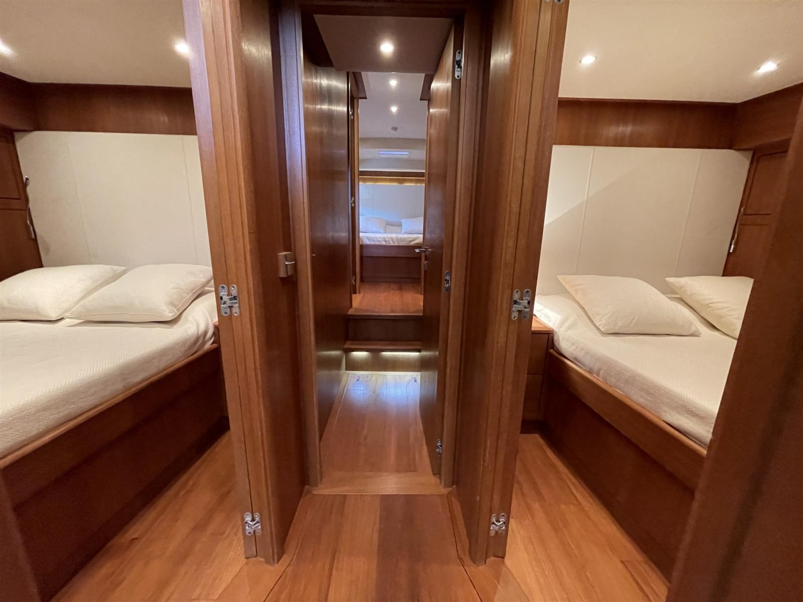 FERRETTI 1000 est un yacht à moteur de 30,13 m, construit en Italie par Ferretti Yachts et livré en 2022. Sa vitesse maximale est de 28 nœuds et sa vitesse de croisière est de 24 nœuds, équipé de deux moteurs MTU 2000 M96L de 2 638 CV. Il peut accueillir jusqu’à 10 personnes dans 5 cabines, avec 5 membres d’équipage prêts à répondre à tous leurs besoins. Il a une jauge brute de 190,0 GT et une largeur de 6,81 m.Le design extérieur est le résultat du travail habile de Filippo Salvetti, tandis que les intérieurs du yacht ont été conçus par IdeaeITALIA.Par rapport aux yachts à moteur de taille similaire, FERRETTI 1000 a une vitesse de pointe supérieure à la moyenne de cette gamme et son volume est supérieur de 3,34 GT.Equipement électronique de navigation:AIS (transponder SIMRAD NAIS500 (RX-TX)), Indicateur d'angle de barre, Antenne radar, Compteur de chaîne, Joystick.Equipement de pont:Alarme gaz, Alarme moteur, Alarme de pompe de cale, 2 Ancre (Pull da 105kg e 2 catene 13mm lung. 150 mt), Eau sous pression, Passavant en teck, Douche de cockpit (a poppa), Propulseur de poupe (idraulica 40hp), Phare de poursuite, Garage à annexe, Bossoirs pour annexe, Hard top (con vetro fisso), Éclairage de courtoisie, Spots sous-marins, Passerelle, Porte latérale (movimentazione elettrica), 2 Porte latérale (su lato destro e lato sinistro ad apertura manuale), Connexion eau sous pression à quai, Répétiteur électronique (Simrad 16''), 2 Stabilisateurs (Seakeeper + Pinne Zero Speed), table de cockpit, Winch, Winch électrique avant (Upgrade con due verricelli maggiorati 3,5 KW).Equipement intérieur:Air conditionné (tropicale (salone,cabine e equipaggio)), 2 BBQ/ Grill (Gaggenau sul fly), Connexion à internet, Gradateur de lumière, Dessalinisateur (360 l/h), 2 Réservoir d'eau noire (330 l in aggiunta a std), Caméra vidéo (kit con ciclico).Divers:Antenne satellite TV (antenna SAT KVH TV8 + dome vuoto), TV Ready (predisposizione TV SAT in tutte le cabine), 7 TV.Equipement de confort:Sèche linge, Four (90cm), Réfrigérateur extérieur (aggiuntivo sul fly), Réfrigérateur intérieur (4 porte con dispenser acqua e ghiaccio Samsung), Machine à glaçons (aggiuntivo sul fly), Lave-vaisselle, Lave-linge, Four micro-ondes (ad incasso), Plaque vitrocéramique (ad induzione 5 fuochi), Winecooler.Sellerie et tauds:Bimini (copertura dinette con pali), Taud électrique (e oscuranti in tutte le cabine e saloni), 2 Taud de soleil (3 pezzi in pozzetto e sul fly con pali in carbonio).Notes équipement:Braguette en teck avec commentaires noirs - Table d’étrave en teck naturel avec système de montée et de descente - Chaises longues à l’arrière avec housses - Porte-déchets dans le cockpit - Peinture des instruments de navigation - Nom du bateau arrière rétroéclairé - Auvents en maille noire pour le pare-brise et les côtés du pont - Lits coulissants dans les cabines d’invités - Stores vénitiens dans la cuisine - Sorties Shuko dans tout le bateau - Bidet dans les salles de bains LD - Mise à niveau du contrôle NAVIOP - Moniteur Simrad Upgarde sur le pont et le fly - Réfrigérateur dans la zone de l’équipage - Parquet dans le carré et la cuisine (noyer américain brossé) - Parois nervurées dans les 4 cabines LD - Éléments hauts fermés dans la cuisine - Salle de bain haut et sol dans le salonMarbre Calacatta Oro Valakas - Salles de bains du pont inférieur : lavabo, sol (y compris grille de douche) - Marbre dans la salle de bain du propriétaire y compris vanité dans la cabine - Revêtements extérieurs - Canapé salon Minotti MIrò Sabbia - Rideaux recourbés Casamance Kanso - Fauteuil Minotti Fynn en nubuck vert - Table basse d’appoint Minotti en cuir de sauge/sauge - Chaises de salle à manger Cattelan Magda - Cuisine avec portes blanches et plateau en laminam fokos/soldé - Tête de lit propriétaire en lin Dedar Svevo - Cadre de lit propriétaire marron Dani Dani - Dessus de meubles propriétaire Nuvola - Dani Nabuk Canapé propriétaire marron - Minotti Reeves Petit fauteuil de propriétaire - Tapis de pont inférieur en bambou Eros - Cadre de lit en kaki Nuvola et pouf du pont inférieur - Siège de barre en similicuir gris - Dessus d’armoire de bar en teck - Étagères de bar en verre fumé - Tabourets Roda Piper avec coussins - Table à mouches (tables d’extérieur entièrement naturelles) - Rembourrage extérieur Roda Sand - Canapé à mouches Roda Sand - Chaises Orson Batyline Sand x 5 - Sièges de barre Olympus Light Candido - Prises de salon - Ventilateurs d’extraction dans les salles de bains - Fenêtres en verre fumé sur l’escalier volant - Prédisposition électrique pour le verre rétroéclairé du nom du bateau arrière - Poste de contrôle fixe dans le cockpit avec couvercle - Station diesel dans le garage pour annexe - Douche dans la salle de bain des invités - Préparation de la chambre FLIR - Prédisposition TV dans la cabine du capitaine - Chaises de cockpit - Annexe et mise à l’eau du jet ski