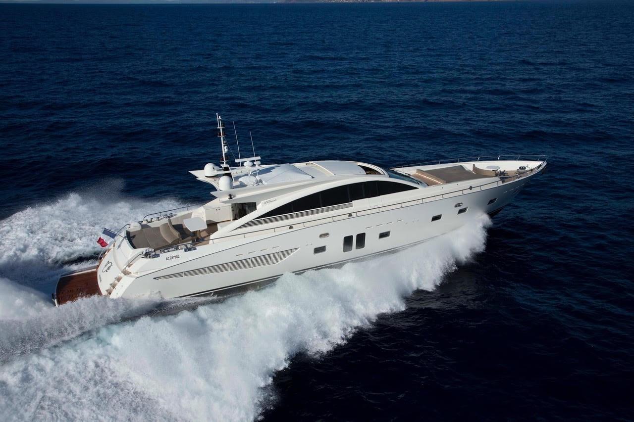 Guy Couach 2800 de 2013 équipée de 2 moteurs MTU de 2.400 CV (1.250h).Yacht à semi déplacement, coque planante, équipé de stabilisateurs Seakeeper.Propulseurs d'étrave et de poupe, toit ouvrant webasto, caméra infrarouge FLIR,..4 cabines doubles dont une suite, 1 VIP, 2 Guests + cabine équipage (2p).Vitesse de croisière : 27 noeuds / Vitesse max : 38 noeuds.Inventaire complet sur demande.Equipement électronique de navigation:AIS, Antenne radar, DSC VHF, GPS (Furuno), Pilote automatique (Furuno), Radar (Furuno), Sondeur (Furuno).Equipement de pont:Ancre (90kg + chaîne inox 130m), Passavant en teck, 6 Chargeur de batterie, Douche de cockpit, Garage à annexe, Hard top, Extincteur(s) fixe(s), 4 Spots sous-marins, Plateforme arrière, Cockpit en teck, Prise de quai, Guindeau électrique (Lofran's Ercole 400V, 3500W), Stabilisateurs (Seakepper), table de cockpit, Pont en teck, 2 Winch électrique arrière (2000W).Equipement intérieur:2 BBQ/ Grill (Plancha), 3 Ballon d'eau chaude, Cuve à eaux noires, 3 Caméra vidéo (FLIR, Salle machine, AR), 5 Toilettes électriques.Equipement de sécurité:Equipement sécurité jusqu'à 50 miles.Divers:Radio AM/FM, Hi-Fi.Equipement de confort:Sèche linge, Cuisinière (induction x 4), Four (cuisson vapeur MIELE), Réfrigérateur extérieur, Lave-vaisselle, Lave-linge.Sellerie et tauds:Taud de cockpit.Notes équipement:Marpol compliant