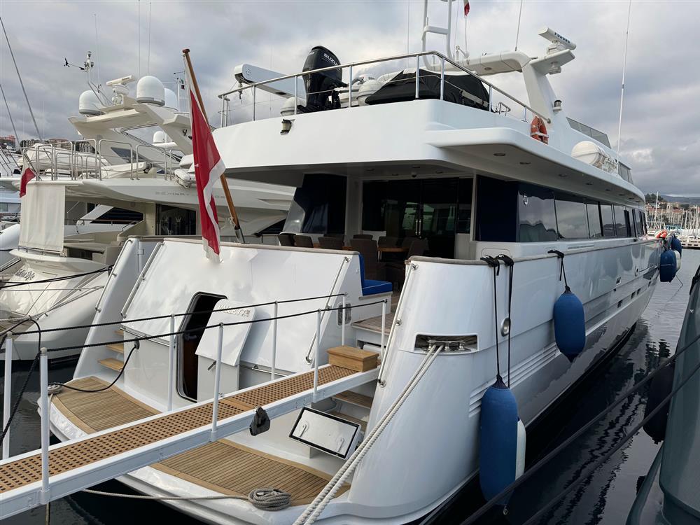 L’Aquarius IV, un yacht à moteur de 35 m construit sur mesure par CBI Navi, affiche une élégance intemporelle avec son design distinctif de Willem de Vries Lentsch, Jr. Construit à l’origine en 1995 conformément à la certification Lloyd’s Register 100 A1, le navire a subi un important refit en 2013, qui comprend le remplacement complet du teck sur tous les ponts. De plus, au cours des cinq dernières années, le yacht a fait l’objet d’un entretien approfondi et approfondi, y compris une révision des moteurs et des générateurs à l’heure zéro, ainsi qu’une révision de tous les systèmes et une restauration complète des salles de bains. Capable de naviguer à une vitesse de croisière de 10 nœuds, l’AQUARIUS IV dispose d’une autonomie incroyable de 5 200 milles nautiques, ce qui le rend idéal pour l’exploration prolongée des océans. Avec sa combinaison de charme classique et de confort moderne, ce magnifique navire offre une expérience de navigation exceptionnelle pour ceux qui recherchent le style et le luxe sur l’eau. Contactez-nous pour plus de détails.Equipement électronique de navigation:AIS (AIS FURUNO FA-100), Antenne radar, Compas (Sperrymarine Navigat XMK2), Ordinateur fixe de bord, 2 GPS (1 x Furuno GPS/WA AS NAVIGATOR GP 32 e 1 x Furuno GPS/WA AS NAVIGATOR GP 37), Interphone (Panasonic), Pilote automatique (C.plath Navipilot V), Lecteur de cartes (Nobeltec Time zero), 2 Radar (JRC X Band), Radio VHF (JRC NCM-1770), Anémomètre/Girouette (Raymarine), Téléphone satellite (Iridium).Equipement de pont:Alarme gaz, 2 Alarme moteur, Alarme de pompe de cale, 2 Ancre (350 kg), Ouverture du compartiment moteur électrique, Batteries (Gelcel-Victron), 2 Passavant en teck, Chargeur de batterie (Automatic Mass charger-master volt MASS24/100 3 phase), Propulseur d'étrave (Hydromarine BT-2006 Type A4V90EL 2x H55D1500 Clutch Hidraulic pump-shaft driven), Bossoirs (Napoli Paolo e figli snc), Extincteur(s) fixe(s) (Gianeschi&Ramacciotti), Compresseur de plongée (Abac 24 lt 2hp), Jet-ski (SEADOO 230 HP M/y 2018), Passerelle, Pompe de cale automatique, Porte latérale, Cockpit en teck, Prise de quai, Connexion eau sous pression à quai, 2 Guindeau électrique (CBI navi (custom made)), Echelle de coupée, Echelle de bain, Stabilisateurs (Koop Nautic - Sea Rocq 3050), table de cockpit, 2 Annexe (+ 3x SEABOB F5s, 1x Towable toy, 1x watersky1x SUP, 1x inflatable slide, 1x inflatable platform (m 3x3)), Corne.Equipement intérieur:Air conditionné (Marine Air System Dometic MCGV120 380/3ph - cap 240.000 Btu), BBQ/ Grill, 4 Ballon d'eau chaude (Gianneschi 500lt), Dessalinisateur (Fresh Water Maker Tecnicomar model SYS8/1000/MD 450lt / hour), Cuve à eaux noires (Hamman System (600Lt)), Plancher intérieur en bois, Réservoir d'eau noire (600 lt), 4 Caméra vidéo (Polysion system, Philips 20” Monitor), 6 Toilettes électriques (1x Master,1x VIP, 2x Guests, 1x Capt., 1x Crew).Equipement de sécurité:Balise de détresse (Sailor Cobham), 4 Radeau de survie (EV Iso 9650).Divers:27 Haut-parleurs, Antenne satellite TV (Seatel Cobram), 6 DVD (1x Yamaha DVD-DX, 3x Samsung bluray, 1x LG bluray disc, 1x Sony DVD bluray), 6 Hi-Fi (JVC stereo), 9 TV (Main salon Samsung 48” HD TV; Master Cab. Samsung 26” HD TV; Guests Cab. Samsung 28” HD TV; VIP cab. Samsung 32” HD TV; Capt. Cab. Samsung 24” HD TV; Galley LG 28” HD TV; Fly Samsung 48"; Stern living 2x LG 40” HD TV;).Equipement de confort:Sèche linge (Miele), 3 Congélateur (1x Beko; 2x Vitifrigo), Cuisine, Four (Dexion), 2 Réfrigérateur intérieur (1x Zanussi; 1x Klarstein), Machine à glaçons (Hoshizaki), 2 Lave-vaisselle (Miele), Lave-linge (Miele), Machine a café, Four micro-ondes (Samsung), 4 Plaques électriques, Winecooler.Sellerie et tauds:Sellerie complète, Coussins arrieres, Coussin avant, Sellerie de fly, sellerie de cockpit.Notes équipement:- Filtres à eau douce Idromar- Système de pression d’eau douce Well Mate.