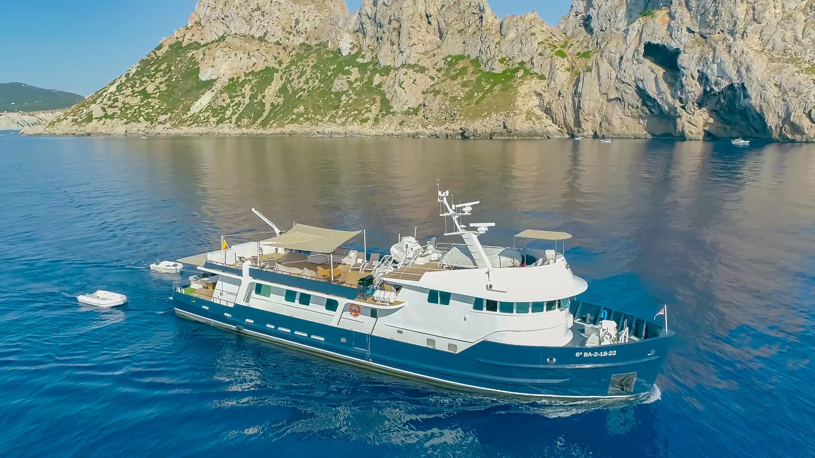 La goélette Steel Motorsailor 34MT est un voilier à coque d’acier construit en 2007 par le célèbre chantier naval Mastori Yachts à Bodrum, en Turquie. Ce yacht de 34 mètres combine l’élégance classique des bateaux turcs traditionnels avec un design contemporain et des solutions techniques modernes. Construite selon les normes RINA et IACS, la coque garantit solidité et sécurité lors de la navigation. Avec 592 m² de surface de voilure et deux moteurs MAN de 440 CV, il offre une navigation en douceur aussi bien à la voile qu’au moteur, avec des vitesses de croisière de 10 nœuds et un maximum de 12,4 nœuds.Conçue pour accueillir jusqu’à 10 personnes dans 5 cabines luxueuses, la goélette offre également des quartiers séparés pour l’équipage. Les extérieurs font partie de ses points forts : le pont arrière abrite un grand espace repas extérieur avec une grande table et des sièges rembourrés, parfaits pour les dîners conviviaux. Les larges passages latéraux mènent à un pont avant spacieux et plat, meublé de chaises longues et d’un coin salon confortable, idéal pour se détendre ou organiser des fêtes sous les étoiles. Les espaces extérieurs sont complétés par un solarium dédié aux bains de soleil et un second coin salon à l’avant, parfait pour les moments de calme.Équipée de nombreux équipements de sports nautiques, d’annexes et d’une technologie moderne, la goélette allie le charme de la tradition au confort contemporain. C’est le choix idéal pour ceux qui veulent faire l’expérience de la mer avec style, sans sacrifier le luxe, la sécurité et la liberté.Les intérieurs du Steel Motorsailor 34MT offrent un environnement sophistiqué, spacieux et accueillant, conçu pour assurer un maximum de confort et de détente à bord. Le décor se distingue par son style sobre et contemporain, qui rompt avec le design traditionnel de la marine lourde. Des bois précieux tels que l’acajou, des plafonds recouverts de contreplaqué marin certifié et des sols en marbre et teck confèrent à l’environnement chaleur et raffinement. L’éclairage indirect et les tons neutres créent une atmosphère relaxante, élégante et lumineuse.Le cœur de l’intérieur est le salon principal, grand et bien meublé, avec des canapés confortables, une table à manger et une télévision rotative à 360 °, également visible depuis le pont arrière. L’espace nuit comprend cinq cabines d’invités : une suite propriétaire de 50 m² avec un lit king-size, une salle de bains privative en marbre avec grande douche à l’italienne, et quatre cabines doubles avec salles de bains privatives. L’une des cabines peut être combinée avec la suite du propriétaire pour former une suite familiale, idéale pour les parents avec enfants.Chaque cabine est décorée d’œuvres originales du peintre turc Ali Atmaca. Les salles de bains sont équipées de robinets Grohe, d’appareils sanitaires Geberit et de revêtements en marbre, offrant un niveau de luxe comparable à celui d’une suite d’hôtel.La cuisine est entièrement équipée avec des appareils Arcelik et Vestel, y compris : réfrigérateurs, congélateurs, four double, grill, micro-ondes, machine à laver, sèche-linge, machines à café (filtre, turque, Nespresso), presse-agrumes et machine à glace (Neta, 2016).Un véritable environnement résidentiel en bord de mer, élégant, fonctionnel et plein de confort.Equipement électronique de navigation:AIS (SIMRAD), Indicateur d'angle de barre, Antenne radar, Compas (FLUXGATE), Commande électrique, Ordinateur fixe de bord, Compteur de chaîne, Montre de bord, Moniteur, DSC VHF, Sondeur pêche (SIMRAD), Ordinateur de bord, Interphone, Plotter GPS, Jumbo, Siège copilote, Sondeur, Téléphone satellite, Yacht controller.Equipement de pont:Alarme gaz, Alarme moteur, Alarme de pompe de cale, Ouverture du compartiment moteur électrique, Ligne d'arbre de rechange, Eau sous pression, Trim hydraulique, Enrouleur pour cable électrique, Taquets pliants, Système de vidange, Passavant en teck, canoë, Douche de cockpit, Double barre à roue, Hélice de rechange, Phares fixes arrière, Phare de poursuite, Bossoirs, Extincteur(s) fixe(s), Compresseur de plongée, Lavage de chaine, Lavabo dans le cockpit, Éclairage de courtoisie, Spots sous-marins, Jet-ski, Moteur d'annexe, Passerelle, Plateforme arrière, Pompe de cale automatique, Pompe de cale manuelle, Pont en teck, Porte latérale, Porte latérale, Cockpit en teck, Prise de quai, Connexion eau sous pression à quai, Onduleur, Répétiteur électronique, Rollbar, Guindeau électrique, Guindeau Hydraulique, Guindeau manuel, Gréement en textile, Gréement monotoron, Echelle de coupée, Echelle de bain, Selles pour Annexe, Système de filtration des eaux usées, Stabilisateurs, table de cockpit, Annexe, Corne, Pont en teck, Winch hydraulique, Winch électrique arrière, Winch électrique avant, Windex.Equipement intérieur:Alarme intrusion, BBQ/ Grill, Ballon d'eau chaude (Elettrico), Coffre-fort, Air Conditionné, Connexion à internet, Gradateur de lumière, Dessalinisateur, Cuve à eaux noires, Plancher intérieur en bois, Prises interieures 12v, Prises interieures 220v, Broyeur à ordures, Réservoir d'eau noire, Interphone, Toilettes électriques.Equipement de sécurité:Baromètre, Jumelles, Fumigène, Cartes marines, Trousse à pharmacie, Gilets de sauvetage, Equipement sécurité jusqu'à 3 miles, Equipement sécurité jusqu'à 6 miles, Equipement sécurité jusqu'à 12 miles, Equipement sécurité jusqu'à 50 miles, Equipement sécurité au delà des 50 miles, Feux à main, Gilets de sauvetage, Fusées parachutes, Fusées de signalisation, Réflecteur radar, Bouée de sauvetage, Bouée fer à cheval et feu de retournement, Tableau à outils.Divers:Haut-parleurs, Décodeur satellite, TNT, Home cinéma, Mécanisme de levage de télévision, Ordinateur, Radio AM/FM, Lecteur VHS, Windsurf.Equipem