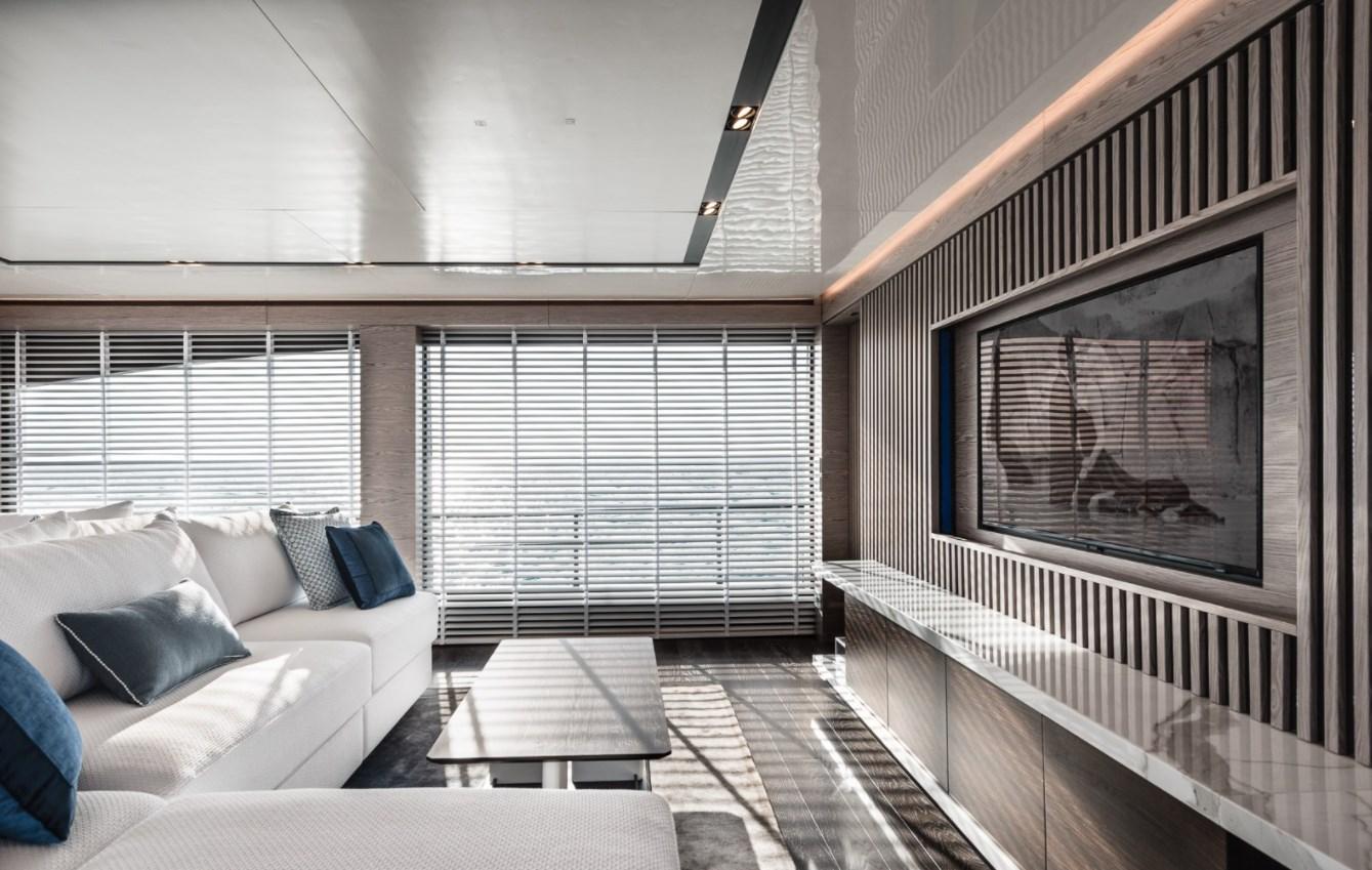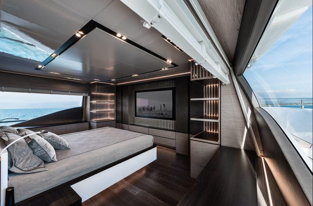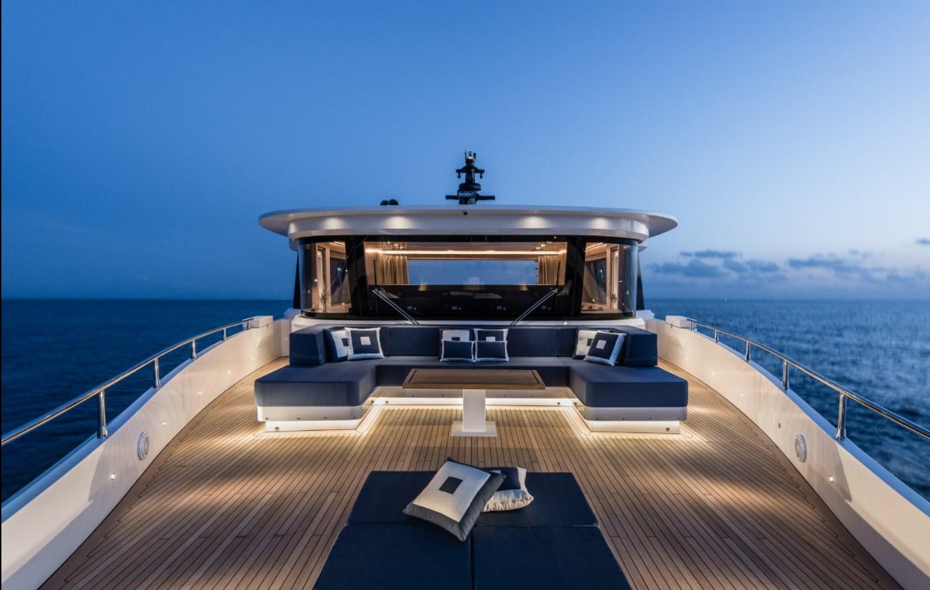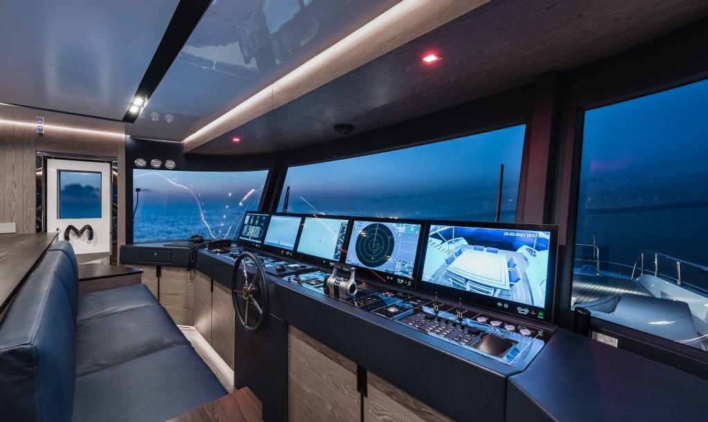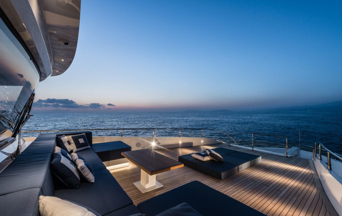 Maiora 30 Cabriolet . 30,60 mètres de long et 7,50 mètres de large permettent au Maiora 30 Cabriolet d’offrir des volumes impressionnants à la disposition de l’Armateur et de ses hôtes pour un bateau de cette catégorie. Maiora 30 Cabriolet entre dans la catégorie des bateaux de plaisance certifiés CE. Ce superyacht est appelé « convertible » pour la conformation particulière du pont supérieur, divisé en deux zones, l’une fermée et entièrement conditionnée, le Sky Lounge, et l’autre « an plain air » utilisable de différentes manières en fonction des besoins de l’Armateur. Le Sky Lounge est doté de vitraux latéraux entièrement abattables et d’une porte arrière amovible, de manière à pouvoir transformer confortablement un espace clos et réservé en un espace ouvert et aéré en communication directe avec l’espace extérieur.Le salon du Sky Lounge, d’environ 50 mètres carrés, est orné d’un mobilier sélectionné parmi les plus prestigieuses marques de meubles italiens et complété par de merveilleuses œuvres d’art.La salle est facilement transformable en faisant vivre des paysages toujours différents: elle peut être utilisée comme une salle de cinéma parfaite, où se détendre en regardant un bon film en compagnie ou comme une belle terrasse sur la mer, où vous pourrez vivre des moments de détente au coucher du soleil ou d’extrême liberté en regardant la mer, mais aussi comme salle à manger à déguster en toute intimité avec la famille et les amis. Le Maiora 30 Cabriolet se distingue par son confort et ses grands espaces. Grâce aux couloirs latéraux, tous les clients à bord peuvent marcher de l’arrière à l’avant de manière fluide et ininterrompue, offrant ainsi une expérience embarquée inoubliable. Tel est précisément l’objectif du célèbre chantier naval italien: accueillir les désirs et les besoins du client, pour lui offrir, ainsi qu’à tous ses clients, une expérience unique. Les fenêtres pleine hauteur du pont principal s’étendent le long du navire fortifié et illuminent le grand salon central qui se présente comme un endroit accueillant et élégamment meublé avec une disposition fonctionnelle et une décoration délicate et recherchée, fruit du travail de conception minutieux du centre de style du chantier en collaboration avec le studio torinese Fossati Design Bureau. Le salon donne directement sur le cockpit très spacieux: à la demande d’armateur précis, cette zone a été considérablement agrandie pour obtenir une salle à manger très étendue et équipée d’une table pouvant accueillir jusqu’à huit personnes, devenant ainsi une partie du bateau parfait pour partager des moments de convivialité: une véritable salle à manger « au frais ». Le niveau de personnalisation s’élève jusqu’à la petite plage arrière abritant un sauna au niveau de la mer: les clients peuvent se détendre dans la chaleur d’un véritable sauna « flottant » et un instant plus tard, en quelques pas simples, plonger dans l’eau rafraîchissante de la mer. Toujours sur le pont principal, nous trouvons la cabine armatoriale, accueillante, lumineuse et caractérisée par un design sophistiqué et élégant. La douche du bain d’armateur, lumineuse et ornée de marbres aux murs, peut servir de bain turc pour un meilleur confort de l’armateur exigeant. Dans le lower deck, vous accédez aux cabines d’hôtes, 2 grandes cabines VIP et 2 cabines doubles, toutes avec salles de bains privatives. Sur le même pont, mais accessibles par des itinéraires dédiés, les confortables logements d’équipage se composent de 3 cabines et 2 salles de bains, pour un total de 5 lits. La timonerie est complète et importante, avec ses cinq moniteurs de 24 po et son électronique Furuno, comme la planche de commande de navires de plus grande taille.Les deux moteurs MTU 16V2000M96L de 2600 ch permettent chacun d’atteindre une vitesse maximale d’environ 27/28 noeuds. Pendant la navigation, le confort est toujours élevé, tout en conservant un silence et une stabilité constants et excellents, garantis par les normes de construction et les nageoires stabilisatrices efficaces, fonctionnant à la fois à l’ancre et à la navigation. Le garage est situé latéralement et peut accueillir un appel d’offres de 6 mètres, caractéristique unique de ce bateau.Equipement électronique de navigation:Indicateur d'angle de barre, GPS (FURUNO NAVIGATION EQUIPMENT PACKAGE), Radar (FAR 2238).Equipement de pont:Alarme de pompe de cale, 2 Ancre, Eau sous pression, Passavant en teck, Douche de cockpit, Double barre à roue (terza stazione comandi), Phare de poursuite, Flaps hydrauliques, Garage à annexe (laterale), Bossoirs, Grue pour jet-ski (a prua), Bossoirs pour annexe (a prua), Hard top, Extincteur(s) fixe(s), Lavage de chaine, Plateforme arrière, Pompe de cale automatique, Pompe de cale manuelle, Porte latérale, Porte latérale, Cockpit en teck, Prise de quai, Connexion eau sous pression à quai, Onduleur, Répétiteur électronique, 2 Guindeau électrique, Echelle de bain, Stabilisateurs (zerospeed), Annexe (WILLIAMS 565 JET), Winch électrique arrière, Winch électrique avant.Equipement intérieur:BBQ/ Grill, Ballon d'eau chaude, Air Conditionné, Connexion à internet, Contrôleur domotique, Dessalinisateur, Cuve à eaux noires, Prises interieures 220v, Caméra vidéo, 8 Toilettes électriques.Divers:Antenne satellite TV, Hi-Fi.Equipement de confort:Sèche linge, Cuisine, Réfrigérateur extérieur, Machine à glaçons, Lave-vaisselle, Plaque vitrocéramique.Sellerie et tauds:Sellerie complète, Sellerie de fly, Taud de soleil.Notes équipement:TROISIÈME STATION DE COMMANDE, STABILISATEUR ZEROSPEED ET UNDERWAY, WATERMAKER 360 LITRES/HEURE. SAUNA