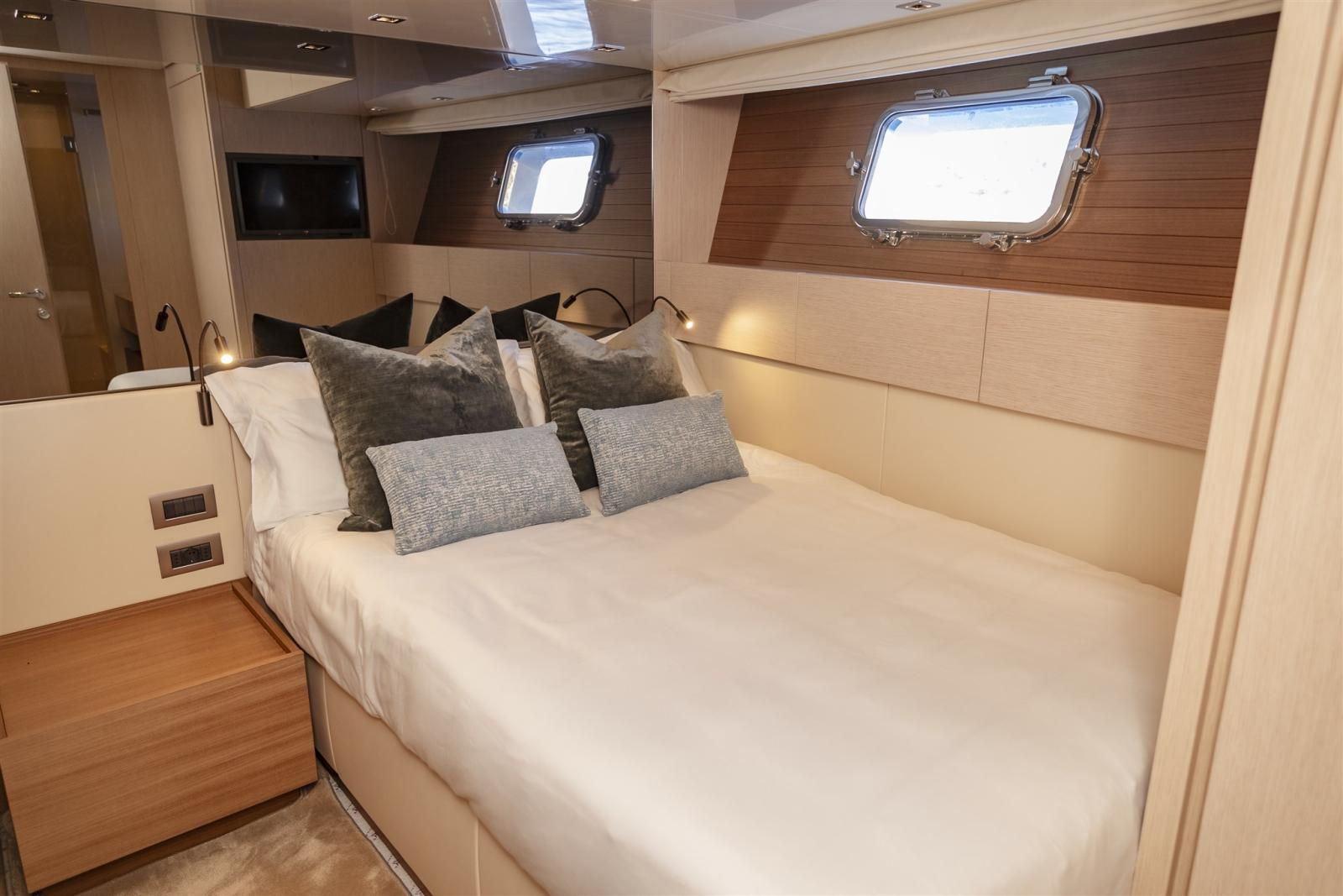 Bateau enregistré au RIF (NUC) entretenu dans les rêgle de l'art.Cette version, en 3 cabines, plus cabine marin offre un espace privatif propriétaire hors du commun.Jacuzzi sur le fly avec grand espace lounge, ce bateau offre des possibilité de croisière remarquables.Equipement électronique de navigation:AIS (FURUNO), Indicateur d'angle de barre, 2 Compas, 4 Commande électrique (et cadran moteur de 2024), Loch (B&G Hydra 2000), 2 DSC VHF (Simrad HS100), GPS (FURUNO GP 37), Pilote automatique (FURUNO avec rep fly), Plotter GPS (MAX SEA ecran 17 avec répétiteur fly et clavier), Radar (FURUNO FRS1000), Radio VHF (Icom BC210), Sondeur (B&G Hydra 2000), Anémomètre/Girouette (B&G Hydra 2000).Equipement de pont:2 Ancre (2x 120 m de chaine de 14), 16 Batteries (12 x 2vlt de 280 amp de 2025 service- 4 Optima 50amp de 2022 moteurs), Passavant en teck, 2 Chargeur de batterie (Mastervolt 24V/100Amp), Couleur spéciale (gris clair de 2016), Double barre à roue (hydrautique), Propulseur de poupe (hydraulique en tunel), Propulseur d'étrave (hydraulique), Éclairage de courtoisie (intérieur), Jet-ski (SEA DOO 36 de 2012), Moteur d'annexe (50cv Yamaha 4T de 2022), Passerelle (Benzoni hydraulique), Plateforme arrière (teck avec ber), 2 Porte latérale, Cockpit en teck, Prise de quai (380 vlt avec transformateur 220vlt), 2 Guindeau électrique (LOFRAN 2700W de 2025), Echelle de bain (escamotable en inox), Annexe (Capelli 380), 2 Winch électrique arrière.Equipement intérieur:2 Air conditionné (2 BTU et 14 split), Ballon d'eau chaude, Coffre-fort, Dessalinisateur (300L/h Sea Recovery), Plancher intérieur en bois, 6 Prises interieures 220v, 2 Caméra vidéo (Arrière et salle machine), 4 Toilettes électriques (TECMA).Equipement de sécurité:2 Balise de détresse (EPIRB et PathFinder).Divers:8 Haut-parleurs (dont Bose), Hi-Fi, 3 TV (dont une sur verin ds salon).Equipement de confort:2 Réfrigérateur extérieur (fly), 2 Réfrigérateur intérieur, Lave et sèche-linge (Miele), Lave-vaisselle (Miele), Four micro-ondes (LG), Plaques électriques (induction Siemmens et Hotte).Sellerie et tauds:Bimini (fixe de fly de 2023).Notes équipement:Divers jauges de 2020 et management Systeme fuel FMS30002 takies3 portes pantographes.Jaccuzi sur fly