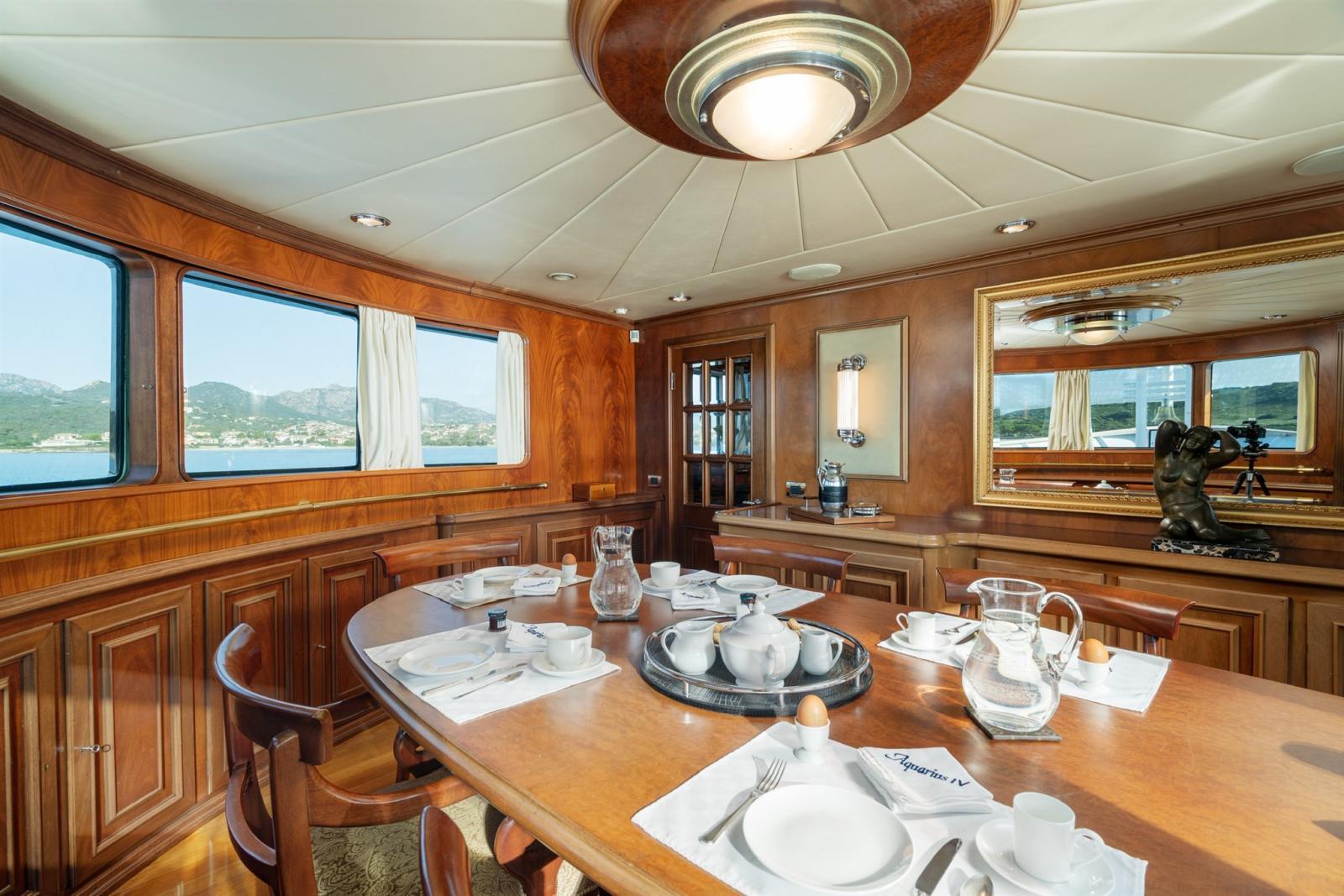 L’Aquarius IV, un yacht à moteur de 35 m construit sur mesure par CBI Navi, affiche une élégance intemporelle avec son design distinctif de Willem de Vries Lentsch, Jr. Construit à l’origine en 1995 conformément à la certification Lloyd’s Register 100 A1, le navire a subi un important refit en 2013, qui comprend le remplacement complet du teck sur tous les ponts. De plus, au cours des cinq dernières années, le yacht a fait l’objet d’un entretien approfondi et approfondi, y compris une révision des moteurs et des générateurs à l’heure zéro, ainsi qu’une révision de tous les systèmes et une restauration complète des salles de bains. Capable de naviguer à une vitesse de croisière de 10 nœuds, l’AQUARIUS IV dispose d’une autonomie incroyable de 5 200 milles nautiques, ce qui le rend idéal pour l’exploration prolongée des océans. Avec sa combinaison de charme classique et de confort moderne, ce magnifique navire offre une expérience de navigation exceptionnelle pour ceux qui recherchent le style et le luxe sur l’eau. Contactez-nous pour plus de détails.Equipement électronique de navigation:AIS (AIS FURUNO FA-100), Antenne radar, Compas (Sperrymarine Navigat XMK2), Ordinateur fixe de bord, 2 GPS (1 x Furuno GPS/WA AS NAVIGATOR GP 32 e 1 x Furuno GPS/WA AS NAVIGATOR GP 37), Interphone (Panasonic), Pilote automatique (C.plath Navipilot V), Lecteur de cartes (Nobeltec Time zero), 2 Radar (JRC X Band), Radio VHF (JRC NCM-1770), Anémomètre/Girouette (Raymarine), Téléphone satellite (Iridium).Equipement de pont:Alarme gaz, 2 Alarme moteur, Alarme de pompe de cale, 2 Ancre (350 kg), Ouverture du compartiment moteur électrique, Batteries (Gelcel-Victron), 2 Passavant en teck, Chargeur de batterie (Automatic Mass charger-master volt MASS24/100 3 phase), Propulseur d'étrave (Hydromarine BT-2006 Type A4V90EL 2x H55D1500 Clutch Hidraulic pump-shaft driven), Bossoirs (Napoli Paolo e figli snc), Extincteur(s) fixe(s) (Gianeschi&Ramacciotti), Compresseur de plongée (Abac 24 lt 2hp), Jet-ski (SEADOO 230 HP M/y 2018), Passerelle, Pompe de cale automatique, Porte latérale, Cockpit en teck, Prise de quai, Connexion eau sous pression à quai, 2 Guindeau électrique (CBI navi (custom made)), Echelle de coupée, Echelle de bain, Stabilisateurs (Koop Nautic - Sea Rocq 3050), table de cockpit, 2 Annexe (+ 3x SEABOB F5s, 1x Towable toy, 1x watersky1x SUP, 1x inflatable slide, 1x inflatable platform (m 3x3)), Corne.Equipement intérieur:Air conditionné (Marine Air System Dometic MCGV120 380/3ph - cap 240.000 Btu), BBQ/ Grill, 4 Ballon d'eau chaude (Gianneschi 500lt), Dessalinisateur (Fresh Water Maker Tecnicomar model SYS8/1000/MD 450lt / hour), Cuve à eaux noires (Hamman System (600Lt)), Plancher intérieur en bois, Réservoir d'eau noire (600 lt), 4 Caméra vidéo (Polysion system, Philips 20” Monitor), 6 Toilettes électriques (1x Master,1x VIP, 2x Guests, 1x Capt., 1x Crew).Equipement de sécurité:Balise de détresse (Sailor Cobham), 4 Radeau de survie (EV Iso 9650).Divers:27 Haut-parleurs, Antenne satellite TV (Seatel Cobram), 6 DVD (1x Yamaha DVD-DX, 3x Samsung bluray, 1x LG bluray disc, 1x Sony DVD bluray), 6 Hi-Fi (JVC stereo), 9 TV (Main salon Samsung 48” HD TV; Master Cab. Samsung 26” HD TV; Guests Cab. Samsung 28” HD TV; VIP cab. Samsung 32” HD TV; Capt. Cab. Samsung 24” HD TV; Galley LG 28” HD TV; Fly Samsung 48"; Stern living 2x LG 40” HD TV;).Equipement de confort:Sèche linge (Miele), 3 Congélateur (1x Beko; 2x Vitifrigo), Cuisine, Four (Dexion), 2 Réfrigérateur intérieur (1x Zanussi; 1x Klarstein), Machine à glaçons (Hoshizaki), 2 Lave-vaisselle (Miele), Lave-linge (Miele), Machine a café, Four micro-ondes (Samsung), 4 Plaques électriques, Winecooler.Sellerie et tauds:Sellerie complète, Coussins arrieres, Coussin avant, Sellerie de fly, sellerie de cockpit.Notes équipement:- Filtres à eau douce Idromar- Système de pression d’eau douce Well Mate.