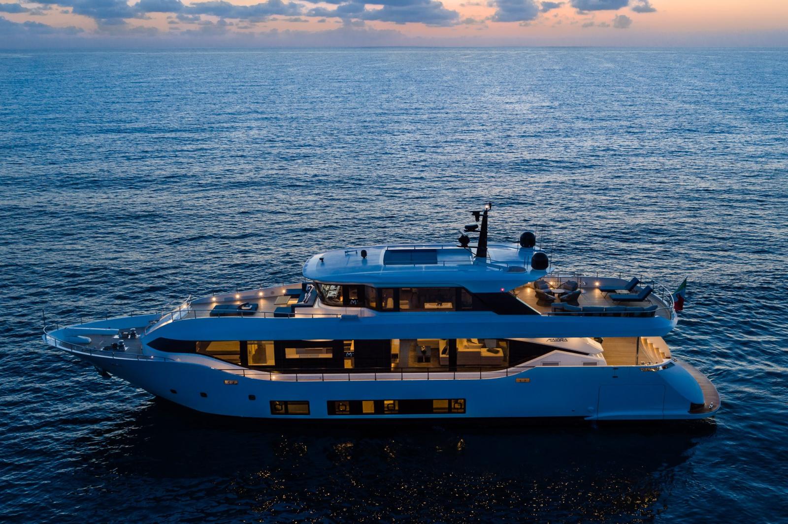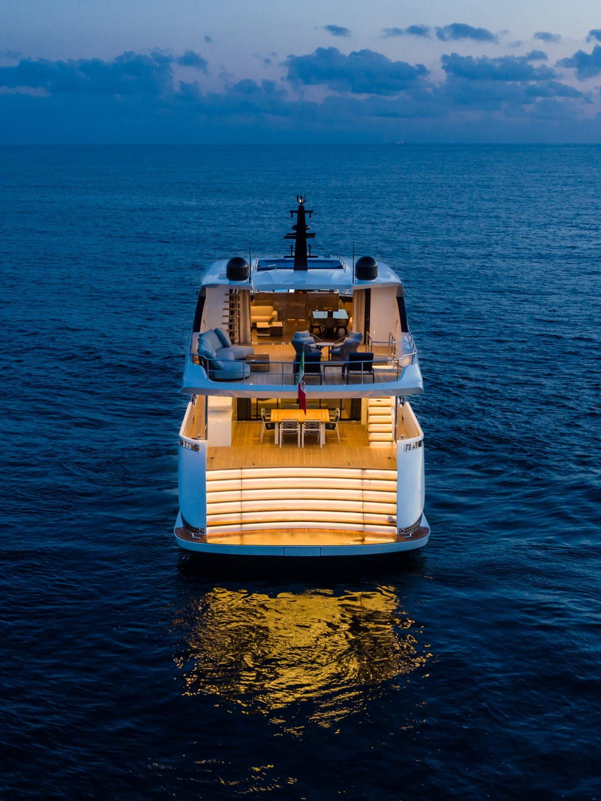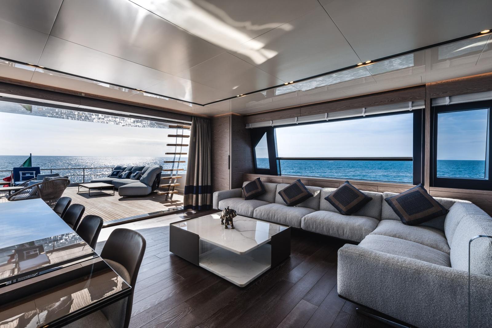 Maiora 30 Cabriolet . 30,60 mètres de long et 7,50 mètres de large permettent au Maiora 30 Cabriolet d’offrir des volumes impressionnants à la disposition de l’Armateur et de ses hôtes pour un bateau de cette catégorie. Maiora 30 Cabriolet entre dans la catégorie des bateaux de plaisance certifiés CE. Ce superyacht est appelé « convertible » pour la conformation particulière du pont supérieur, divisé en deux zones, l’une fermée et entièrement conditionnée, le Sky Lounge, et l’autre « an plain air » utilisable de différentes manières en fonction des besoins de l’Armateur. Le Sky Lounge est doté de vitraux latéraux entièrement abattables et d’une porte arrière amovible, de manière à pouvoir transformer confortablement un espace clos et réservé en un espace ouvert et aéré en communication directe avec l’espace extérieur.Le salon du Sky Lounge, d’environ 50 mètres carrés, est orné d’un mobilier sélectionné parmi les plus prestigieuses marques de meubles italiens et complété par de merveilleuses œuvres d’art.La salle est facilement transformable en faisant vivre des paysages toujours différents: elle peut être utilisée comme une salle de cinéma parfaite, où se détendre en regardant un bon film en compagnie ou comme une belle terrasse sur la mer, où vous pourrez vivre des moments de détente au coucher du soleil ou d’extrême liberté en regardant la mer, mais aussi comme salle à manger à déguster en toute intimité avec la famille et les amis. Le Maiora 30 Cabriolet se distingue par son confort et ses grands espaces. Grâce aux couloirs latéraux, tous les clients à bord peuvent marcher de l’arrière à l’avant de manière fluide et ininterrompue, offrant ainsi une expérience embarquée inoubliable. Tel est précisément l’objectif du célèbre chantier naval italien: accueillir les désirs et les besoins du client, pour lui offrir, ainsi qu’à tous ses clients, une expérience unique. Les fenêtres pleine hauteur du pont principal s’étendent le long du navire fortifié et illuminent le grand salon central qui se présente comme un endroit accueillant et élégamment meublé avec une disposition fonctionnelle et une décoration délicate et recherchée, fruit du travail de conception minutieux du centre de style du chantier en collaboration avec le studio torinese Fossati Design Bureau. Le salon donne directement sur le cockpit très spacieux: à la demande d’armateur précis, cette zone a été considérablement agrandie pour obtenir une salle à manger très étendue et équipée d’une table pouvant accueillir jusqu’à huit personnes, devenant ainsi une partie du bateau parfait pour partager des moments de convivialité: une véritable salle à manger « au frais ». Le niveau de personnalisation s’élève jusqu’à la petite plage arrière abritant un sauna au niveau de la mer: les clients peuvent se détendre dans la chaleur d’un véritable sauna « flottant » et un instant plus tard, en quelques pas simples, plonger dans l’eau rafraîchissante de la mer. Toujours sur le pont principal, nous trouvons la cabine armatoriale, accueillante, lumineuse et caractérisée par un design sophistiqué et élégant. La douche du bain d’armateur, lumineuse et ornée de marbres aux murs, peut servir de bain turc pour un meilleur confort de l’armateur exigeant. Dans le lower deck, vous accédez aux cabines d’hôtes, 2 grandes cabines VIP et 2 cabines doubles, toutes avec salles de bains privatives. Sur le même pont, mais accessibles par des itinéraires dédiés, les confortables logements d’équipage se composent de 3 cabines et 2 salles de bains, pour un total de 5 lits. La timonerie est complète et importante, avec ses cinq moniteurs de 24 po et son électronique Furuno, comme la planche de commande de navires de plus grande taille.Les deux moteurs MTU 16V2000M96L de 2600 ch permettent chacun d’atteindre une vitesse maximale d’environ 27/28 noeuds. Pendant la navigation, le confort est toujours élevé, tout en conservant un silence et une stabilité constants et excellents, garantis par les normes de construction et les nageoires stabilisatrices efficaces, fonctionnant à la fois à l’ancre et à la navigation. Le garage est situé latéralement et peut accueillir un appel d’offres de 6 mètres, caractéristique unique de ce bateau.Equipement électronique de navigation:Indicateur d'angle de barre, GPS (FURUNO NAVIGATION EQUIPMENT PACKAGE), Radar (FAR 2238).Equipement de pont:Alarme de pompe de cale, 2 Ancre, Eau sous pression, Passavant en teck, Douche de cockpit, Double barre à roue (terza stazione comandi), Phare de poursuite, Flaps hydrauliques, Garage à annexe (laterale), Bossoirs, Grue pour jet-ski (a prua), Bossoirs pour annexe (a prua), Hard top, Extincteur(s) fixe(s), Lavage de chaine, Plateforme arrière, Pompe de cale automatique, Pompe de cale manuelle, Porte latérale, Porte latérale, Cockpit en teck, Prise de quai, Connexion eau sous pression à quai, Onduleur, Répétiteur électronique, 2 Guindeau électrique, Echelle de bain, Stabilisateurs (zerospeed), Annexe (WILLIAMS 565 JET), Winch électrique arrière, Winch électrique avant.Equipement intérieur:BBQ/ Grill, Ballon d'eau chaude, Air Conditionné, Connexion à internet, Contrôleur domotique, Dessalinisateur, Cuve à eaux noires, Prises interieures 220v, Caméra vidéo, 8 Toilettes électriques.Divers:Antenne satellite TV, Hi-Fi.Equipement de confort:Sèche linge, Cuisine, Réfrigérateur extérieur, Machine à glaçons, Lave-vaisselle, Plaque vitrocéramique.Sellerie et tauds:Sellerie complète, Sellerie de fly, Taud de soleil.Notes équipement:TROISIÈME STATION DE COMMANDE, STABILISATEUR ZEROSPEED ET UNDERWAY, WATERMAKER 360 LITRES/HEURE. SAUNA