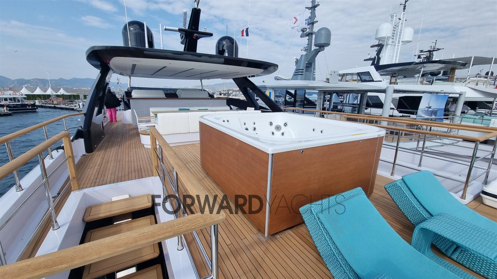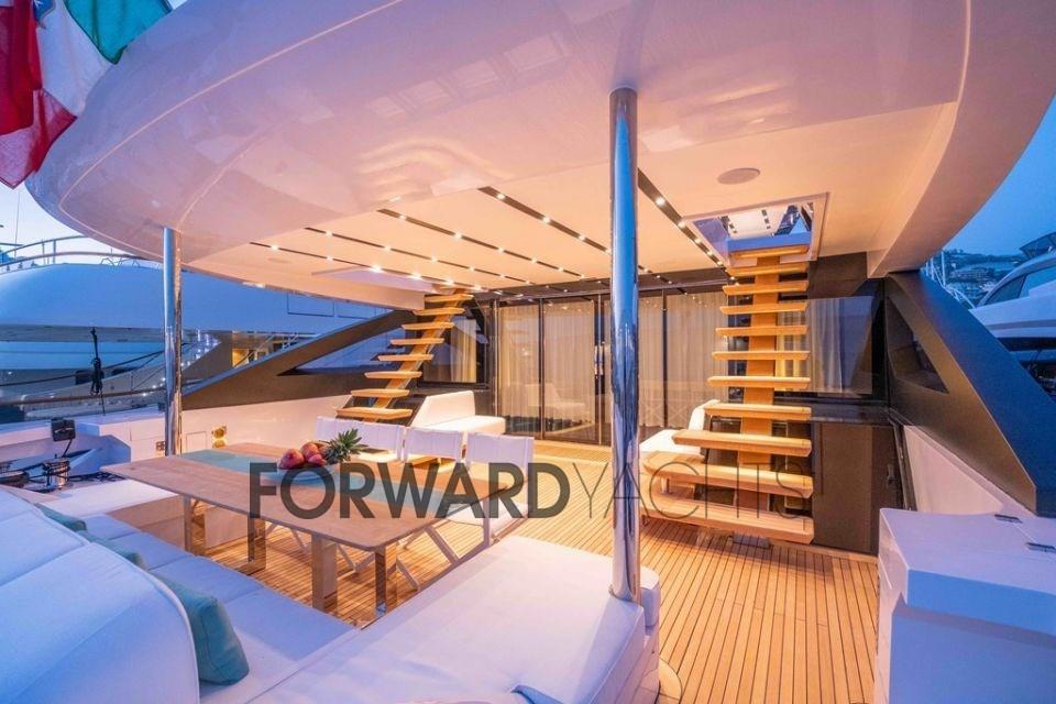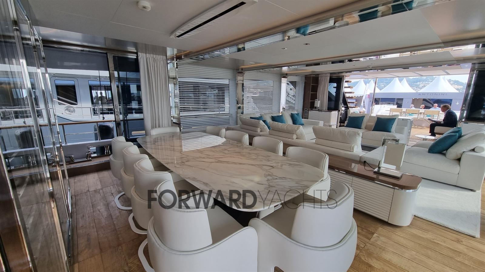 Partez à l’aventure avec style et confort à bord de l’Azimut 116.Un chef-d’œuvre de design : imaginez-vous en train de sillonner les vagues à bord d’un magnifique yacht de 35 mètres, aux lignes extérieures sinueuses et raffinées dessinées par Stefano Righini. Laissez-vous envelopper par la lumière naturelle qui imprègne les intérieurs conçus par Carlo Galeazzi, où l’atmosphère sophistiquée et accueillante est rehaussée par des matériaux nobles et des détails raffinés.Un concentré de confort : L’Azimut 116 est un véritable temple du bien-être. Détendez-vous dans le bain à remous du flybridge, profitez du soleil sur le pont ou profitez de la vue imprenable depuis le cockpit spacieux. À l’intérieur, un salon élégant avec des canapés, des fauteuils et une télévision à écran plat vous invite à vous détendre, tandis que la cuisine entièrement équipée avec des appareils haut de gamme vous permet de préparer de délicieux repas. La cabine principale surdimensionnée est une véritable retraite de luxe, avec un lit double, une salle de bain attenante et un dressing. Les cabines invités offrent un maximum de confort avec des lits simples ou doubles, une salle de bain privée et une douche. Et pour s’amuser sur l’eau, l’Azimut 116 est équipé d’un garage pour annexes et jouets nautiques.Des performances palpitantes : Équipé d’un puissant moteur MTU de 2000 ch, l’Azimut 116 file sur l’eau à une vitesse de pointe de 26 nœuds. L’autonomie de 1200 milles nautiques vous permet de naviguer librement, tandis que la technologie de dernière génération garantit une navigation sûre et confortable.Une opportunité à ne pas manquer : l’Azimut 116 est le bateau idéal pour les propriétaires exigeants qui recherchent le summum du style, de la performance et du confort. Une icône du luxe qui vous fera vivre des moments inoubliables en mer.Ne manquez pas cette opportunité unique : contactez-nous pour en savoir plus et mettre les voiles vers votre rêve !Franchissez le seuil et plongez dans un monde de sophistication et de confort.L’Azimut 116 dispose d’intérieurs conçus dans les moindres détails par Carlo Galeazzi, où la lumière naturelle, les matériaux nobles et l’artisanat italien s’unissent pour créer une atmosphère sophistiquée et accueillante.Un salon de rêve : le cœur battant du yacht est le salon spacieux, meublé d’élégants canapés, de fauteuils et d’une télévision à écran plat. Les grandes fenêtres offrent une vue panoramique à couper le souffle sur la mer, créant un environnement lumineux et aéré. Le salon est l’endroit idéal pour se détendre entre amis, profiter d’un apéritif au coucher du soleil ou d’un film en soirée.Cuisine gastronomique : La cuisine complète est un véritable paradis pour les amateurs de gastronomie. Doté d’électroménagers haut de gamme et de grandes surfaces de travail, il vous permet de préparer de délicieux repas en tout confort. Que vous préfériez cuisiner seul ou compter sur votre propre chef, la cuisine de l’Azimut 116 est prête à répondre à tous vos besoins.Une retraite de luxe : La cabine du propriétaire est une véritable oasis de paix et de détente. Un lit double king-size, une salle de bain privative avec une immense douche et une baignoire jacuzzi et enfin un dressing surdimensionné offrent un maximum de confort et d’intimité. La vue panoramique sur la mer complète l’atmosphère de luxe et d’enchantement.Hospitalité irréprochable : Les cabines d’invités sont conçues pour assurer un maximum de confort à vos amis et à votre famille. Des lits simples ou doubles, une salle de bains privative avec douche et un design élégant et raffiné offrent une expérience de séjour impeccable.Chaque détail est soigné : l’Azimut 116 est un concentré de style et de fonctionnalité. Les planchers de bois fins, les finitions en marbre et les détails en acier inoxydable créent une atmosphère de luxe intemporel. L’éclairage réglable et la climatisation diffuse assurent un confort personnalisable dans n’importe quelle pièce.Une expérience de croisière unique : Du grand flybridge avec jacuzzi au garage pour annexes et jouets nautiques, l’Azimut 116 est conçu pour vous offrir une expérience de croisière unique en son genre. Mettez les voiles pour l’aventure et plongez dans le luxe : l’intérieur de l’Azimut 116 vous fera vivre des moments inoubliables.Equipement électronique de navigation:AIS (SIMRAD), Indicateur d'angle de barre (SIMRAD), 2 Antenne radar (SIMRAD), 2 Commande électrique (MTU), Ordinateur fixe de bord, Compteur de chaîne, Montre de bord, 3 Moniteur (SIMRAD), DSC VHF, MeteoFax, 2 Pilote automatique (SIMRAD AP 28), 3 Plotter GPS (SIMRAD 12), 2 Radar (SIMRAD), 3 Radio VHF (SIMRAD), Siège copilote, Sondeur.Equipement de pont:Alarme gaz, Alarme moteur, Alarme de pompe de cale, Ouverture du compartiment moteur électrique, Eau sous pression, Passavant en teck, Douche de cockpit, Phares fixes arrière, Phare de poursuite, Flaps hydrauliques, Garage à annexe, Bossoirs, Hard top, Extincteur(s) fixe(s), Compresseur de plongée, Indicateurs de flaps, Lavage de chaine, Éclairage de courtoisie, Spots sous-marins, Passerelle, Plateforme arrière, Pompe de cale automatique, Pompe de cale manuelle, Porte latérale, Porte latérale, Cockpit en teck, Prise de quai, Connexion eau sous pression à quai, Répétiteur électronique, Guindeau Hydraulique, Echelle de bain, Système de filtration des eaux usées, Stabilisateurs (PINNE), Annexe, Corne, T-Top, Pont en teck, 2 Winch électrique arrière, 2 Winch électrique avant.Equipement intérieur:Alarme intrusion, BBQ/ Grill, 2 Ballon d'eau chaude (ELETTRICO), Coffre-fort, Air Conditionné, Connexion à internet, Contrôleur domotique, Gradateur de lumière, Dessalinisateur, Cuve à eaux noires, Plancher intérieur en bois, Prises interieures 12v, Prises i