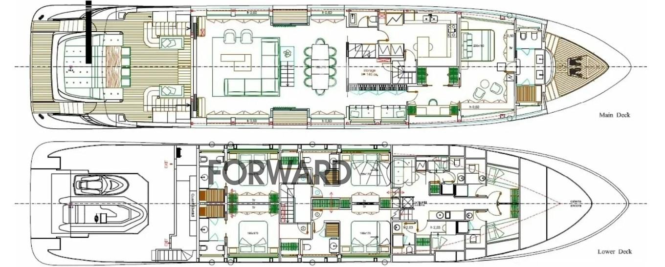 Partez à l’aventure avec style et confort à bord de l’Azimut 116.Un chef-d’œuvre de design : imaginez-vous en train de sillonner les vagues à bord d’un magnifique yacht de 35 mètres, aux lignes extérieures sinueuses et raffinées dessinées par Stefano Righini. Laissez-vous envelopper par la lumière naturelle qui imprègne les intérieurs conçus par Carlo Galeazzi, où l’atmosphère sophistiquée et accueillante est rehaussée par des matériaux nobles et des détails raffinés.Un concentré de confort : L’Azimut 116 est un véritable temple du bien-être. Détendez-vous dans le bain à remous du flybridge, profitez du soleil sur le pont ou profitez de la vue imprenable depuis le cockpit spacieux. À l’intérieur, un salon élégant avec des canapés, des fauteuils et une télévision à écran plat vous invite à vous détendre, tandis que la cuisine entièrement équipée avec des appareils haut de gamme vous permet de préparer de délicieux repas. La cabine principale surdimensionnée est une véritable retraite de luxe, avec un lit double, une salle de bain attenante et un dressing. Les cabines invités offrent un maximum de confort avec des lits simples ou doubles, une salle de bain privée et une douche. Et pour s’amuser sur l’eau, l’Azimut 116 est équipé d’un garage pour annexes et jouets nautiques.Des performances palpitantes : Équipé d’un puissant moteur MTU de 2000 ch, l’Azimut 116 file sur l’eau à une vitesse de pointe de 26 nœuds. L’autonomie de 1200 milles nautiques vous permet de naviguer librement, tandis que la technologie de dernière génération garantit une navigation sûre et confortable.Une opportunité à ne pas manquer : l’Azimut 116 est le bateau idéal pour les propriétaires exigeants qui recherchent le summum du style, de la performance et du confort. Une icône du luxe qui vous fera vivre des moments inoubliables en mer.Ne manquez pas cette opportunité unique : contactez-nous pour en savoir plus et mettre les voiles vers votre rêve !Franchissez le seuil et plongez dans un monde de sophistication et de confort.L’Azimut 116 dispose d’intérieurs conçus dans les moindres détails par Carlo Galeazzi, où la lumière naturelle, les matériaux nobles et l’artisanat italien s’unissent pour créer une atmosphère sophistiquée et accueillante.Un salon de rêve : le cœur battant du yacht est le salon spacieux, meublé d’élégants canapés, de fauteuils et d’une télévision à écran plat. Les grandes fenêtres offrent une vue panoramique à couper le souffle sur la mer, créant un environnement lumineux et aéré. Le salon est l’endroit idéal pour se détendre entre amis, profiter d’un apéritif au coucher du soleil ou d’un film en soirée.Cuisine gastronomique : La cuisine complète est un véritable paradis pour les amateurs de gastronomie. Doté d’électroménagers haut de gamme et de grandes surfaces de travail, il vous permet de préparer de délicieux repas en tout confort. Que vous préfériez cuisiner seul ou compter sur votre propre chef, la cuisine de l’Azimut 116 est prête à répondre à tous vos besoins.Une retraite de luxe : La cabine du propriétaire est une véritable oasis de paix et de détente. Un lit double king-size, une salle de bain privative avec une immense douche et une baignoire jacuzzi et enfin un dressing surdimensionné offrent un maximum de confort et d’intimité. La vue panoramique sur la mer complète l’atmosphère de luxe et d’enchantement.Hospitalité irréprochable : Les cabines d’invités sont conçues pour assurer un maximum de confort à vos amis et à votre famille. Des lits simples ou doubles, une salle de bains privative avec douche et un design élégant et raffiné offrent une expérience de séjour impeccable.Chaque détail est soigné : l’Azimut 116 est un concentré de style et de fonctionnalité. Les planchers de bois fins, les finitions en marbre et les détails en acier inoxydable créent une atmosphère de luxe intemporel. L’éclairage réglable et la climatisation diffuse assurent un confort personnalisable dans n’importe quelle pièce.Une expérience de croisière unique : Du grand flybridge avec jacuzzi au garage pour annexes et jouets nautiques, l’Azimut 116 est conçu pour vous offrir une expérience de croisière unique en son genre. Mettez les voiles pour l’aventure et plongez dans le luxe : l’intérieur de l’Azimut 116 vous fera vivre des moments inoubliables.Equipement électronique de navigation:AIS (SIMRAD), Indicateur d'angle de barre (SIMRAD), 2 Antenne radar (SIMRAD), 2 Commande électrique (MTU), Ordinateur fixe de bord, Compteur de chaîne, Montre de bord, 3 Moniteur (SIMRAD), DSC VHF, MeteoFax, 2 Pilote automatique (SIMRAD AP 28), 3 Plotter GPS (SIMRAD 12), 2 Radar (SIMRAD), 3 Radio VHF (SIMRAD), Siège copilote, Sondeur.Equipement de pont:Alarme gaz, Alarme moteur, Alarme de pompe de cale, Ouverture du compartiment moteur électrique, Eau sous pression, Passavant en teck, Douche de cockpit, Phares fixes arrière, Phare de poursuite, Flaps hydrauliques, Garage à annexe, Bossoirs, Hard top, Extincteur(s) fixe(s), Compresseur de plongée, Indicateurs de flaps, Lavage de chaine, Éclairage de courtoisie, Spots sous-marins, Passerelle, Plateforme arrière, Pompe de cale automatique, Pompe de cale manuelle, Porte latérale, Porte latérale, Cockpit en teck, Prise de quai, Connexion eau sous pression à quai, Répétiteur électronique, Guindeau Hydraulique, Echelle de bain, Système de filtration des eaux usées, Stabilisateurs (PINNE), Annexe, Corne, T-Top, Pont en teck, 2 Winch électrique arrière, 2 Winch électrique avant.Equipement intérieur:Alarme intrusion, BBQ/ Grill, 2 Ballon d'eau chaude (ELETTRICO), Coffre-fort, Air Conditionné, Connexion à internet, Contrôleur domotique, Gradateur de lumière, Dessalinisateur, Cuve à eaux noires, Plancher intérieur en bois, Prises interieures 12v, Prises i