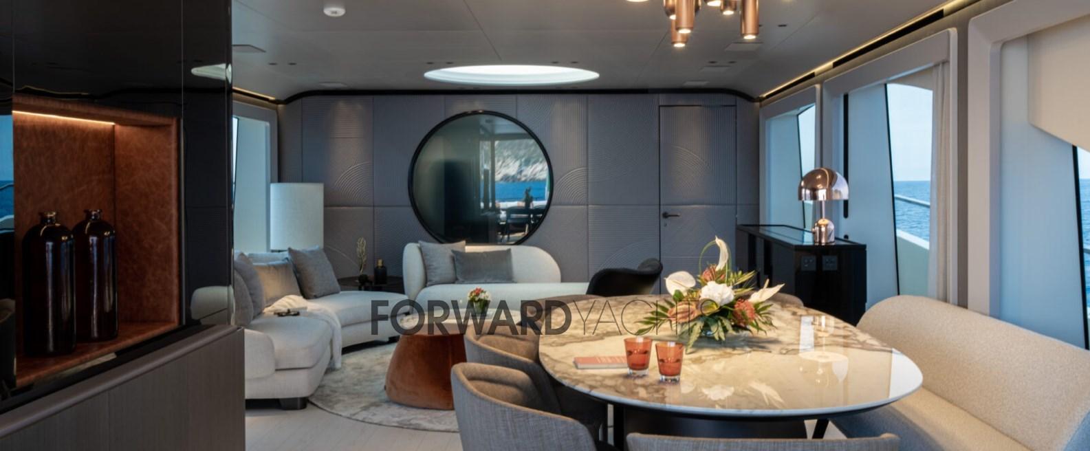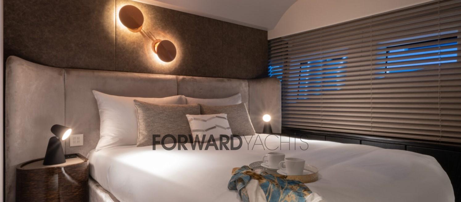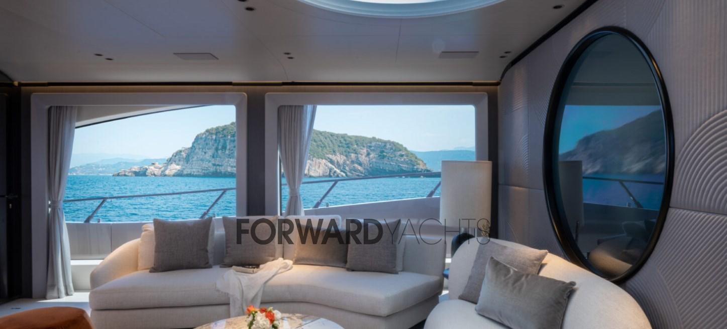 Les lignes sobres, l’équilibre des masses, les ouvertures de coque mesurées, les puissances inclinées et alignées, la superstructure profilée et non imposante, il y a toutes les caractéristiques stylistiques et caractéristiques du sentiment familial de la maison qui sont harmonieusement appliquées sur le nouveau Sanlorenzo SL102.D’une idée originale de Chris Bangle, le brillant designer automobile aux techniciens et décorateurs d’intérieur du chantier naval, jusqu’à Bernardo Zuccon, le jeune architecte fils de l’art, qui avec sa sœur Martina dispense des idées et du professionnalisme au secteur dans la continuité du studio Zuccon International Project. Pont principal:Grand salon avec canapés et table à manger avec des hauts et des bas.Cuisine équipée de meubles laqués blancsBain rond.Double cabine principale avec grande armoire et salle de bains.Pont inférieur:Deux cabines VIP à l’arrière avec lits doublesCabine double Cabine avec 3 lits (un lit bus)Équipage:Hébergement Bow, 5 lits dans 3 cabines., et salle à manger.Cabine du capitaine avec salle de bainDeux cabines avec lits superposés et deux salles de bains.Equipement électronique de navigation:2 AIS (Raymarine RS150), Antenne radar, Compas (magnetica Riviera BWA CMC), Commande électrique, Ordinateur fixe de bord, Compteur de chaîne, Moniteur (multifunzione Raymarine), GPS (Raymarine), Joystick (Sidepower per eliche di prua e poppa), Pilote automatique (Raymarine P70RS), Plotter GPS, Radar (Raymarine).Equipement de pont:Alarme gaz, Alarme moteur, Alarme de pompe de cale, 2 Ancre (136 Kg ciascuna), Eau sous pression, Douche de cockpit, Double barre à roue, Propulseur de poupe (idraulica), Propulseur d'étrave (idraulica), Passerelle, Plateforme arrière, Pompe de cale automatique (Gianeschi), Porte latérale, Cockpit en teck, Prise de quai, Connexion eau sous pression à quai, Guindeau électrique, Echelle de bain, table de cockpit, Annexe (Wlliams 445).Equipement intérieur:Air conditionné (CONDARIA 180.000 BTU/h), Ballon d'eau chaude, Air Conditionné, Dessalinisateur (230 LT/h), Prises interieures 12v, Prises interieures 220v, Toilettes électriques.Divers:Antenne satellite TV, TV (65'' in salone).Equipement de confort:Cuisine, Réfrigérateur extérieur, Lave-vaisselle, Lave-linge, Plaque vitrocéramique.Sellerie et tauds:Sellerie complète.Notes équipement:Table de hauts et bas dans le salon, terrasse dans le salon, pizero speed cmc, vents de câble de quai électrique, 3 compresseurs condaria. batterie supplémentaire carcabatterie pour batteries de générateur, lavage de chaîne, caméra de vision nocturne Flir port USB B & B