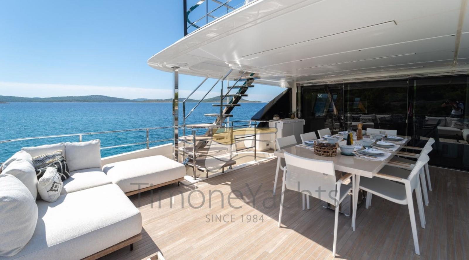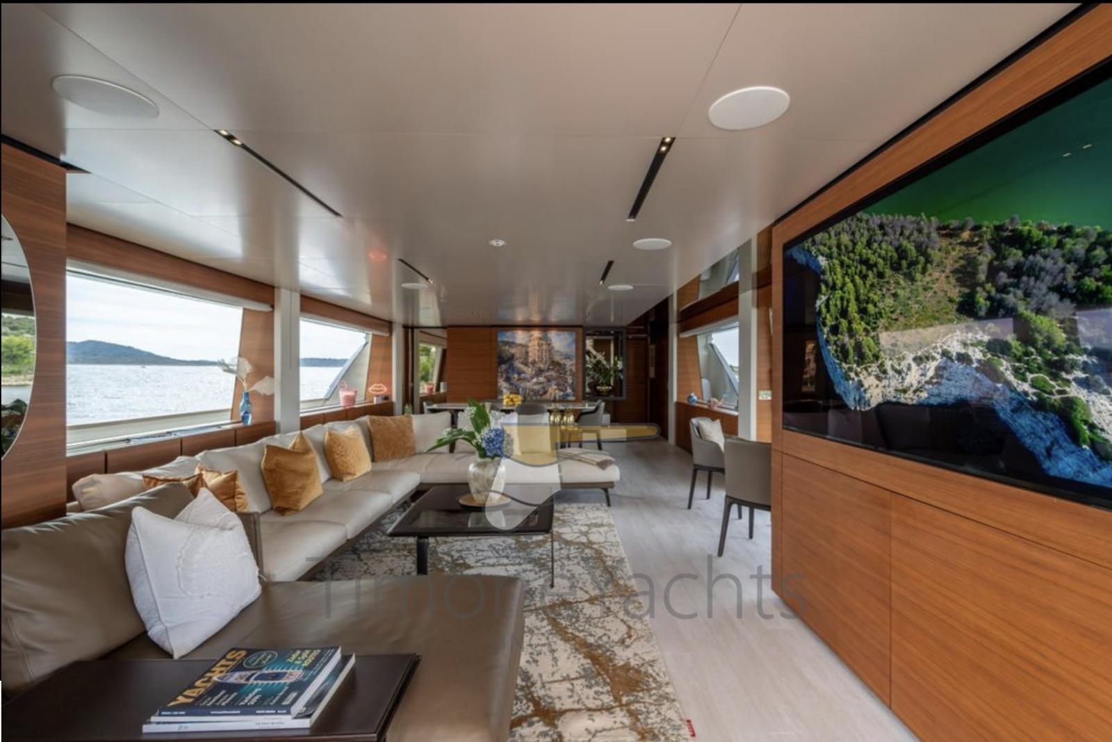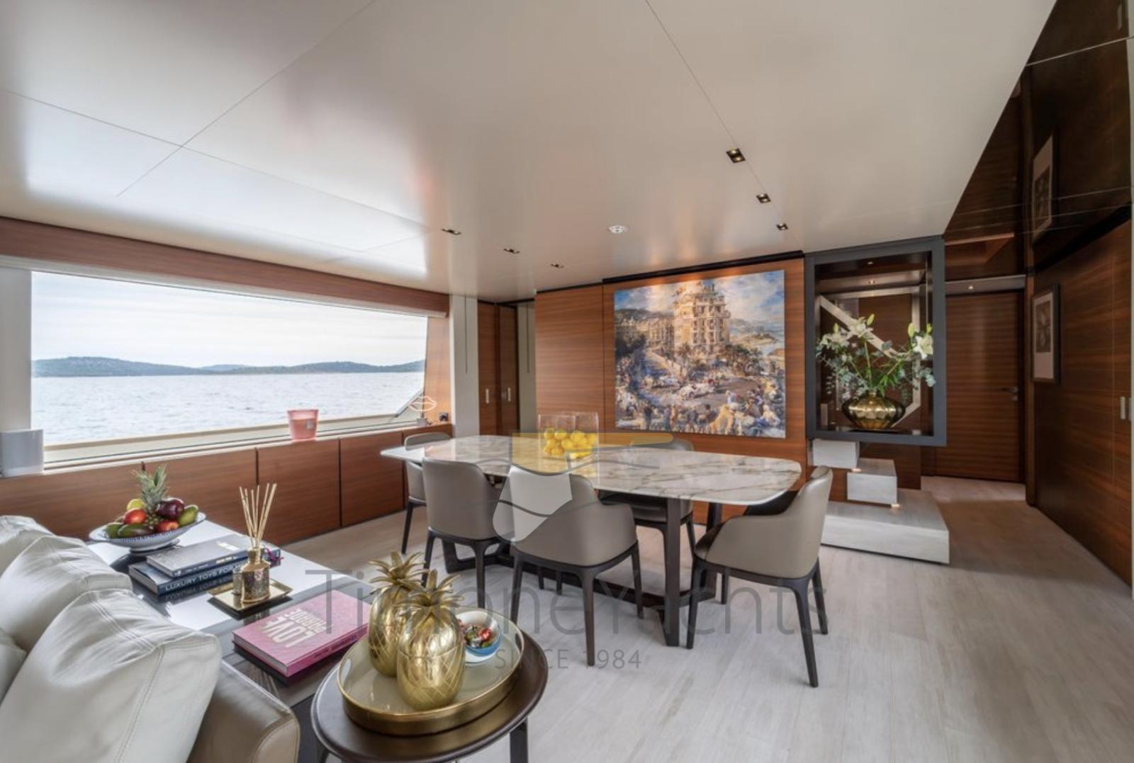 Propriétaire unique du neuf, TVA européenne payée 2019 Custom Line Navetta 33La Navetta 33 (108,3 pieds) est un effort conjoint de Piero Ferrari, de l’ingénierie du groupe Ferretti et du Studio Zuccon International pour le design extérieur.La coque de la coque Navetta 33 assure des performances au sommet de sa catégorie en termes de navigabilité, de stabilité et, surtout, d’efficacité dans toutes les mers. À une vitesse de croisière de 10 à 12 nœuds, il a une autonomie allant jusqu’à 1 850 milles marins. Le confort absolu est garanti par 2 stabilisateurs Seakeeper 16 au mouillage et des ailerons ABT-TRAC.Le yacht offre des espaces fabuleux aux propriétaires et à leurs invités sur les quatre ponts par la suite principale à large corps avant sur le pont principal jusqu’aux quatre cabines invités, toutes avec tête en suite sur le pont inférieur. Grâce à la terrasse panoramique extérieure et aux magnifiques fenêtres et portes qui s’ouvrent, aux salons et aux salles à manger intérieures et extérieures, tout est très spacieux et lumineux.La terrasse, avec son bain à remous et son grand bain de soleil, est conçue pour offrir des moments d’intimité totale. L’équipage bénéficie également d’un espace immense. De la cabine privée du capitaine située derrière le poste de barre, à la zone confortable de l’équipage, située sur le pont inférieur pour 5 membres d’équipage supplémentaires. La Navetta 33 a un mécanisme de mouvement double de la porte de garage qui transforme la poupe en un fantastique club de plage, ou comme un garage qui contient une Williams 505 DieselJet et une Seadoo Spark Trixx.Il est le yacht idéal pour parcourir de longues distances avec une faible consommation de carburant, avec un concept de chambre sensationnel et spacieux, un design d’une beauté intemporelle et en utilisant les meilleurs composants et les meilleurs matériaux du marché.Prêt pour une livraison immédiateEquipement électronique de navigation:AIS, 3 Commande électrique (main helm + 2 side wings), 2 Compteur de chaîne, DSC VHF, Siège copilote.Equipement de pont:Taquets pliants, Passavant en teck, Phare de poursuite, Garage à annexe, Hard top, Extincteur(s) fixe(s), Lavage de chaine, Lavabo dans le cockpit, Spots sous-marins, Jet-ski, Passerelle, Porte latérale, Cockpit en teck, Prise de quai, Connexion eau sous pression à quai, Stabilisateurs (nr 2 Seakeeper + ABI Trac fins), table de cockpit, Annexe, Corne, 2 Winch électrique arrière, 2 Winch électrique avant.Equipement intérieur:BBQ/ Grill, Connexion à internet, Contrôleur domotique, Gradateur de lumière, 2 Dessalinisateur, Cuve à eaux noires, Plancher intérieur en bois, Prises interieures 12v, Prises interieures 220v, Réservoir d'eau noire, 6 Toilettes électriques (+ 4 crew).Divers:Haut-parleurs, Antenne satellite TV, Home cinéma, Mécanisme de levage de télévision, Radio AM/FM, Hi-Fi.Equipement de confort:Réfrigérateur extérieur, Glacière, Machine à glaçons, Lave et sèche-linge, Lave-vaisselle, Lave-linge, Machine a café, Plaques électriques, Plaque vitrocéramique, Winecooler.Sellerie et tauds:Sellerie complète, Coussins arrieres, Coussin avant, Sellerie de fly, sellerie de cockpit, Rideaux occultants, Tauds de pare-brise, Taud électrique, Taud de soleil, Moustiquaires.