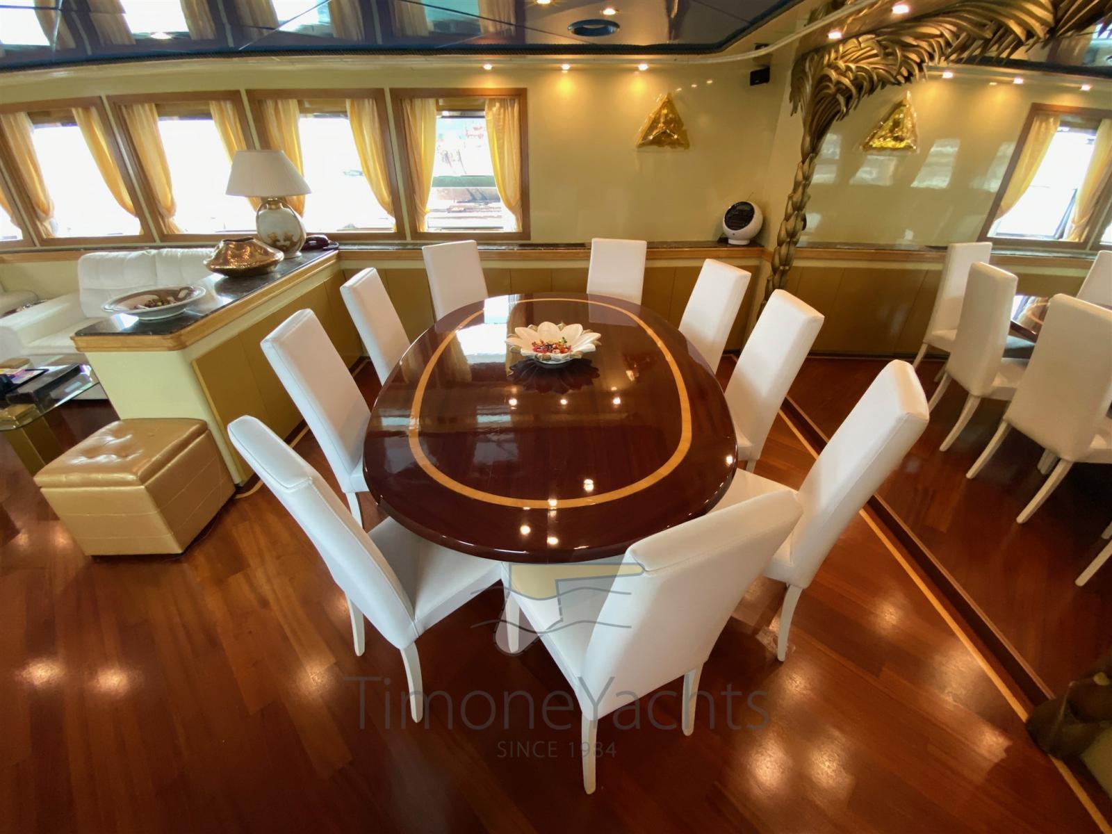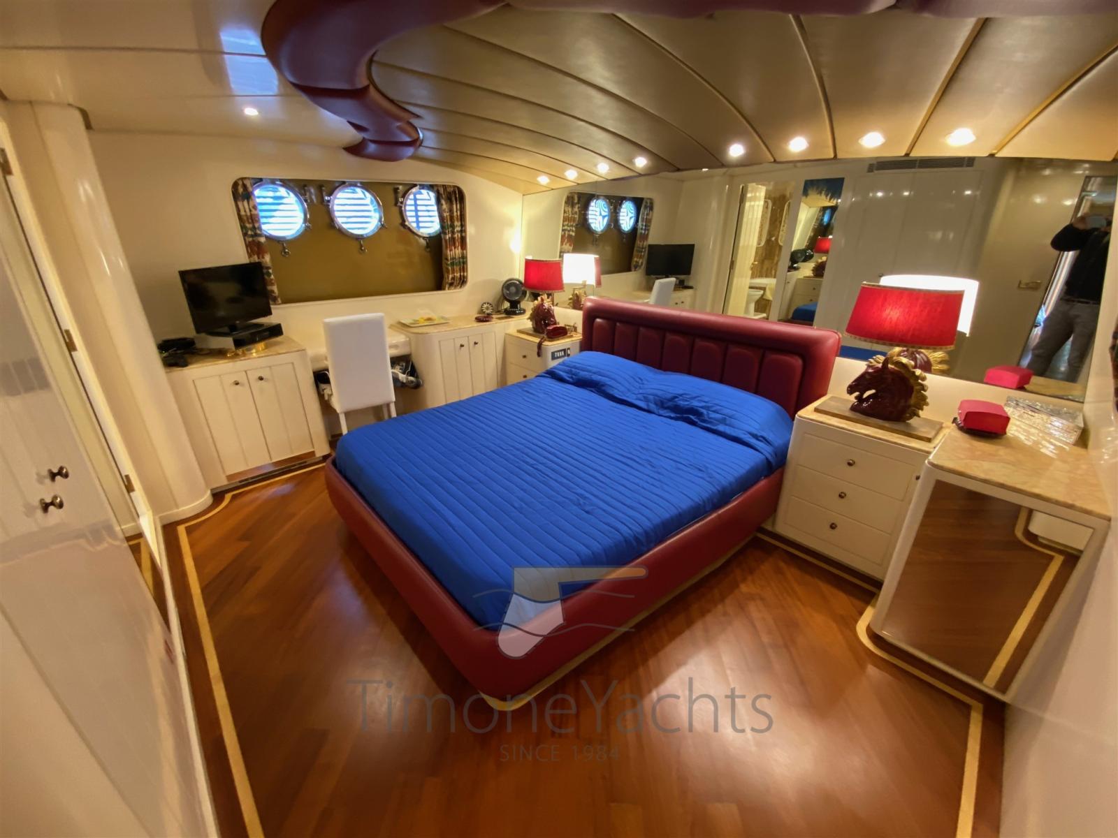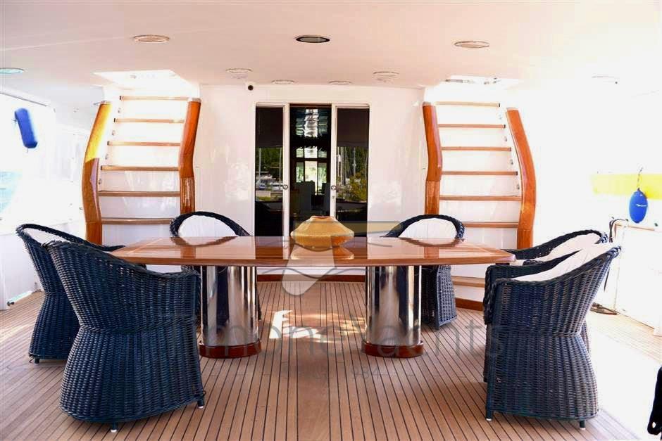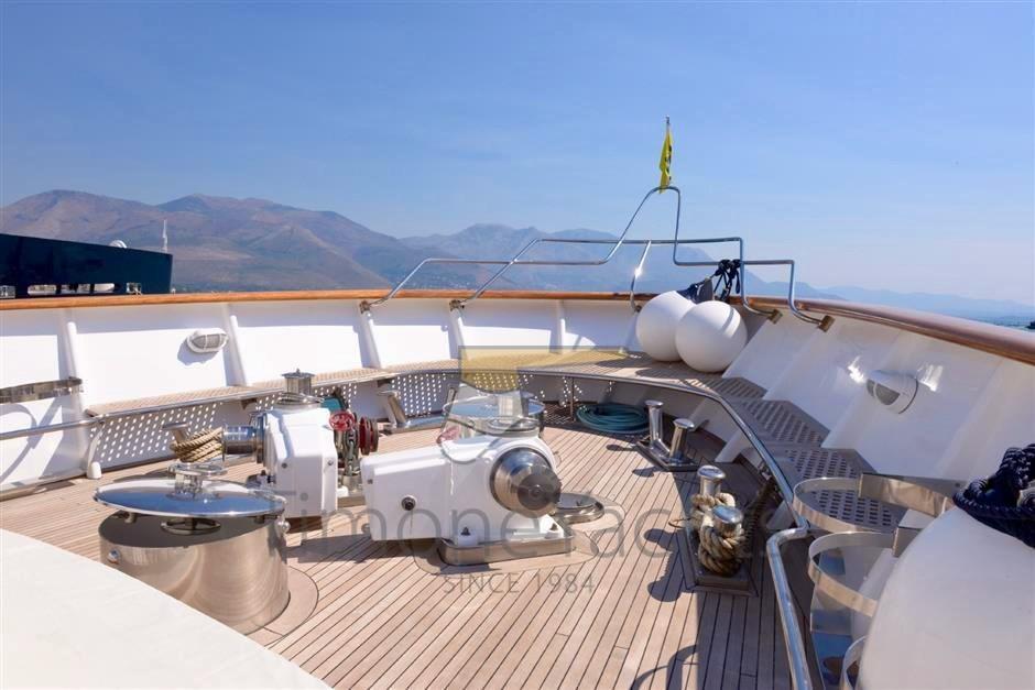 Goletta Custom 38m info Andrea Michelazzo [email protected] +393472234548 Andrea Gentile +39335349349Equipement électronique de navigation:Indicateur d'angle de barre, Antenne radar, Ordinateur fixe de bord, Moniteur.Equipement de pont:Passavant en teck, Douche de cockpit, Phares fixes arrière, Phare de poursuite, Bossoirs, Éclairage de courtoisie, Passerelle, Pompe de cale automatique, Pompe de cale manuelle, Porte latérale, Porte latérale, Cockpit en teck, Prise de quai, Connexion eau sous pression à quai, Guindeau électrique, Gréement Rod, Echelle de bain, Système de filtration des eaux usées, table de cockpit, Annexe, Winch électrique arrière, Winch électrique avant.Equipement intérieur:Ballon d'eau chaude, Coffre-fort, Air Conditionné, Cuve à eaux noires, Prises interieures 12v, Prises interieures 220v, Réservoir d'eau noire, Toilettes électriques.Equipement de sécurité:Equipement sécurité au delà des 50 miles.Divers:Haut-parleurs, Antenne satellite TV, Radio AM/FM, Hi-Fi.Equipement de confort:Cuisine, Cuisinière, Réfrigérateur extérieur, Glacière, Lave-vaisselle, Lave-linge, Machine a café.Sellerie et tauds:Sellerie complète, Coussins arrieres, Coussin avant, Rideaux occultants.
