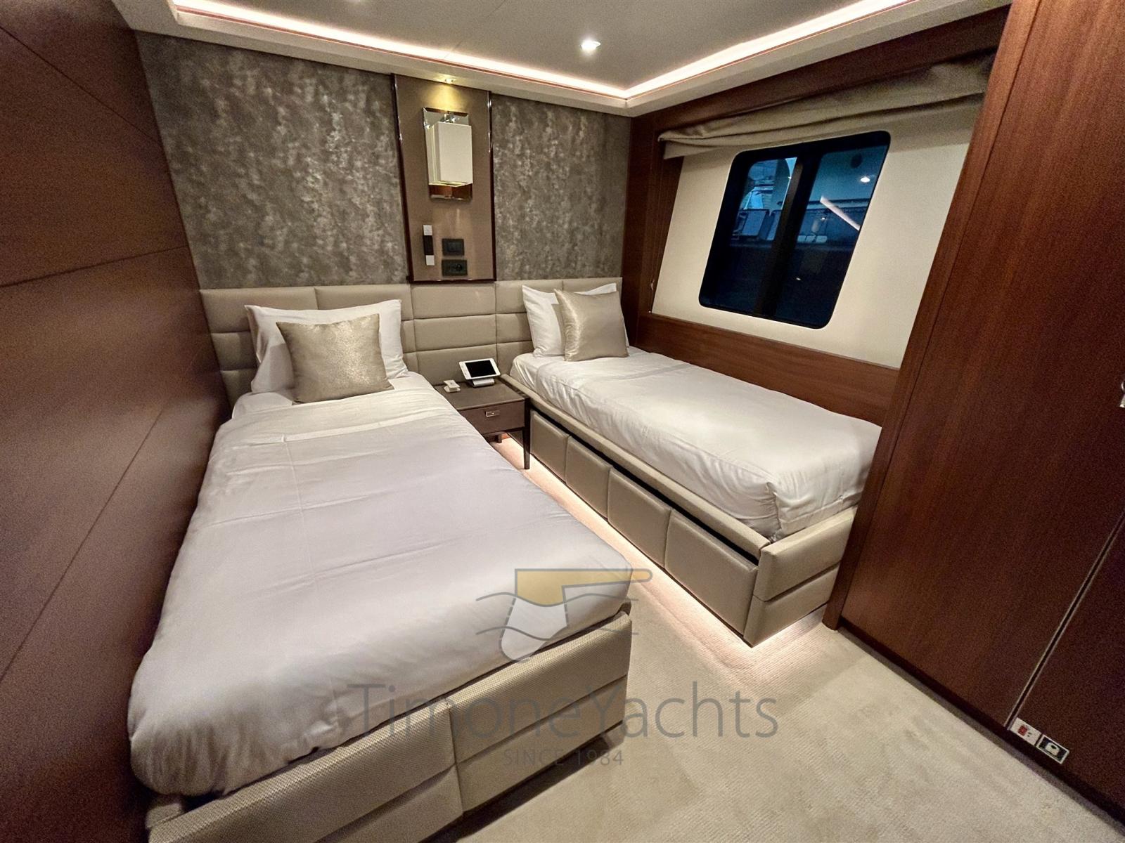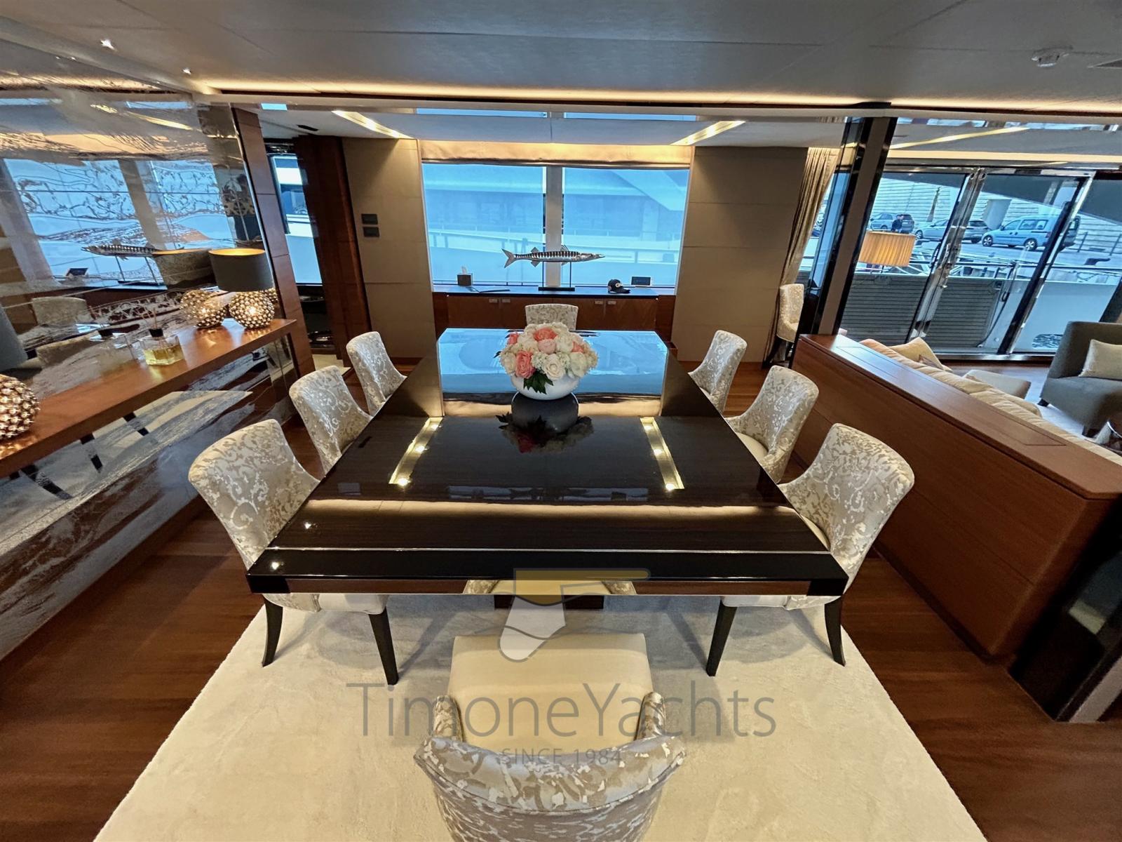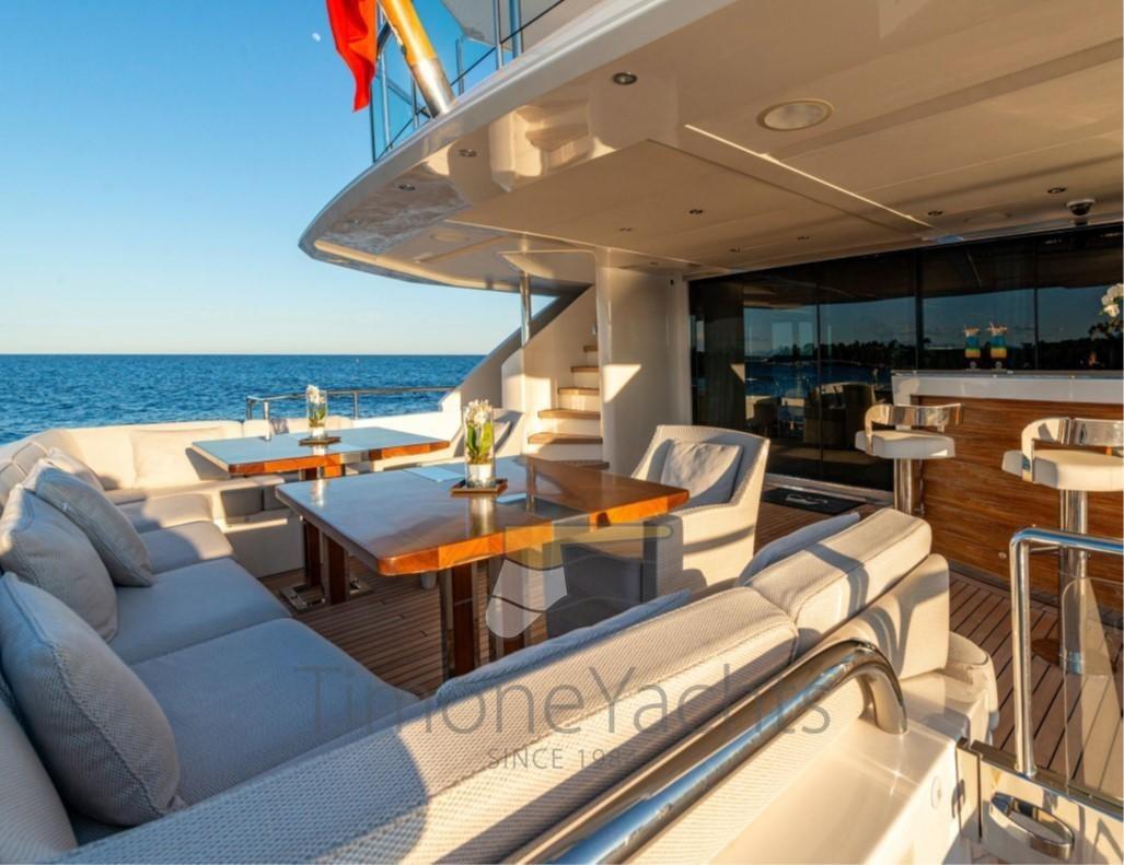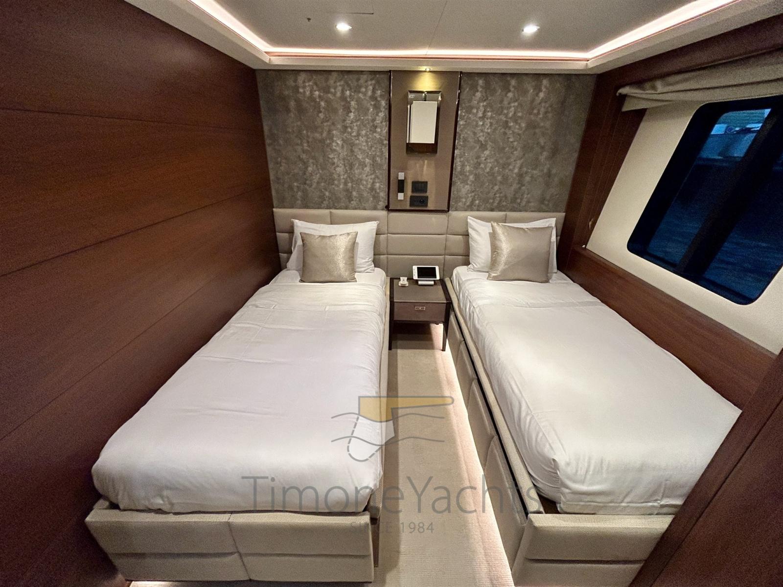 IMPERIAL PRINCESS BEATRICE est un superbe superyacht de 40,16 m (132 pieds) construit pour la location par Princess Yachts et livré en 2012. Ce yacht à moteur primé présente une architecture navale et un design extérieur d’Olesinski Ltd., tandis que son intérieur a été conçu par Bannenberg & Rowell design. Ce navire de 395GT se distingue par un volume impressionnant à l’envers. Il peut accueillir confortablement 12 invités dans 5 cabines de luxe haut de gamme, où les invités sont divisés en une superbe cabine principale sur le pont principal de largeur, 2 cabines VIP et 2 cabines doubles convertibles, chacune avec des lits Pullman pliants supplémentaires. Chaque cabine est élégamment meublée et équipée de sa propre salle de bains. Il peut également accueillir 7 membres d’équipage pour un service maximal en charter.Se présentant dans de très bonnes conditions avec un réaménagement permanent et des mises à jour/mises à niveau, que ce soit sur des cosmétiques ou (et surtout) sur des machines.Très bon achat.Equipement électronique de navigation:AIS, Indicateur d'angle de barre, Antenne radar, 2 Compas, Commande électrique, 2 Ordinateur fixe de bord, 2 Compteur de chaîne, 2 Loch, 2 Moniteur, 2 Sondeur pêche, 2 GPS, Interphone, 4 Lecteur de cartes, 2 Radio VHF, Siège copilote.Equipement de pont:Alarme gaz, 2 Alarme moteur, Alarme de pompe de cale, Eau sous pression, Taquets pliants, Passavant en teck, Douche de cockpit, Double barre à roue, Phares fixes arrière, Phare de poursuite, Flaps hydrauliques, Garage à annexe, Hard top, Extincteur(s) fixe(s), Indicateurs de flaps, Lavage de chaine, Éclairage de courtoisie, Spots sous-marins, Passerelle (elettroidraulica), Plateforme arrière, Porte latérale, 2 Porte latérale, Cockpit en teck, Prise de quai, Connexion eau sous pression à quai, Onduleur, 2 Guindeau Hydraulique, Echelle de bain, Selles pour Annexe, Stabilisateurs (ABI TRAC FINS), table de cockpit, Annexe, Corne, 2 Winch électrique arrière, 2 Winch électrique avant.Equipement intérieur:Air conditionné (doppio ciclo), BBQ/ Grill, Ballon d'eau chaude, Coffre-fort, Air Conditionné, Contrôleur domotique, Gradateur de lumière, 2 Dessalinisateur (new 2022), Cuve à eaux noires, Plancher intérieur en bois, Prises interieures 12v, Prises interieures 220v, Réservoir d'eau noire, Caméra vidéo, 8 Toilettes électriques.Divers:Haut-parleurs, Antenne satellite TV, Décodeur satellite, TNT, Home cinéma, Mécanisme de levage de télévision, Radio AM/FM.Equipement de confort:Sèche linge, Aspirateur centralisé, Cuisine, Cuisinière, Réfrigérateur extérieur, Glacière, Machine à glaçons, Lave-vaisselle, Lave-linge, Plaque vitrocéramique.Sellerie et tauds:Sellerie complète, Coussins arrieres, Coussin avant, Sellerie de fly, sellerie de cockpit, Rideaux occultants, Tauds de pare-brise, Taud électrique, Taud de soleil.Notes équipement:USINE:- Févr. MTU QL3 2024 (4-5k heures) pour 160k euros les deux moteurs- Générateur 2023 reconstruit, 100k les deux- 2023/24 : tout nouveau système hydraulique pour passerelle, stabilisateurs et grue- Révision de la porte coulissante principale Opacmare 2024- 2022 nr.2 dessalinisateurs flambant neufs- Peinture grise 2020