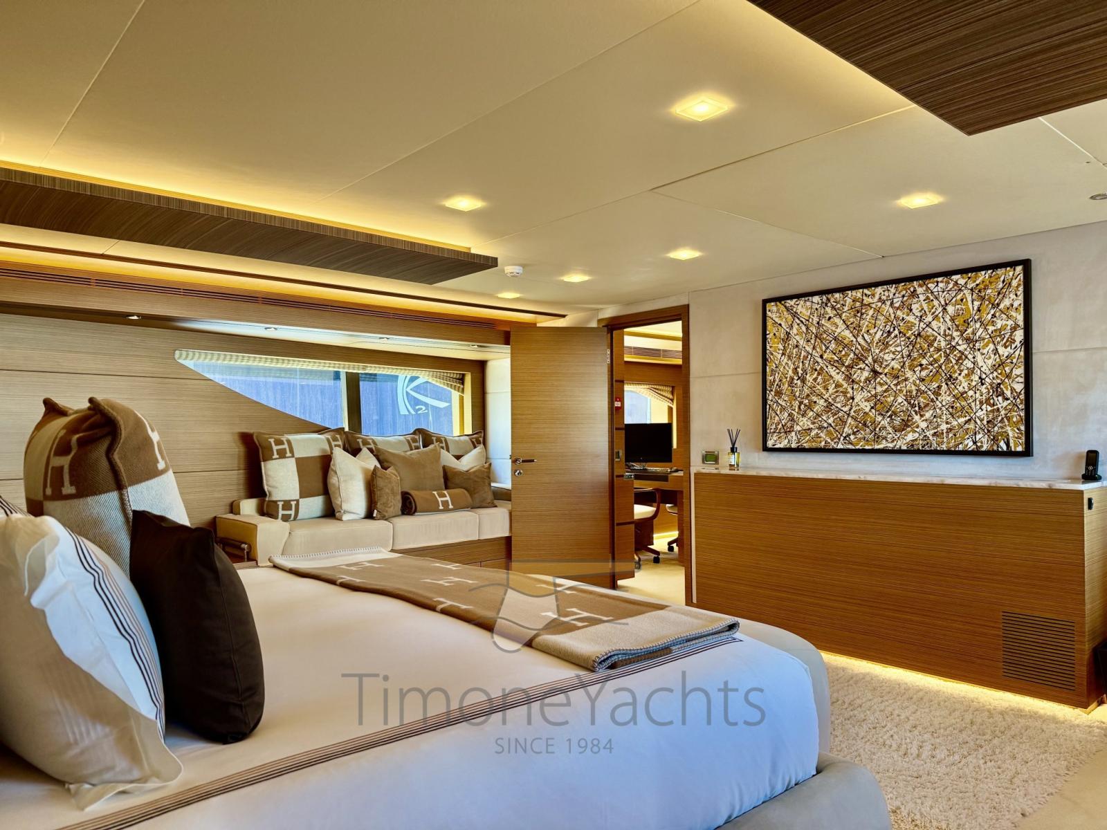 IMPERIAL PRINCESS BEATRICE est un superbe superyacht de 40,16 m (132 pieds) construit pour la location par Princess Yachts et livré en 2012. Ce yacht à moteur primé présente une architecture navale et un design extérieur d’Olesinski Ltd., tandis que son intérieur a été conçu par Bannenberg & Rowell design. Ce navire de 395GT se distingue par un volume impressionnant à l’envers. Il peut accueillir confortablement 12 invités dans 5 cabines de luxe haut de gamme, où les invités sont divisés en une superbe cabine principale sur le pont principal de largeur, 2 cabines VIP et 2 cabines doubles convertibles, chacune avec des lits Pullman pliants supplémentaires. Chaque cabine est élégamment meublée et équipée de sa propre salle de bains. Il peut également accueillir 7 membres d’équipage pour un service maximal en charter.Se présentant dans de très bonnes conditions avec un réaménagement permanent et des mises à jour/mises à niveau, que ce soit sur des cosmétiques ou (et surtout) sur des machines.Très bon achat.Equipement électronique de navigation:AIS, Indicateur d'angle de barre, Antenne radar, 2 Compas, Commande électrique, 2 Ordinateur fixe de bord, 2 Compteur de chaîne, 2 Loch, 2 Moniteur, 2 Sondeur pêche, 2 GPS, Interphone, 4 Lecteur de cartes, 2 Radio VHF, Siège copilote.Equipement de pont:Alarme gaz, 2 Alarme moteur, Alarme de pompe de cale, Eau sous pression, Taquets pliants, Passavant en teck, Douche de cockpit, Double barre à roue, Phares fixes arrière, Phare de poursuite, Flaps hydrauliques, Garage à annexe, Hard top, Extincteur(s) fixe(s), Indicateurs de flaps, Lavage de chaine, Éclairage de courtoisie, Spots sous-marins, Passerelle (elettroidraulica), Plateforme arrière, Porte latérale, 2 Porte latérale, Cockpit en teck, Prise de quai, Connexion eau sous pression à quai, Onduleur, 2 Guindeau Hydraulique, Echelle de bain, Selles pour Annexe, Stabilisateurs (ABI TRAC FINS), table de cockpit, Annexe, Corne, 2 Winch électrique arrière, 2 Winch électrique avant.Equipement intérieur:Air conditionné (doppio ciclo), BBQ/ Grill, Ballon d'eau chaude, Coffre-fort, Air Conditionné, Contrôleur domotique, Gradateur de lumière, 2 Dessalinisateur (new 2022), Cuve à eaux noires, Plancher intérieur en bois, Prises interieures 12v, Prises interieures 220v, Réservoir d'eau noire, Caméra vidéo, 8 Toilettes électriques.Divers:Haut-parleurs, Antenne satellite TV, Décodeur satellite, TNT, Home cinéma, Mécanisme de levage de télévision, Radio AM/FM.Equipement de confort:Sèche linge, Aspirateur centralisé, Cuisine, Cuisinière, Réfrigérateur extérieur, Glacière, Machine à glaçons, Lave-vaisselle, Lave-linge, Plaque vitrocéramique.Sellerie et tauds:Sellerie complète, Coussins arrieres, Coussin avant, Sellerie de fly, sellerie de cockpit, Rideaux occultants, Tauds de pare-brise, Taud électrique, Taud de soleil.Notes équipement:USINE:- Févr. MTU QL3 2024 (4-5k heures) pour 160k euros les deux moteurs- Générateur 2023 reconstruit, 100k les deux- 2023/24 : tout nouveau système hydraulique pour passerelle, stabilisateurs et grue- Révision de la porte coulissante principale Opacmare 2024- 2022 nr.2 dessalinisateurs flambant neufs- Peinture grise 2020