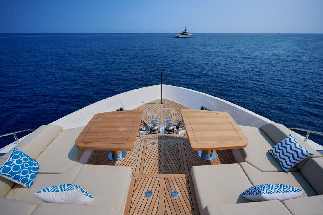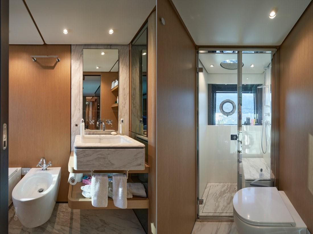 FERRETTI 1000 est un yacht à moteur de 30,13 m, construit en Italie par Ferretti Yachts et livré en 2022. Sa vitesse maximale est de 28 nœuds et sa vitesse de croisière est de 24 nœuds, équipé de deux moteurs MTU 2000 M96L de 2 638 CV. Il peut accueillir jusqu’à 10 personnes dans 5 cabines, avec 5 membres d’équipage prêts à répondre à tous leurs besoins. Il a une jauge brute de 190,0 GT et une largeur de 6,81 m.Le design extérieur est le résultat du travail habile de Filippo Salvetti, tandis que les intérieurs du yacht ont été conçus par IdeaeITALIA.Par rapport aux yachts à moteur de taille similaire, FERRETTI 1000 a une vitesse de pointe supérieure à la moyenne de cette gamme et son volume est supérieur de 3,34 GT.Equipement électronique de navigation:AIS (transponder SIMRAD NAIS500 (RX-TX)), Indicateur d'angle de barre, Antenne radar, Compteur de chaîne, Joystick.Equipement de pont:Alarme gaz, Alarme moteur, Alarme de pompe de cale, 2 Ancre (Pull da 105kg e 2 catene 13mm lung. 150 mt), Eau sous pression, Passavant en teck, Douche de cockpit (a poppa), Propulseur de poupe (idraulica 40hp), Phare de poursuite, Garage à annexe, Bossoirs pour annexe, Hard top (con vetro fisso), Éclairage de courtoisie, Spots sous-marins, Passerelle, Porte latérale (movimentazione elettrica), 2 Porte latérale (su lato destro e lato sinistro ad apertura manuale), Connexion eau sous pression à quai, Répétiteur électronique (Simrad 16''), 2 Stabilisateurs (Seakeeper + Pinne Zero Speed), table de cockpit, Winch, Winch électrique avant (Upgrade con due verricelli maggiorati 3,5 KW).Equipement intérieur:Air conditionné (tropicale (salone,cabine e equipaggio)), 2 BBQ/ Grill (Gaggenau sul fly), Connexion à internet, Gradateur de lumière, Dessalinisateur (360 l/h), 2 Réservoir d'eau noire (330 l in aggiunta a std), Caméra vidéo (kit con ciclico).Divers:Antenne satellite TV (antenna SAT KVH TV8 + dome vuoto), TV Ready (predisposizione TV SAT in tutte le cabine), 7 TV.Equipement de confort:Sèche linge, Four (90cm), Réfrigérateur extérieur (aggiuntivo sul fly), Réfrigérateur intérieur (4 porte con dispenser acqua e ghiaccio Samsung), Machine à glaçons (aggiuntivo sul fly), Lave-vaisselle, Lave-linge, Four micro-ondes (ad incasso), Plaque vitrocéramique (ad induzione 5 fuochi), Winecooler.Sellerie et tauds:Bimini (copertura dinette con pali), Taud électrique (e oscuranti in tutte le cabine e saloni), 2 Taud de soleil (3 pezzi in pozzetto e sul fly con pali in carbonio).Notes équipement:Braguette en teck avec commentaires noirs - Table d’étrave en teck naturel avec système de montée et de descente - Chaises longues à l’arrière avec housses - Porte-déchets dans le cockpit - Peinture des instruments de navigation - Nom du bateau arrière rétroéclairé - Auvents en maille noire pour le pare-brise et les côtés du pont - Lits coulissants dans les cabines d’invités - Stores vénitiens dans la cuisine - Sorties Shuko dans tout le bateau - Bidet dans les salles de bains LD - Mise à niveau du contrôle NAVIOP - Moniteur Simrad Upgarde sur le pont et le fly - Réfrigérateur dans la zone de l’équipage - Parquet dans le carré et la cuisine (noyer américain brossé) - Parois nervurées dans les 4 cabines LD - Éléments hauts fermés dans la cuisine - Salle de bain haut et sol dans le salonMarbre Calacatta Oro Valakas - Salles de bains du pont inférieur : lavabo, sol (y compris grille de douche) - Marbre dans la salle de bain du propriétaire y compris vanité dans la cabine - Revêtements extérieurs - Canapé salon Minotti MIrò Sabbia - Rideaux recourbés Casamance Kanso - Fauteuil Minotti Fynn en nubuck vert - Table basse d’appoint Minotti en cuir de sauge/sauge - Chaises de salle à manger Cattelan Magda - Cuisine avec portes blanches et plateau en laminam fokos/soldé - Tête de lit propriétaire en lin Dedar Svevo - Cadre de lit propriétaire marron Dani Dani - Dessus de meubles propriétaire Nuvola - Dani Nabuk Canapé propriétaire marron - Minotti Reeves Petit fauteuil de propriétaire - Tapis de pont inférieur en bambou Eros - Cadre de lit en kaki Nuvola et pouf du pont inférieur - Siège de barre en similicuir gris - Dessus d’armoire de bar en teck - Étagères de bar en verre fumé - Tabourets Roda Piper avec coussins - Table à mouches (tables d’extérieur entièrement naturelles) - Rembourrage extérieur Roda Sand - Canapé à mouches Roda Sand - Chaises Orson Batyline Sand x 5 - Sièges de barre Olympus Light Candido - Prises de salon - Ventilateurs d’extraction dans les salles de bains - Fenêtres en verre fumé sur l’escalier volant - Prédisposition électrique pour le verre rétroéclairé du nom du bateau arrière - Poste de contrôle fixe dans le cockpit avec couvercle - Station diesel dans le garage pour annexe - Douche dans la salle de bain des invités - Préparation de la chambre FLIR - Prédisposition TV dans la cabine du capitaine - Chaises de cockpit - Annexe et mise à l’eau du jet ski