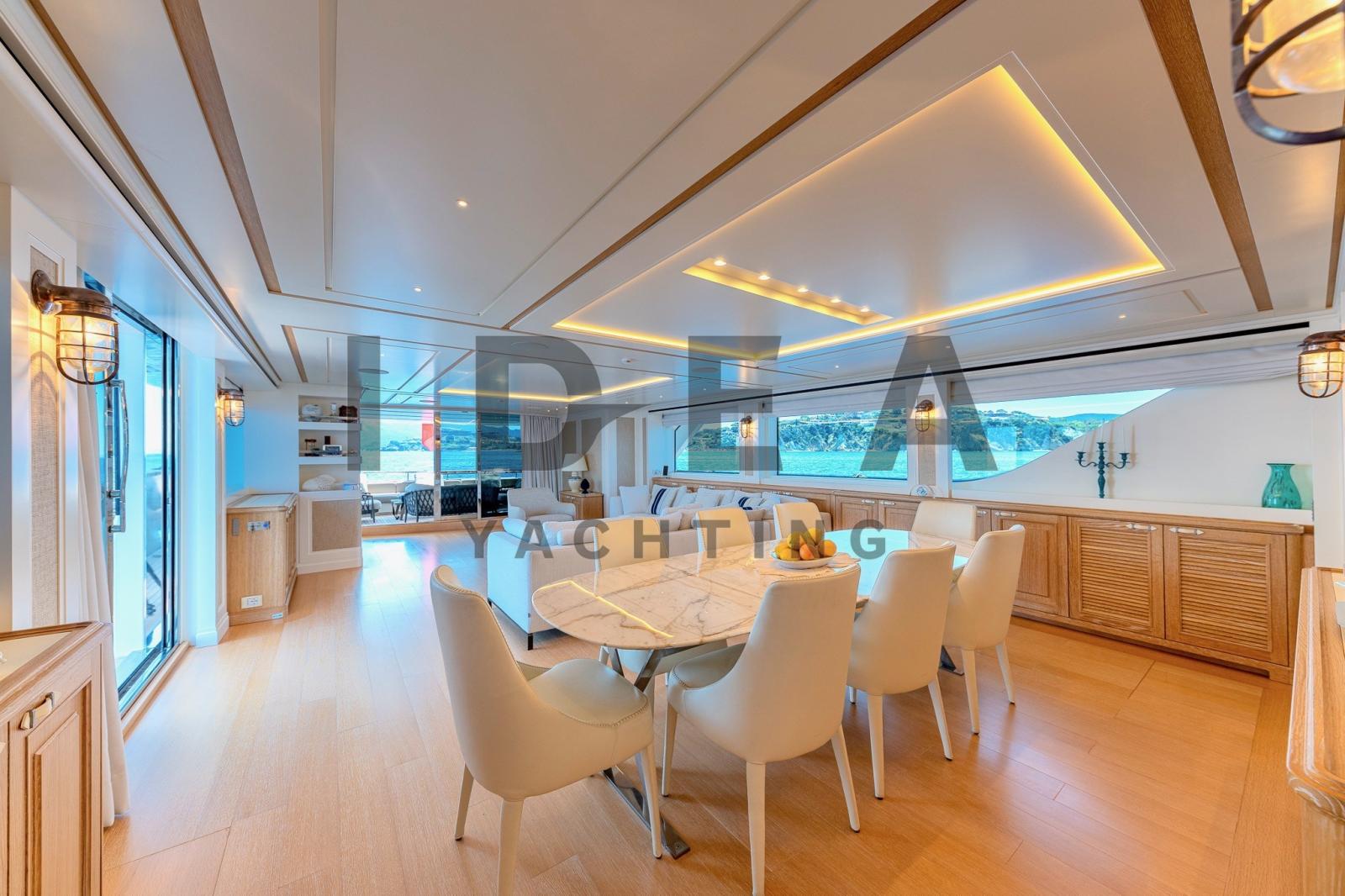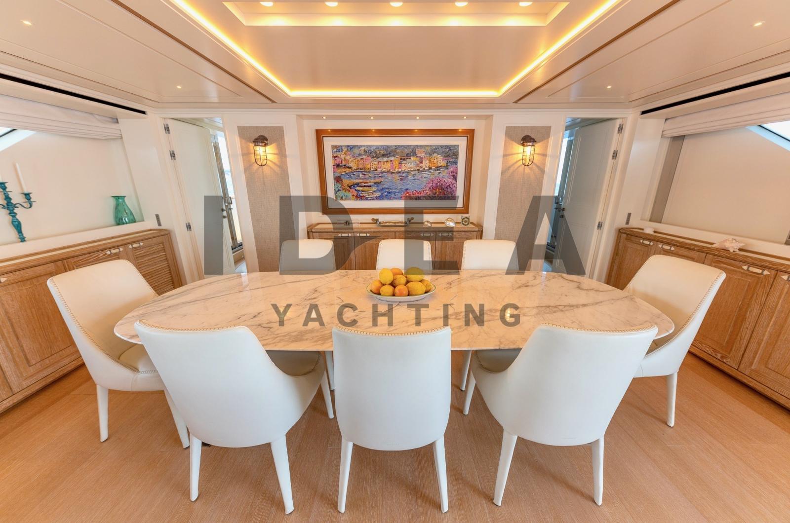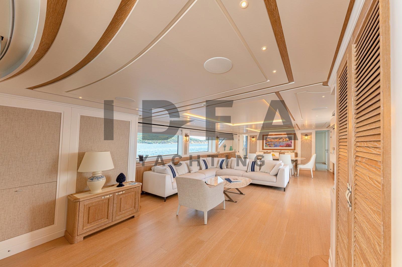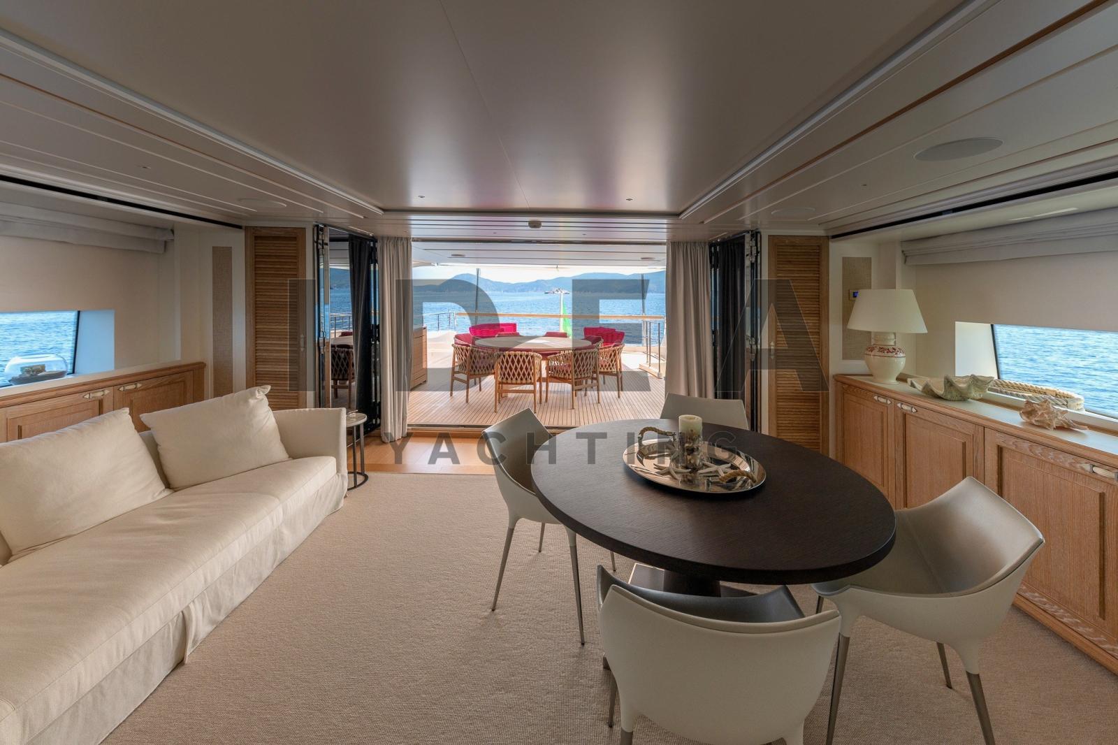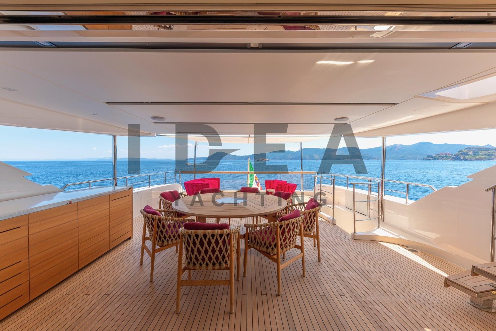 Le Sanlorenzo SD112, construit en 2018 et conçu par Francesco Paszkowski, est un superbe superyacht de 34,10 mètres qui incarne le luxe, le raffinement et l’artisanat exceptionnel. Avec de vastes espaces de vie et des équipements sophistiqués, ce yacht est conçu pour offrir un confort et une intimité inégalés pouvant accueillir jusqu’à 11 invités dans 5 cabines avec salle de bain.Le pont principal dispose d’un salon spacieux et lumineux avec des sièges moelleux, menant sans problème à la salle à manger formelle, qui peut accueillir confortablement jusqu’à huit personnes. La cabine principale, située à l’avant, offre une retraite sereine avec des vues panoramiques et une luxueuse salle de bains en marbre. Le pont inférieur abrite deux cabines VIP avec des lits doubles et deux cabines invités, l’une avec un lit pullman, toutes avec des salles de bains en marbre opulentes.La conception du yacht met l’accent sur l’intimité, avec un aménagement qui sépare les quartiers de l’équipage des cabines des invités via un escalier dédié. L’intérieur présente une palette de couleurs neutres, des matériaux luxueux tels que le parquet, le marbre et des tissus d’ameublement sur mesure, mêlant élégance contemporaine et tradition maritime.À l’extérieur, la plate-forme de bain offre un accès facile à l’eau, et le pont principal à l’arrière offre des sièges confortables pour des rassemblements détendus. Le pont supérieur arrière dispose d’un canapé moelleux, d’une salle à manger en plein air et d’une connexion transparente au salon du ciel. Le flybridge, avec une vue à 360 degrés, des chaises longues, un jacuzzi caché et un bar avec évier, offre un cadre idéal pour la détente et le divertissement.Le Sanlorenzo SD112 est un véritable chef-d’œuvre, combinant des intérieurs luxueux, de vastes espaces extérieurs et un savoir-faire méticuleux, établissant une nouvelle norme en matière de confort, de sophistication et d’intimité sur l’eau.Equipement électronique de navigation:Indicateur d'angle de barre, Antenne radar, 2 Commande électrique, 2 Moniteur (1 PLC in WheelHouse, 1 PLC in the Crew Area), DSC VHF, Sondeur pêche (Simrad), Ordinateur de bord, Loch (Simrad), 2 Pilote automatique (Simrad), 3 Lecteur de cartes (Simrad), 2 Radio VHF.Equipement de pont:Alarme gaz, 2 Alarme moteur, Alarme de pompe de cale, 2 Ancre (180Kg), Eau sous pression, Passavant en teck, Douche de cockpit (Removable for Aft platform), Double barre à roue, Propulseur d'étrave (Electrical), Phare de poursuite, Garage à annexe (and jetski), Hard top (Triangular above the custom Jacuzzi facing forward), Extincteur(s) fixe(s), 2 Lavage de chaine, Lavabo dans le cockpit (On the Upper Deck), 5 Spots sous-marins (Oceanled 3200 Lumen (n.4 on the transom; n.1on the bow bulb)), Passerelle (Electro-Hydraulic), Plateforme arrière, Pompe de cale automatique, Pompe de cale manuelle, Porte latérale, 3 Porte latérale, Cockpit en teck, Connexion eau sous pression à quai, Onduleur, Répétiteur électronique, 2 Guindeau électrique, Echelle de bain, Système de filtration des eaux usées (Tecnicomar mod. Ecomar 45), Stabilisateurs (CMC Electric zero-speed stabilizers), Corne, 2 Winch électrique arrière, 2 Winch électrique avant.Equipement intérieur:Air conditionné (240.000 btu), 2 BBQ/ Grill (Gaggenau VR 414 110 in the flybridge), Ballon d'eau chaude, Coffre-fort (In the Master Cabin and in the Captain Cabin), Air Conditionné, Connexion à internet (Wi-Fi system 4G), Gradateur de lumière (Exterior), Dessalinisateur (Idromar 210 l/h), Cuve à eaux noires, Plancher intérieur en bois, Prises interieures 12v, Prises interieures 220v, Réservoir d'eau noire, 6 Caméra vidéo, Caméra infrarouge (FLIR), Toilettes électriques.Divers:Haut-parleurs, Antenne satellite TV (SeaTel ST24E + Empty Radome SEATEL ST248), Mécanisme de levage de télévision (in the master cabin), Radio AM/FM, Hi-Fi.Equipement de confort:Sèche linge (Miele), Four (90cm), 3 Réfrigérateur intérieur (1 MABE/G.E. PFME 1NFNB in the Galley, Additional fridge in the Main Deck Saloon, Additional fridge in the Flybridge), 2 Machine à glaçons (1 in the Main Deck Saloon, 1 in the Upper Deck Pantry), 2 Lave-vaisselle (Miele PG 8083 SCVi Professional in the galley, additional Comenda LF322MA in the Crew Mess), Lave-linge (Miele), 2 Four micro-ondes (1 in the galley, 1 combined Whirlpool AMW 836/XL in crew mess), Plaque vitrocéramique (90cm), Winecooler (Gaggenau 64 bottles).Sellerie et tauds:Sellerie complète, Coussins arrieres, Coussin avant, Sellerie de fly, sellerie de cockpit, Taud de console, Taud de siège, Taud de soleil (Upper Deck cockpit awning).Notes équipement:ÉquipementMaître de câble 30mRavitaillement en carburant dans le garage Isolation acoustique supplémentaire dans la cloison entre la salle des machines et les cabines 3 téléviseurs dans les 3 cabines d’équipage Installation d’un onduleur pour antenne audio/vidéo/SAT CCTV IP : 1 motorisé dans la cabine de manœuvre + 2 motorisés dans les passerelles latérales, 1 motorisé + 2 fixes dans la salle des machines + 1 moniteur dédié au poste de timonerie (avec DVR) Forfait Simrad Diamond Caractéristiques extérieures Platelage en teck dans le flybridge Jacuzzi sur mesure sur le flybridge avec système d’eau de mer Balcon latéral avec porte latérale donnant sur le salon sur le pont principal Modification de la porte du cockpit de ronde à droite Bar dans le cockpit du pont supérieur, en teck et Corian Parapluie pour la table à l’avant Caractéristiques intérieures Salle de bain supplémentaire sur le pont supérieur Table supplémentaire à la timonerie avec une base en acier inoxydable poli et un plateau en bois Mur + porte coulissante entre le poste de pilotage et l’escalier des invités en verre trempé Rideau enroulable électrique avec guides entre le salon du pont supérieur et le poste d
