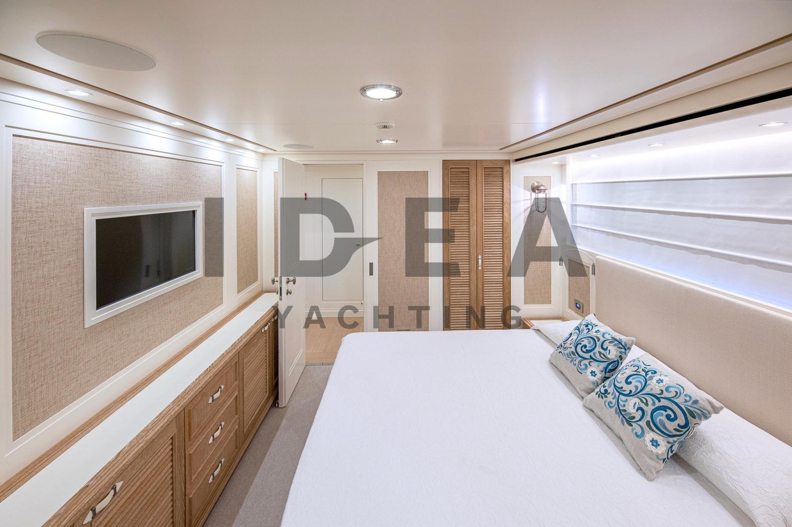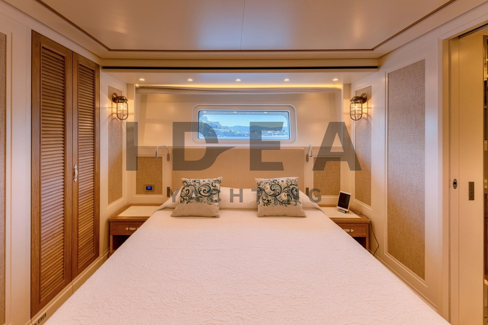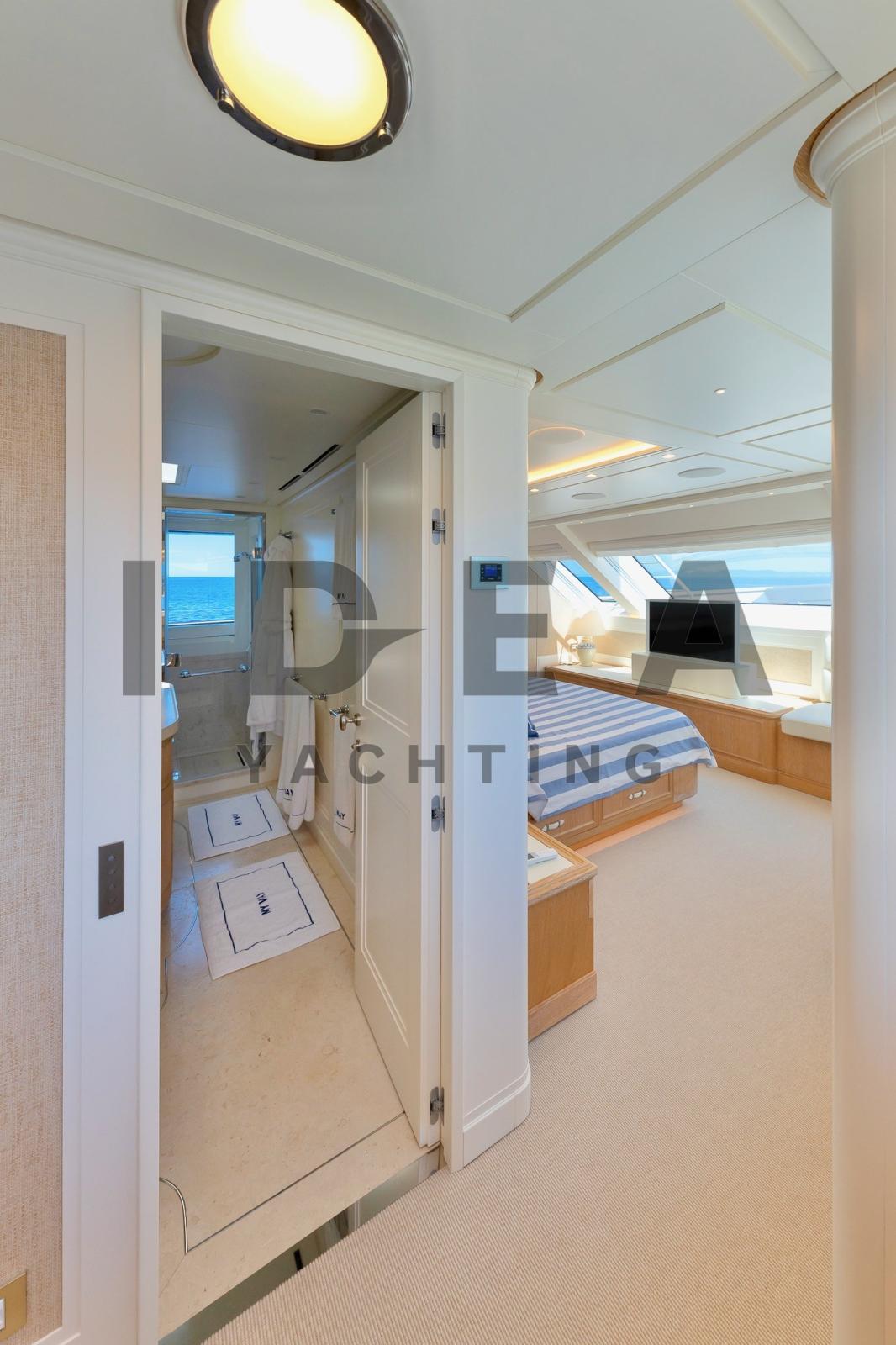Très bon état généralJet d’eau KaMeWaLes reprises sont évaluéesPont principalHall d’entrée avec coin salon, avec canapé en L à gauche, canapé avec tables pliantes à tribord | Bar d’angle central derrière la timonerie avec toit panoramique | Salle home cinéma à l’avant avec TV 3D 60" qui se transforme en une 5ème cabine double avec canapé-lits et salle de bainPont inférieurSuite propriétaire au milieu du navire, lit king size, coin salon, télévision grand écran et salle de bain attenante | Cabine VIP à l’avant avec lit king size, coin salon, télévision grand écran et salle de bain attenante | Cabine invités avec lit double, télévision grand écran et salle de bain privée à tribord, entre la cabine VIP et la cabine principale | Cabine d’invités avec lits plats, autocar en option, télévision grand écran et salle de bain privée sur la gauche | Cabine équipage avec lits plats et salle de bain privée avec entrée indépendante depuis le coqueron avant | Cabine du capitaine avec lit simple, cabine de l’équipage avec lits superposés, cuisine et buanderie au milieu du navire et salle des machines à l’arrièreDevant l’entrée du salon principal, il y a des canapés d’angle des deux côtés avec deux tables et un canapé qui rejoint une grande terrasse le long de la poupe. Un escalier de chaque côté mène à la plate-forme de bain sur le pont inférieur. Des passerelles latérales mènent le long du pont principal jusqu’au pont avant, où se trouve un autre canapé en forme de C avec deux tables et de grandes chaises longuesSystème AV Crestron | Système stéréo surround B&OTV 42" dans le salon de pont | TV dans chaque cabine Home Cinéma avec écran 3D 60"iPod dans le salon de pont, la salle de télévision, la cabine principale et la cabine VIPFEUILLE EN COURS DE MISE À JOUREquipement électronique de navigation:AIS, Indicateur d'angle de barre, Antenne radar, Commande électrique, Ordinateur fixe de bord, Compteur de chaîne, Moniteur, DSC VHF, Plotter GPS, Siège copilote.Equipement de pont:Alarme gaz, Alarme moteur, Alarme de pompe de cale, Eau sous pression, Trim hydraulique, Passavant en teck, Douche de cockpit, Phare de poursuite, Flaps hydrauliques, Garage à annexe, Grue pour jet-ski, Bossoirs pour annexe, Hard top, Extincteur(s) fixe(s), Indicateurs de flaps, Lavabo dans le cockpit, Éclairage de courtoisie, Jet-ski (Seadoo 155 Hp), Passerelle (idraulica), Plateforme arrière, Pompe de cale automatique, Pont en teck, Porte latérale, 2 Porte latérale, Cockpit en teck, Prise de quai, Connexion eau sous pression à quai, Guindeau électrique, Echelle de bain, table de cockpit, Table pliante de salon, Annexe, Corne, 2 Winch électrique arrière.Equipement intérieur:Ballon d'eau chaude, Air Conditionné, Connexion à internet, Contrôleur domotique, Gradateur de lumière, Dessalinisateur, Cuve à eaux noires, Plancher intérieur en bois, Prises interieures 12v, Prises interieures 220v, Réservoir d'eau noire, 8 Toilettes électriques.Divers:Haut-parleurs, Home cinéma (Home Cinema with 60" 3D Screen), Radio AM/FM, Hi-Fi (B&O surround sound stereo system), 6 TV (salone, home cinema e nelle cabine).Equipement de confort:Cuisine, Réfrigérateur extérieur, Machine à glaçons, Lave et sèche-linge, Lave-vaisselle, Machine a café, Plaque vitrocéramique, Winecooler.Sellerie et tauds:Sellerie complète, Coussins arrieres, Coussin avant, sellerie de cockpit, Tauds de pare-brise.