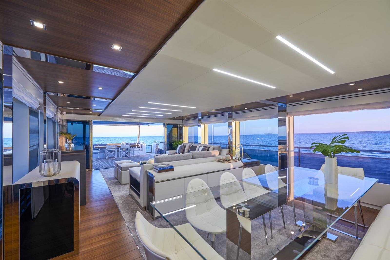 Chaque bateau AB YACHTS offre l’expérience d’au moins 50 nœuds de vitesse avec une vitesse de croisière de 46 nœuds ! De l’adrénaline pure, des accélérations incroyables et des virages à couper le souffle. Toujours sûr et glamour. Tempérament sportif, mais aussi une extrême attention au mode de vie à bord. Les vibrations ont été testées et il est étonnamment silencieux. La seule vraie option pour ceux qui veulent avoir le meilleur des meilleurs.Plus de 25 mètres conçus pour un propriétaire prêt à diriger son bateau en toute autonomie,l’utilisant comme day-boat de luxe ou comme croiseur pour de longues croisières. Un concentré de vitesse, sécurité et confort pour ceux qui aiment le frisson de la performance alternant avec le plaisir de la vie à bord et l’envie de découvrir des endroits différents avec des temps de croisière extrêmement courts.Avec 1,30 mt [4 pi], le tirant d’eau le plus bas de sa catégorieRéservoir de carburant 22 % plus grand Réservoir d’eau douce 35 % plus grand Avec 52+ nœuds, le bateau le plus rapide de sa catégorie 30 % d’autonomie en plus (milles marins) à vitesse de croisière 36 m² [387 pi²] de surface sur le fly bridge sport, 30% plus grand par rapport aux autres yachts de la même catégorie 54 m² [581 pieds carrés] d’espace de vie extérieur sur le cockpit arrièreet le club de plage75 m² [807 pi²] de surfaces vitrées pour une vue imprenable à 360°Entouré de lumière naturelleMoins d’une minute de zéro à la vitesse maximale pour l’excitation et De l’adrénaline à l’état pur en toute sécuritéNotes équipement:Jusqu’à 9 personnes dans 4 cabines Équipage 4 dans 2 cabines