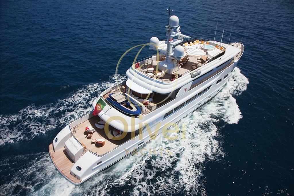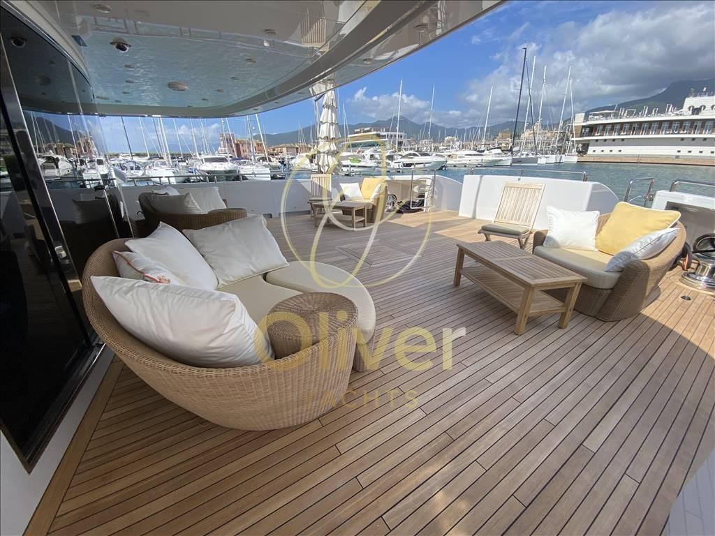 INTENSIF REFITÉ... COMME NEUF Prêt pour la saison. Sujet à un réaménagement en profondeur SEMBLE NEUF !! Prêt à la bouéeAprès le carénage intensif auquel le Baron Trenk a été soumis, il peut être défini comme un yacht pratiquement neuf. Les interventions ont concerné toutes les pièces du bateau, du W6 aux moteurs, au remplacement du teck sur tous les ponts, jusqu’à la peinture complète de la coque et de la superstructure. Le BARON TRENCK a été construit par Eurocraft avec une coque brise-glace pour explorer le monde. Le BARON TRENCK est incroyablement stable au mouillage et est également équipé de stabilisateurs à vitesse nulle. Ce yacht d’exploration est fait sur mesure pour les aventures en haute mer, des tropiques aux pôles, où tout ce que vous avez à faire est de vous détendre et de profiter des vues spectaculaires pendant que vous naviguez. BARON TRENCK fait partie des 30 % les plus performants au monde en termes de tonnage. C’est l’un des 546 yachts à moteur de 40 à 45 mètres, et par rapport aux yachts à moteur de taille similaire, son volume est supérieur à la moyenne de 109,46 GT.Un yacht à trois ponts avec de grands ponts extérieurs arrière et un grand bain de soleil équipé d’un grand espace pour bronzer, d’un grand jacuzzi, d’une douche et d’un bar. Le yacht dispose de deux salles à manger, une intérieure sur le pont principal et une extérieure sur le pont arrière, le salon principal sur le pont principal et un sky lounge sur la passerelle.Matériau de la coque : AcierMatériau de la superstructure : AluminiumMatériau du pont : TeckPeinture : AwlgripNombre de ponts : 4CAPACITÉ Jauge brute : Tonneaux de jauge brute 478Tonnes nettes 143Déplacement des tonnes 425Capacité de carburant : 105 000 litres 27 738 gallons USCapacité d’eau douce : 23 270 litres 6 147 gallons USDessalinisateurs : 160 litres 42 gallons USEaux grises et noires : 4 270 litres 1 128 gallons USDepuis le pont principal, vous pouvez accéder au grand salon, situé sur le côté tribord se trouve le bar avec comptoir. Vers la proue se trouve le grand salon sur toute la largeur composé de deux grands canapés avec une table basse et quatre fauteuils pour créer deux espaces de réunion différents. Séparé par un buffet avec un meuble TV escamotable se trouve la salle à manger avec une grande table pour 12 personnes. Vers la proue, sur le côté bâbord, se trouve le couloir d’où partent les escaliers menant aux ponts inférieur et supérieur, ainsi que l’accès à la cuisine et à la cabine du propriétaire. Cette dernière est séparée de l’entrée par un bureau pour permettre une plus grande intimité. La chambre pleine largeur est très spacieuse et équipée d’une salle de bain avec toilettes, bidet, double vasque, douche et baignoire à remous.Sur le pont inférieur, il y a la cabine VIP avec un lit diagonal et également avec une salle de bain avec toilettes, bidet, double lavabo, douche et baignoire à remous. Vers la proue, à bâbord, se trouve la cabine double avec salle de bain attenante équipée de toilettes, bidet, double lavabo, douche et baignoire à remous, tandis que plus loin sur le côté tribord se trouve la cabine double avec lits plats équipée d’une salle de bain avec toilettes, bidet, lavabo et douche.Sur le pont supérieur, dès que vous arrivez en haut de l’escalier à tribord, il y a une cabine double avec des lits plats équipée d’une salle de bain avec WC, bidet, lavabo, douche, à bâbord une toilette quotidienne et immédiatement après la deuxième cabine double avec des lits plats avec une salle de bain avec WC, lavabo et douche. Vers la poupe se trouve le coin salon avec bar, canapé en L, table basse et fauteuils. De là, en sortant sur le pont, il y a une deuxième table à manger pour 12 personnes.Toutes les cabines et les espaces intérieurs sont meublés avec de la moquette blanc ivoire, des rideaux assortis et des ciellini recouverts de cuir assortis à la moquette et aux rideaux. Les salles de bains sont toutes en marbre crèEquipement électronique de navigation:AIS, Ordinateur fixe de bord, Interphone, Pilote automatique (da sistemare sulla timoneria Elica di prua: NAIAD MARINE VT 75), SSB, Téléphone satellite.Equipement de pont:Eau sous pression, 10 Batteries, Stabilisateurs, Corne, T-Top, Winch électrique arrière.Equipement intérieur:Ballon d'eau chaude (Elettrico), Dessalinisateur.Equipement de confort:Cuisine.Notes équipement:SYSTÈMES DE COMMUNICATION SATCOM : Oui INMARSAT - C : 2 x FURUNO FELCOM 15 ECDIS : Transas Radiophones VHF : VHF portables FURUNO & SIMRAD : VHF GMDSS Portable FURUNO : 2 x Sailor Handheld Iridium Téléphone satellite : Oui Interphone - Talk Back : Oui Système téléphonique : Panasonic Système d’interphone : Zenitel VHF Radios numériques : Oui SSB : FURUNO SSB MF/HF EPRIB : Oui Transpondeur radar : FURUNO Navtex Récepteur : Système de batterie FURUNO NX-700 GMDSS : 260 VA 24 Vdc Ensemble de batteries GMDSS Téléphones invités : Oui Communication de navire à navire : OuiSYSTÈMES DE NAVIGATION ET DE COMMUNICATION SYSTÈMES DE NAVIGATION Passerelle de navigation : Oui Moniteur : x 5 Radar en bande X : FURUNO, 2117 Radar en bande S : FURUNO, 2137 Poste de travail multifonctionnel : Oui Traceur de cartes : Transas UPS : Oui Compas magnétique : C. Plath Juppjter Gyrocompas : Repère de roue SIMRAD RG 85 Pilote automatique : Repère de roue SIMRAD AP-50 Système d’indicateur d’angle de barre : Oui Echo sondeur : 2 x FURUNO FE 700 Registre de vitesse : FURUNO DGPS : Oui GPS : FURUNO Capteur GPS mod. GD 150 AIS : FURUNO AIS FA 150 Navtex : FURUNO NX-700 Instruments à vent : FURUNO Wind Sonic Horn : Oui Projecteurs de recherche : Oui, 220W - 230V - Horloge de navigation sur le pont Alarme : Oui Ordinateur de bord : OuiGénérateur : 3 x ONAN 80 kW 400 VAC, 3 phases, 50 Hz Consommation de carburant du générateur : 10 l/h Système d’échappem