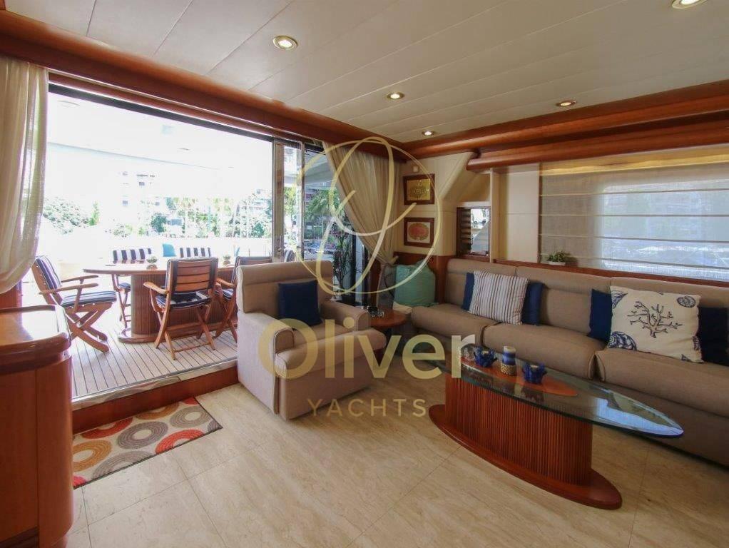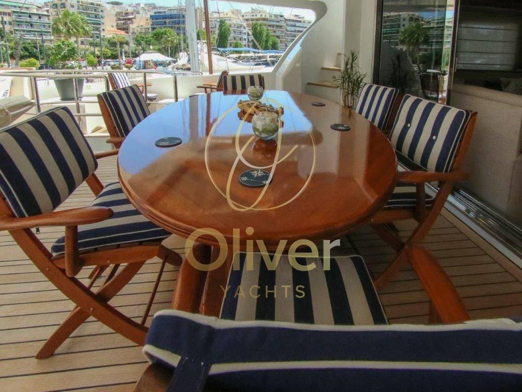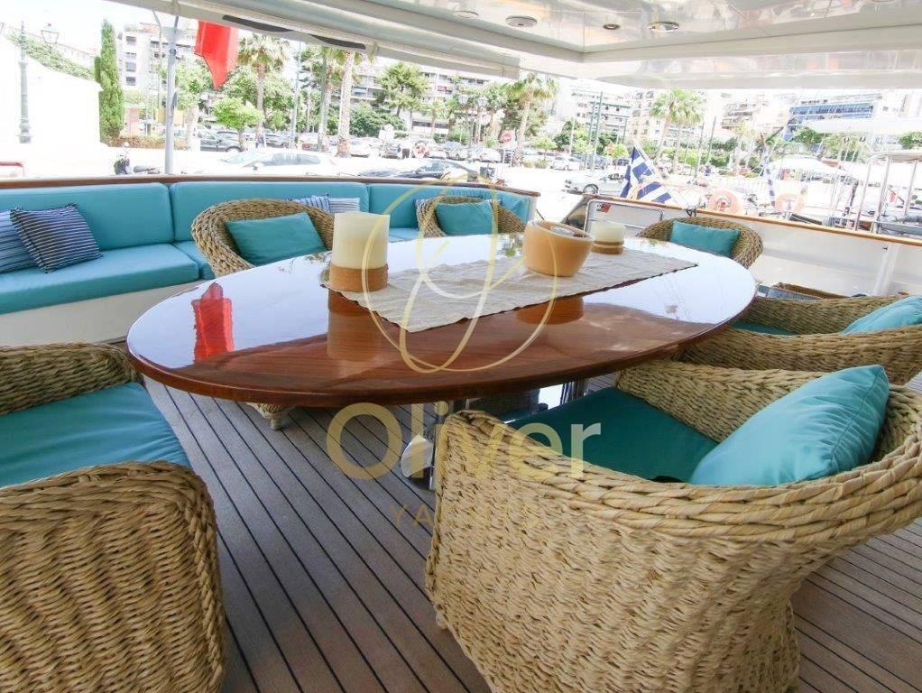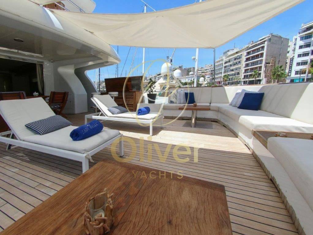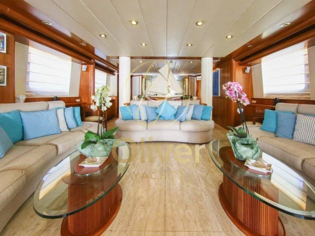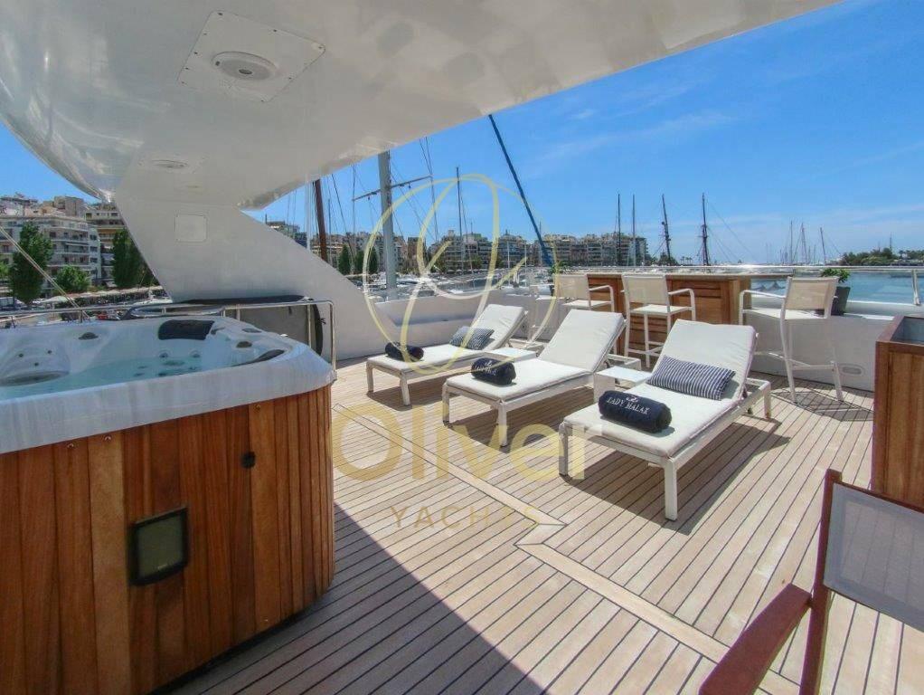 [email protected]. +39 327 14 86 389À bord, il y a une salle de sport avec tous les derniers équipements pour maintenir votre routine de remise en forme et un grand jacuzzi sur le flybridge pour pouvoir vous détendre en toute intimité.Le système de stabilisation à bord réduit le roulis du yacht presque à zéro et offre aux passagers des niveaux de confort exceptionnels à la fois au mouillage et en navigation.- Yacht rénové en 2013, y compris la peinture.- Mesure d’épaisseur réalisée d’ici 2021 (pas de problème).- Immatriculée à Madère/Portugal.Lady Malak propose un hébergement pour 8 personnes dans 4 suites, dont une suite principale, une cabine principale et deux cabines doubles. Au total, il y a 6 lits, dont 1 king, 1 queen et 4 lits simples. Le bateau est également capable d’accueillir jusqu’à 5 membres d’équipageEn entrant par la porte vitrée du cockpit, on accède au grand salon équipé d’un bar. Sur la gauche, il y a une table ronde juste en face du bar. Vers la proue se trouvent les trois canapés en demi-lune qui créent un environnement circulaire. La salle à manger est séparée du salon par une cloison semi-transparente afin d’avoir toute l’intimité nécessaire.Sur la gauche se trouve la porte d’accès à la grande cuisine entièrement équipée précédée d’un WC quotidien. Sur le côté tribord, en passant vers la proue, il y a un escalier pour accéder au pont inférieur, tout en continuant vers la proue, vous pouvez accéder à l’immense cabine principale pleine largeur avec dressing et salle de bain avec toilettes, bidet, double lavabo et baignoire.Sur le pont inférieur, vers la proue, il y a deux cabines doubles avec lits jumeaux. Les deux disposent d’armoires généreuses et d’une salle de bain avec toilettes, bidet, lavabo et doucheVers l’arrière se trouve la cabine VIP, qui peut également être utilisée comme deuxième cabine propriétaire. Cela aussi,Equipement électronique de navigation:AIS (classe A), Compas (magnetica), Ordinateur fixe de bord, Moniteur, DSC VHF, Sondeur pêche (con monitor professionale), Loch (con contamiglia), Lecteur de cartes (cartografico Furuno (nuovo), Radar (con display multi range).Equipement de pont:Eau sous pression, 10 Batteries, Jet-ski (Seadoo spark), Annexe.Equipement intérieur:Ballon d'eau chaude (Elettrico), Dessalinisateur.Equipement de confort:Cuisine.Notes équipement:Le bateau est équipé d’une direction hydraulique, d’accélérateurs électroniques, d’un double ordinateur de bord CAT, d’un propulseur, d’un double cartoscope gps multifonction, d’un écran multifonction, d’une VHF, d’instruments N° 5 tridata avec échosondeur, de la direction et de la vitesse du vent, d’un journal de bord avec odomètre, d’un compas magnétique, d’un gyrocompas, d’un angle de gouvernail, d’un pilote automatique, d’un radar avec affichage multi-portées, d’une instrumentation météorologique, d’un échosondeur avec moniteur professionnel, d’un ordinateur de bord- Traceur de cartes Furuno (neuf).- AIS classe A- (2) Radar Furuno- Sonar Simrad (nouveau).- Système B&G (nouveau).L’instrumentation énumérée ci-dessus est présente à la fois dans la passerelle et sur le flybridge pour assurer un contrôle total de l’unité dans toutes les situations.- Annexe de garage avec jet Castoldi de 5,5 m de long.- Jet ski Seadoo Spark.- Générateur de secours 25 kw + pompe à incendie de secours dans le garage. - Porte de garage hydraulique.- 2 Treuils électriques- 2 Guindeaux électriques- 2 Usines de dessalement- Pompe de cale + pompe à incendie et de cale.- Station d’épuration d’eau de mer- 2 Pompes à eaux noires- 2 chaudières (100L chacune).- 2 Pompes à eau douce- Ponts en teck (nouveaux commentaires).- Système de climatisation Concordia- Pompe de vidange.- Échangeurs de chaleur Alfa Laval.- Fly bridge complet avec équipement pour le poste de manœuvre.- Postes de manœuvre à tribord et à bâbord