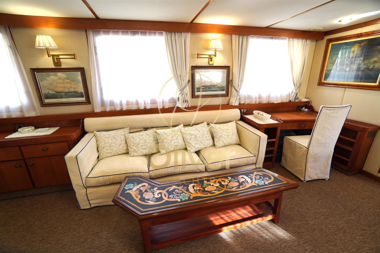 Lady Ecosse n’est pas seulement un bateau, c’est une expérience de la mer. Construit par le chantier naval Scheepswerf De Beer aux Pays-Bas, il a été livré à son premier propriétaire en 1962 et a subi sa dernière grande rénovation en 2023. Ce luxueux navire présente un design extérieur sophistiqué et une ingénierie de pointe, tous deux méticuleusement conçus par la talentueuse équipe de Scheepswerf De Beer. Les lignes extérieures de « Lady Ecosse » témoignent du savoir-faire de l’équipe de Scheepswerf De Beer, qui s’est également occupée de l’ensemble de l’ingénierie.Élégance intemporelle : Imaginez une époque où le yachting était synonyme de classe et d’aventure. Lady Ecosse, construite en 1962, conserve fièrement l’élégance de ces années avec des lignes classiques et des détails raffinés. Son charme intemporel est associé à un récent refit (2023) qui le rend comme neuf, parfait pour naviguer avec style. Hospitalité luxueuse : Malgré sa « petite » taille, Lady Ecosse offre le summum du confort avec 4 cabines spacieuses et élégamment meublées, chacune avec salle de bain privée. La suite du propriétaire sur le pont principal est une retraite de luxe avec vue panoramique. Les grands espaces communs vous permettent de passer des moments inoubliables en compagnie, du salon confortable avec coin repas aux différents espaces extérieurs.Un monde à portée de main : les adorateurs du soleil trouveront leur paradis sur le flybridge, qui est également parfait pour admirer des paysages à couper le souffle et profiter de soirées inoubliables sous les étoiles. Naviguer en toute confiance : les deux moteurs diesel GADNER vous permettent d’atteindre une vitesse de 14 nœuds, tandis que la navigation à 9 nœuds garantit un voyage agréable et confortable également grâce aux stabilisateurs efficaces. L’autonomie de 5 000 milles nautiques ouvre la porte à des croisières au long cours sans souci. Le récent réaménagement garantit une fiabilité et une sécurité maximales, avec des systèmes de pointe et un équipement complet.Plus qu’un bateau, une émotion : Lady Ecosse est un choix idéal pour ceux qui recherchent plus que de simples vacances à la mer. C’est une expérience unique qui allie élégance, confort, performance et le charme intemporel de la mer. Vous pourrez naviguer dans des eaux cristallines, explorer des criques cachées, profiter de couchers de soleil à couper le souffle et vivre des moments inoubliables avec vos proches.INTÉRIEURSUne élégance intemporelle : franchir le seuil de Lady Ecosse, c’est remonter le temps, à une époque où le yachting était synonyme de classe et de sophistication. Le design intérieur, savamment conservé lors du réaménagement de 2023, évoque l’atmosphère opulente des années 60 avec des détails raffinés et des matériaux nobles. Un voyage sensoriel : le bois chaleureux enveloppe les pièces, créant une atmosphère accueillante et relaxante. Les tapis et les tissus raffinés caressent les sens, tandis que les détails en laiton et les lampes vintage donnent une touche de luxe et d’originalité.Une harmonie de style : chaque pièce est soignée dans les moindres détails, avec une harmonie de couleurs et de formes qui crée une atmosphère élégante et sophistiquée. Le salon principal est le cœur battant du yacht, avec de grandes fenêtres offrant une vue imprenable sur la mer et un décor qui invite à la détente et à la conversation.Une expérience unique : vivre à bord de Lady Ecosse n’est pas seulement des vacances en mer, mais une expérience unique qui vous permet de vous immerger dans une époque révolue et de découvrir le charme intemporel du yachting classique.Bois : L’acajou et le teck sont les bois prédominants, utilisés pour les panneaux, les meubles et les revêtements de sol. Des tissus de haute qualité embellissent le mobilier. Des couleurs chaudes et enveloppantes, telles que le beige, le crème et le marron, créent une atmosphère relaxante. Les lampes vintage et les appliques en laiton donnent une touche de charme. Enfin, les antiquités et les peintures donnent une allure de sophistication.Equipement électronique de navigation:AIS, Indicateur d'angle de barre, 2 Antenne radar (Furuno, Simrad), Commande électrique (Kobelt), Ordinateur fixe de bord, Compteur de chaîne, Montre de bord, 2 Moniteur (Simrad, Raymarine), DSC VHF, Sondeur pêche (Simrad), GPS (Simrad), Interphone, Loch (Simrad), Pilote automatique (Simrad), Lecteur de cartes (Simrad), Plotter GPS (Simrad), 2 Radar (Furuno, Simrad), Anémomètre/Girouette (Raymarine).Equipement de pont:Alarme gaz, Alarme moteur, Alarme de pompe de cale, 2 Ancre, Eau sous pression, Passavant en teck, Douche de cockpit, Phares fixes arrière, Phare de poursuite, Grue de flybridge, Extincteur(s) fixe(s), Lavage de chaine, Éclairage de courtoisie, Passerelle, Pompe de cale automatique, Porte latérale, Porte latérale, Cockpit en teck, Prise de quai, Connexion eau sous pression à quai, Onduleur, Guindeau Hydraulique, Echelle de coupée, Echelle de bain, Selles pour Annexe, Système de filtration des eaux usées, Stabilisateurs, table de cockpit, Table pliante de salon, Filières avec sortie latèrale, Corne, Pont en teck, Winch électrique arrière.Equipement intérieur:BBQ/ Grill, 2 Ballon d'eau chaude (Elettrici), Air Conditionné, Connexion à internet, Dessalinisateur, Cuve à eaux noires, Plancher intérieur en bois, Prises interieures 12v, Prises interieures 220v, Réservoir d'eau noire, Caméra vidéo, Toilettes électriques.Equipement de sécurité:Baromètre, Jumelles, Fumigène, Cartes marines, Trousse à pharmacie, Gilets de sauvetage, Equipement sécurité jusqu'à 3 miles, Equipement sécurité jusqu'à 6 miles, Equipement sécurité jusqu'à 12 miles, Equipement sécurité jusqu'à 50 miles, Equipement sécurité au delà des 50 miles, Feux à main, Gilets de sauvetage