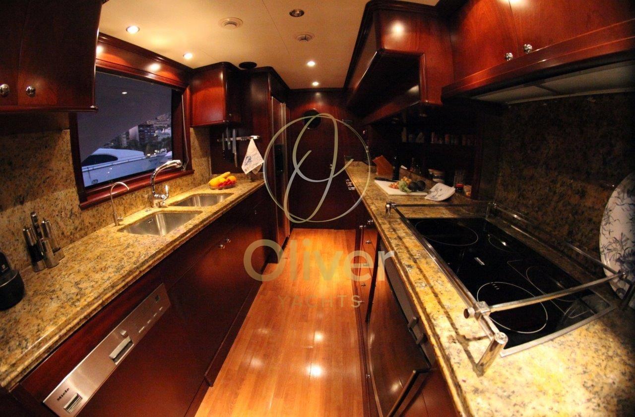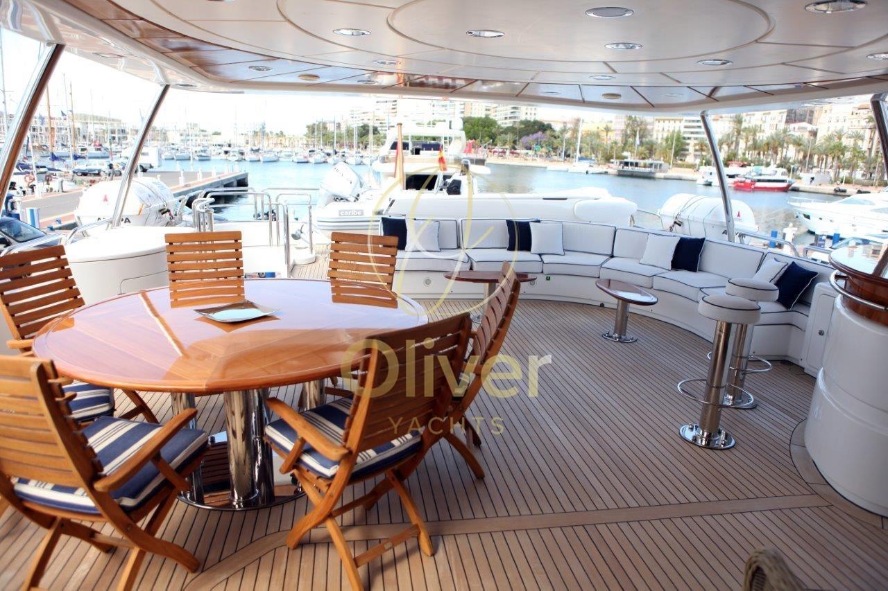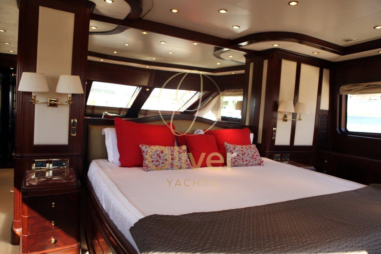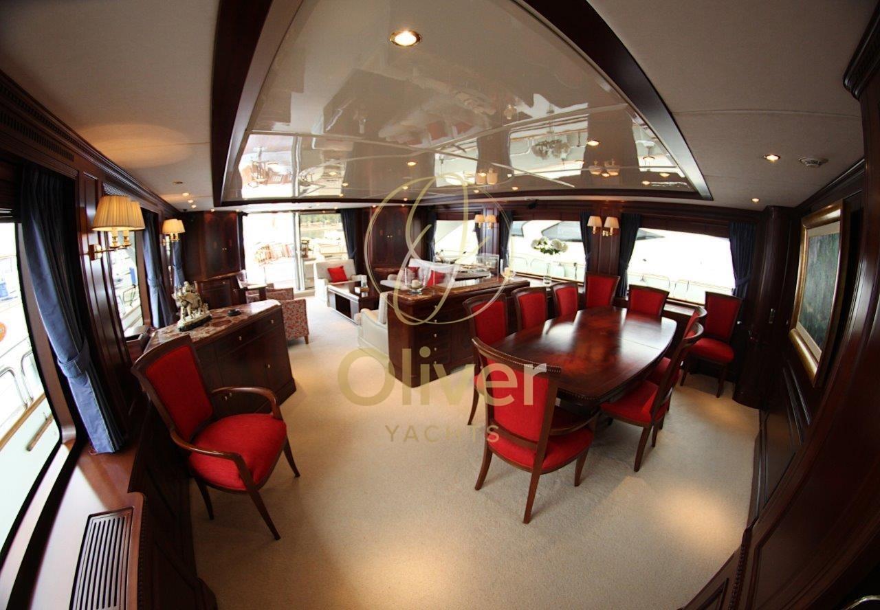 Bateau en excellent état général. Prêt pour la saison.Construit en Hollande par Porsius Shipyard B.V., il a été conçu par De Vries Lentsch.Les intérieurs sont bien entretenus et élégants. 2 réaménagements ont été effectués.La première, en 2007-2008, comprenait une remise à neuf majeure de la salle des machines, qui comprenait le remplacement de la plupart des composants principaux, y compris les génératrices, les systèmes de climatisation et la révision des moteurs principaux. Le deuxième carénage, qui a duré près de deux ans et s’est achevé en 2012, a impliqué une extension du tableau arrière de 3 mètres, l’ajout d’une plate-forme de bain intégrée, une extension du pont arrière couvert et du pont du bateau. Toutes les nouvelles cabines d’invités et les salles de bains ont été rénovées, nouvelle peinture et ponts en teck.Entrée par porte coulissante depuis le pont arrière. Salon très spacieux et confortable d’une hauteur de 1,97 m. Un grand canapé et deux chaises, une table de rangement qui peut également être utilisée pour des sièges supplémentaires, créant un espace de divertissement pour dix personnes. Le système de divertissement du salon comprend un téléviseur LED Sony Bravia de 42 pouces avec ascenseur électrique, un lecteur DVD Sony BluRay ; CD/radio Pioneer ; 4 haut-parleurs de 40 watts. Salle à manger à l’avant pour six personnes.Une salle de bains de service, avec un lavabo en marbre Blue Bahia, est située au centre du pont principal, dans le hall entre la suite du propriétaire et le salon principal et adjacente à l’escalier circulaire qui accède aux quartiers des invités et à la timonerie.Le bureau à tribord mène à la cabine du propriétaire. Le bureau est équipé d’une bibliothèque et d’un vélo d’appartement. Il y a de la place pour un bureau, précédemment retiré mais laissé sur le bateau.Grande cabine principale à l’avant avec 1,97 mètre d’espace pour la tête, un lit king-size avec des casiers généreux et amplement d’espace, une chaise et une coiffeuse. Nouveaux plafonds, éclairage LED et téléviseurs LED 32" en 2016. Grande salle de bain attenante avec lavabo en marbre (2012), douche à l’italienne avec banc (2016), W.C. et bidet. La climatisation avec système de ventilation à air frais complète la salle de bain.Trois cabines invités sur le pont inférieur, deux cabines avec un lit double et une cabine twin avec un lit pullman. Toutes les cabines disposent d’une salle de bains privative avec lavabo en marbre, de cabines de douche recouvertes de Corian avec incrustations de marbre. Chaque cabine est équipée de la climatisation avec échange d’air frais ; Hublots ouvrants, grandes unités murales et espaces de rangement. Les salles de bains ont des planchers en bambou et les cabines sont entièrement rembourrées.Cabine principale pleine largeur avec lit queen size, bureau, une armoire double et de grands tiroirs. Il y a un accès pour l’équipage pour le service derrière un miroir et une porte étanche.Deux cabines doubles pour les invités, un bureau et des cintres doubles pour armoires. La salle de bain privée, avec cabine de douche, lavabo en marbre Calcutta blanc et gris.Cabine d’invités avec lits jumeaux de 1,95 x 0,85 ; Table de chevet simple entre les lits et un lit pullman.Zone de l’équipage sur le pont inférieur avec accès depuis le pont principal et avec un accès supplémentaire dans la cloison arrière depuis les quartiers des invités. Couchages pour un total de quatre membres d’équipage. Il y a deux cabines : celle du capitaine dispose d’une couchette double et celle du marin dispose de 2 lits. Chaque cabine est équipée d’une cabine de douche, ainsi que de la climatisation.Les deux cabines ont été reconstruites en 2019 et la salle de bain et la cabine du capitaine en 2015.La salle à manger a été entièrement rénovée et rénovée en 2015/16 et comprend un petit évier, un réfrigérateur, un lave-vaisselle et des placards, la climatisation et la ventilation, une télévision 22 pouces avec lecteur DVD. Buanderie de l’équipage située à tribord du mess de l’équipage et équipée d’une laveuse et d’une sécheuse.Le grand pont arrière couvert a été entièrement reconfiguré lors de son carénage en 2012.Le nouvel aménagement est complètement à l’abri de la terrasse et comprend : canapé fixe de 10 pieds avec table à manger en teck peint et 4 chaises, bar avec réfrigérateur, évier et machine à glaçons.Plate-forme de bain avec porte pantographe étanche. Échelle de bain et garde-corps en acier inoxydable.Les grands ponts latéraux permettent un accès facile par l’équipage pour les opérations de nettoyage et d’entretien, tout en assurant aux propriétaires et aux invités un maximum d’intimité dans les zones réservées. Tous les ponts sont équipés de pavois et de couvercles en teck naturel non peints et/ou de garde-corps en acier inoxydable, le tout jusqu’à une hauteur de 1,0 m.Le pont avant, bien qu’il s’agisse principalement d’un pont de travail, dispose d’un coin salon isolé de 8 pieds ainsi que d’un espace de bronzage / détente à l’avant.Equipement électronique de navigation:AIS, Antenne radar, Commande électrique, Ordinateur fixe de bord, Compteur de chaîne, 2 Moniteur (monitor tvcc), DSC VHF, Interphone, Radar (elettrico GEM ARPA), Téléphone satellite.Equipement de pont:Alarme gaz, Alarme moteur, Alarme de pompe de cale, Eau sous pression, Système de vidange, Passavant en teck, Douche de cockpit, Double barre à roue, Grue de flybridge, Extincteur(s) fixe(s), Lavage de chaine, Éclairage de courtoisie, Passerelle (elettroidraulica), Plateforme arrière (poppa in teak), Pompe de cale automatique, Pompe de cale manuelle, Porte latérale, Porte latérale, Cockpit en teck, Prise de quai, Connexion eau sous pression à quai, Guindeau électrique, Echelle de bain, St