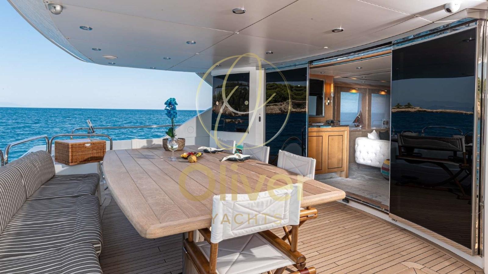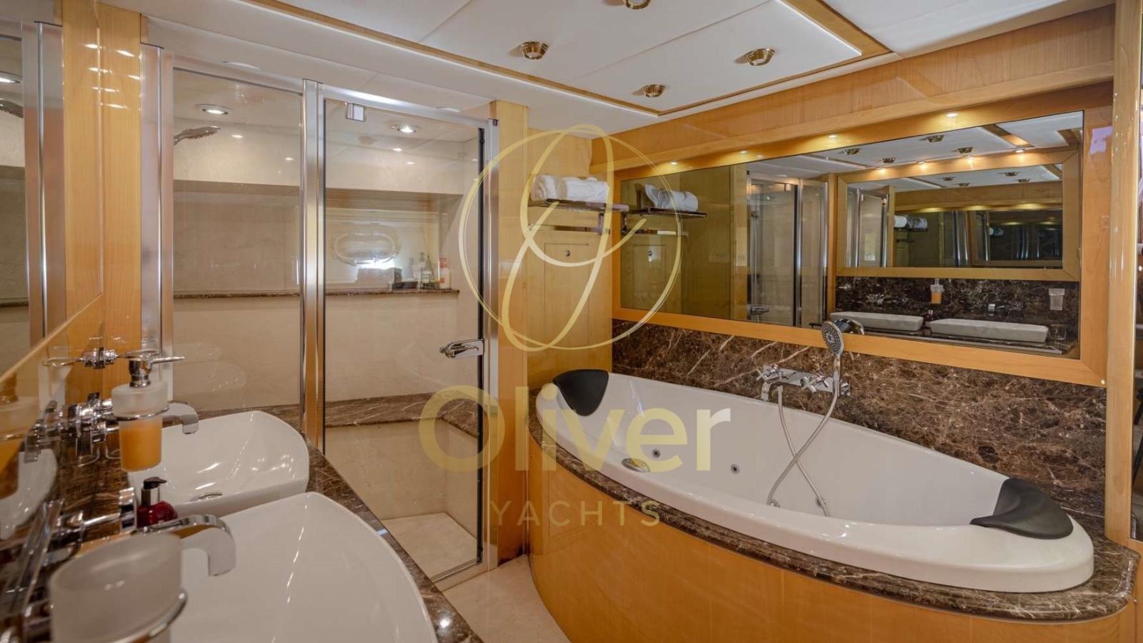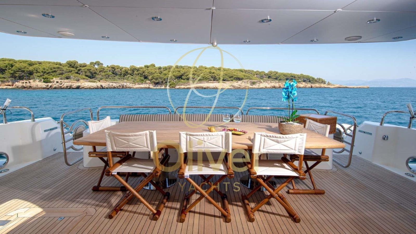Le Sunseeker 34M, d’une longueur de 111 pieds (34 mètres), est un yacht qui allie style, performance et confort de luxe. Conçu pour offrir une expérience exclusive en mer, il présente des lignes fluides et trois ponts spacieux qui offrent de nombreux espaces de détente et de divertissement. Ce modèle a fait l’objet d’un important refit en 2024, qui a modernisé de nombreux aspects du navire, notamment la navigation, l’éclairage et les systèmes de confort à bord.Équipé de deux moteurs MTU 12V 2000 M93, il est capable d’atteindre une vitesse maximale de 26 nœuds, avec une vitesse de croisière de 18 nœuds, ce qui le rend idéal pour une navigation rapide et confortable. Avec une capacité de carburant de 19 500 litres et un réservoir d’eau douce de 4 000 litres, le yacht est conçu pour les croisières à moyenne et longue distance.Les clients peuvent profiter d’un impressionnant flybridge avec un toit rétractable, un bar équipé et des zones de bronzage. Le pont principal offre des espaces pour les repas en plein air, tandis que les espaces intérieurs sont meublés avec des matériaux de haute qualité et une esthétique contemporaine. L’aménagement vous permet d’accueillir jusqu’à 8 personnes dans 4 cabines avec salle de bain, dont une suite propriétaire sur le pont principal.Grâce au système de stabilisation TRAC, le yacht garantit un confort exceptionnel tant en navigation qu’au mouillage. Équipé d’annexes, de jet-skis et d’autres équipements de jeux nautiques, le Sunseeker 34M représente la quintessence du luxe nautique.INTÉRIEURSL’intérieur du Sunseeker 34M incarne le luxe et la fonctionnalité, alliant élégance artisanale et détails modernes. Le réaménagement de 2024 a entièrement rénové les espaces, en introduisant un mobilier en cuir de haute qualité, des matelas de marque haut de gamme et un système d’éclairage LED dans toutes les cabines.Le salon principal accueille les clients avec un design raffiné, avec des meubles sur mesure, des boiseries d’origine polies et de grandes fenêtres panoramiques qui inondent l’espace de lumière naturelle et un balcon fantastique pour profiter du contact avec la mer. Cet espace comprend une salle à manger formelle et un coin salon confortable, idéal pour socialiser ou se détendre.La suite du propriétaire, située sur le pont principal, est une véritable oasis de luxe. Il est équipé d’un lit king-size, d’armoires spacieuses et d’une salle de bains privative avec des finitions raffinées. Sur le pont inférieur, il y a une cabine VIP pleine largeur et deux cabines doubles, toutes avec salle de bain attenante, pour assurer l’intimité et le confort des clients.La cuisine est entièrement équipée d’appareils modernes, dont un nouveau four (2024), des réfrigérateurs haut de gamme et des espaces optimisés pour le service à bord. Pour le divertissement, l’intérieur est équipé de nouveaux systèmes audiovisuels, notamment des téléviseurs connectés à un réseau Wi-Fi avancé et une console PS5.La décoration intérieure offre un environnement luxueux et accueillant, parfait pour se détendre après une journée d’exploration ou profiter de soirées raffinées à bord. L’intérieur du Sunseeker 34M reflète l’essence d’une expérience exclusive et personnalisée en mer.Equipement électronique de navigation:AIS (Raymarine), Indicateur d'angle de barre, Antenne radar, Commande électrique, Ordinateur fixe de bord (Raymarine), Compteur de chaîne, Montre de bord, Moniteur, DSC VHF, Joystick, Plotter GPS.Equipement de pont:Alarme gaz, Alarme moteur, Alarme de pompe de cale, Ouverture du compartiment moteur électrique, Ligne d'arbre de rechange, Auto Dynamic Trim Interceptor, Eau sous pression, Trim hydraulique, Taquets pliants, Système de vidange, Passavant en teck, Douche de cockpit, Double barre à roue, Phare de poursuite, Flaps hydrauliques, Garage à annexe, Hard top, Extincteur(s) fixe(s), Compresseur de plongée, Lavage de chaine, Lavabo dans le cockpit, Éclairage de courtoisie, Spots sous-marins, Passerelle, Plateforme arrière, Pompe de cale automatique, Pompe de cale manuelle, Porte latérale, Porte latérale, Cockpit en teck, Prise de quai, Connexion eau sous pression à quai, Onduleur, Répétiteur électronique, Rollbar, Guindeau Hydraulique, Echelle de bain, Système de filtration des eaux usées, Stabilisateurs, table de cockpit, Table pliante de salon, Filières avec sortie latèrale, Corne, Pont en teck, Winch électrique arrière, Winch électrique avant.Equipement intérieur:Alarme intrusion, BBQ/ Grill, Ballon d'eau chaude (Elettrico), Coffre-fort, Air Conditionné, Connexion à internet, Contrôleur domotique, Gradateur de lumière, Dessalinisateur, Cuve à eaux noires, Plancher intérieur en bois, Prises interieures 12v, Prises interieures 220v, Broyeur à ordures, Réservoir d'eau noire, Caméra vidéo, Toilettes électriques.Equipement de sécurité:Baromètre, Jumelles, Fumigène, Cartes marines, Trousse à pharmacie, Gilets de sauvetage, Equipement sécurité jusqu'à 3 miles, Equipement sécurité jusqu'à 6 miles, Equipement sécurité jusqu'à 12 miles, Equipement sécurité jusqu'à 50 miles, Equipement sécurité au delà des 50 miles, Feux à main, Gilets de sauvetage, Fusées parachutes, Réflecteur radar, Bouée fer à cheval et feu de retournement, Tableau à outils.Divers:Haut-parleurs, Antenne satellite TV, Décodeur satellite, TNT, Home cinéma, Mécanisme de levage de télévision, Ordinateur, Play Station, Radio AM/FM, Récepteur satellite, Hi-Fi.Equipement de confort:Sèche linge, Aspirateur centralisé, Cuisine, Cuisinière, Réfrigérateur extérieur, Groupe froid, Glacière, Machine à glaçons, Lave et sèche-linge, Lave-vaisselle, Lave-linge, Machine a café, Plaques électriques, Winecooler.Sellerie et tauds:Sellerie complète, Coussins arrieres, Coussin avant, Sellerie de fly, sellerie de cockpi