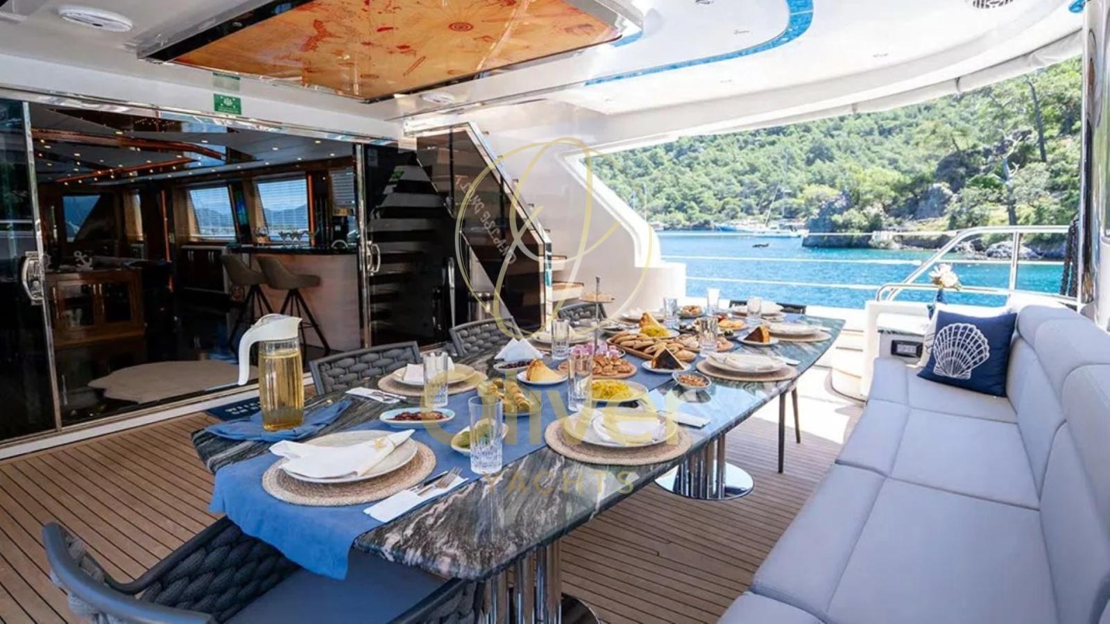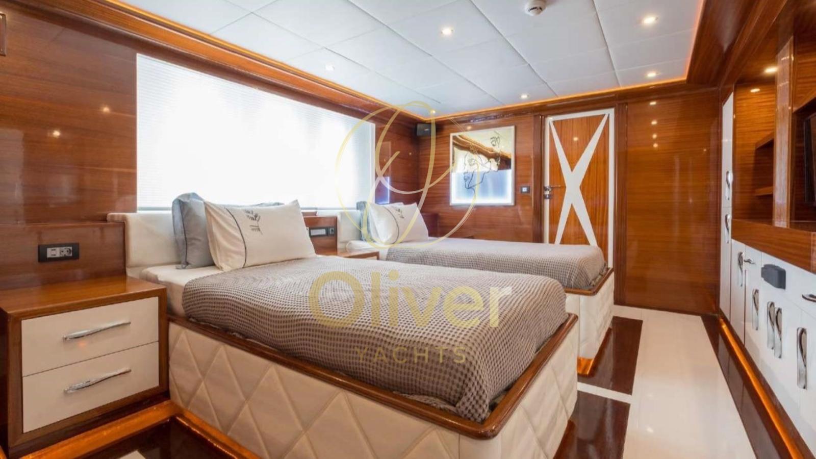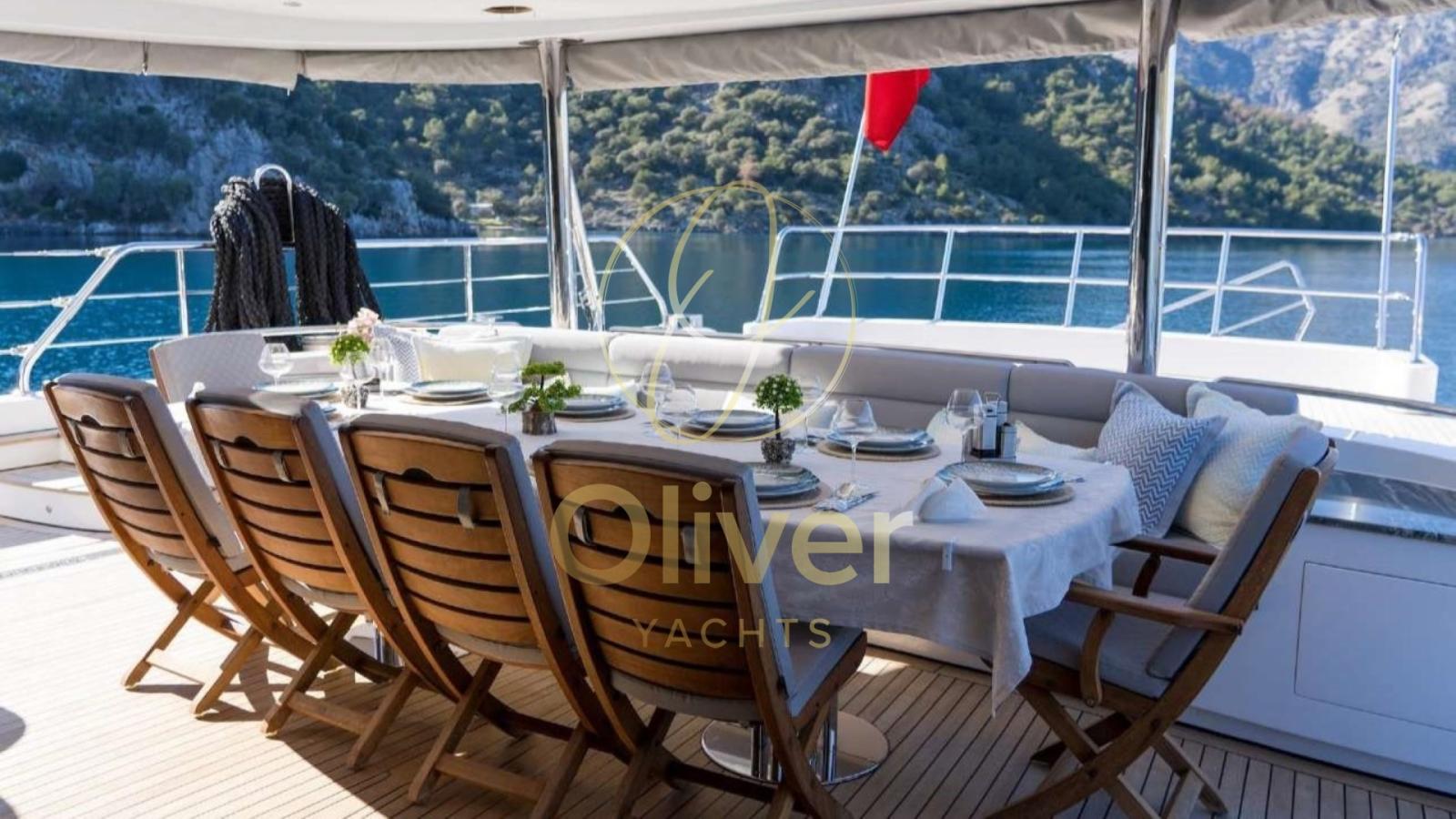 Ce prestigieux bateau de 39 mètres représente l’excellence de la croisière. Construite avec des matériaux de haute qualité, la coque est en bois lamellé-collé renforcé par des éléments composites, un choix qui garantit résistance structurelle, durabilité dans le temps et excellentes performances de navigation. Avec une largeur maximale de 8,50 mètres et un tirant d’eau de 3 mètres, le bateau offre une grande stabilité et de grands volumes qui peuvent être vécus aussi bien dans les espaces intérieurs qu’extérieurs. Il est équipé de deux moteurs MAN de 650 chevaux chacun, qui permettent une vitesse de croisière d’environ 10 nœuds, avec des pointes maximales allant jusqu’à 13 nœuds, tout en maintenant une consommation de carburant optimisée. L’autonomie du bateau permet une portée de navigation moyenne de 500 à 600 milles nautiques, ce qui le rend adapté à des itinéraires plus longs sans avoir besoin de ravitaillement fréquent.Entièrement réaménagé en 2022, il allie lignes élégantes, confort contemporain et services de premier ordre, offrant une expérience exclusive conçue pour satisfaire les clients les plus exigeants. À bord, jusqu’à 10 invités peuvent être logés dans cinq cabines luxueuses, dont une spacieuse suite propriétaire, trois cabines doubles VIP avec lits king-size et une cabine twin avec des lits simples au sol. Chaque cabine dispose d’une salle de bain privée, de la climatisation et de la télévision par satellite, assurant détente, intimité et confort à tout moment de votre séjour. Les vastes espaces extérieurs comprennent une salle à manger extérieure, d’élégants bains de soleil, un flybridge panoramique et une plate-forme de bain moderne. De nombreux jouets et équipements pour les sports nautiques et les activités récréatives sont également disponibles à bord.Description de l’intérieurLes intérieurs offrent un équilibre parfait entre raffinement et confort, conçus pour accueillir les clients dans un environnement élégant et accueillant plein d’attention aux détails. Le salon principal s’ouvre sur un grand espace lumineux, caractérisé par des finitions en bois nobles, un mobilier moderne et des tons chauds qui contribuent à créer une atmosphère relaxante et sophistiquée. De grandes fenêtres permettent à la lumière naturelle d’envelopper l’environnement, offrant une vue continue sur la mer même en naviguant. Le salon est meublé de canapés confortables et d’espaces dédiés à la détente et à la conversation, tandis que la salle à manger intérieure est une alternative élégante pour les dîners privés, dans un cadre intime et raffiné. Chaque espace est conçu pour assurer une fonctionnalité maximale, sans sacrifier l’esthétique et le confort. Les cinq cabines : 1 principale et 4 personnes offrent des environnements spacieux, calmes et meublés avec goût. La suite du propriétaire, particulièrement grande et lumineuse, est équipée d’un lit king-size, de grandes armoires et d’une salle de bain privée aux finitions modernes. Les trois cabines doubles VIP et la cabine double sont également équipées de salles de bains privées, de la climatisation et de la télévision par satellite, assurant un maximum de détente et d’intimité pour tous les clients. Chaque détail de l’intérieur a été conçu pour offrir une expérience sensorielle exclusive, où le design, le confort et la fonctionnalité se fondent harmonieusement, transformant chaque moment à bord en une occasion spéciale de bien-être et de plaisir.Ce bateau est la synthèse parfaite du luxe, de l’aventure et du bien-être, conçu pour offrir des moments inoubliables dans une atmosphère de pure élégance.Equipement électronique de navigation:AIS, Indicateur d'angle de barre, Antenne radar, Commande électrique, Ordinateur fixe de bord, Compteur de chaîne, Montre de bord, Moniteur, DSC VHF, Ordinateur de bord, Interphone, Plotter GPS, Jumbo, Siège copilote, Sondeur, Téléphone satellite, Yacht controller.Equipement de pont:Alarme gaz, Alarme moteur, Alarme de pompe de cale, 2 Ancre, Ouverture du compartiment moteur électrique, Ligne d'arbre de rechange, Eau sous pression, Trim hydraulique, Enrouleur pour cable électrique, Taquets pliants, Système de vidange, Passavant en teck, canoë, Douche de cockpit, Double barre à roue, Hélice de rechange, Phares fixes arrière, Phare de poursuite, Bossoirs pour annexe, Extincteur(s) fixe(s), Compresseur de plongée, Lavage de chaine, Lavabo dans le cockpit, Éclairage de courtoisie, Spots sous-marins, Jet-ski, Moteur d'annexe, Passerelle, Plateforme arrière, Pompe de cale automatique, Pompe de cale manuelle, Porte latérale, Porte latérale, Cockpit en teck, Prise de quai, Connexion eau sous pression à quai, Onduleur, Répétiteur électronique, Rollbar, Guindeau électrique, Guindeau Hydraulique, Guindeau manuel, Gréement monotoron, Echelle de coupée, Echelle de bain, Selles pour Annexe, Système de filtration des eaux usées, Stabilisateurs, table de cockpit, Annexe, Filières avec sortie latèrale, Corne, Pont en teck, Winch hydraulique, Winch électrique arrière, Winch électrique avant, Windex.Equipement intérieur:Alarme intrusion, BBQ/ Grill, Ballon d'eau chaude (ELETTRICO), Coffre-fort, Air Conditionné, Connexion à internet, Contrôleur domotique, Gradateur de lumière, Dessalinisateur, Cuve à eaux noires, Plancher intérieur en bois, Prises interieures 12v, Prises interieures 220v, Réservoir d'eau noire, Caméra vidéo, 7 Toilettes électriques.Equipement de sécurité:Baromètre, Jumelles, Fumigène, Cartes marines, Trousse à pharmacie, Gilets de sauvetage, Equipement sécurité jusqu'à 3 miles, Equipement sécurité jusqu'à 6 miles, Equipement sécurité jusqu'à 12 miles, Equipement sécurité jusqu'à 50 miles, Equipement sécurité au delà des 50 miles, Feux à main, Gilets de sauvetage, Fusées parachutes, 