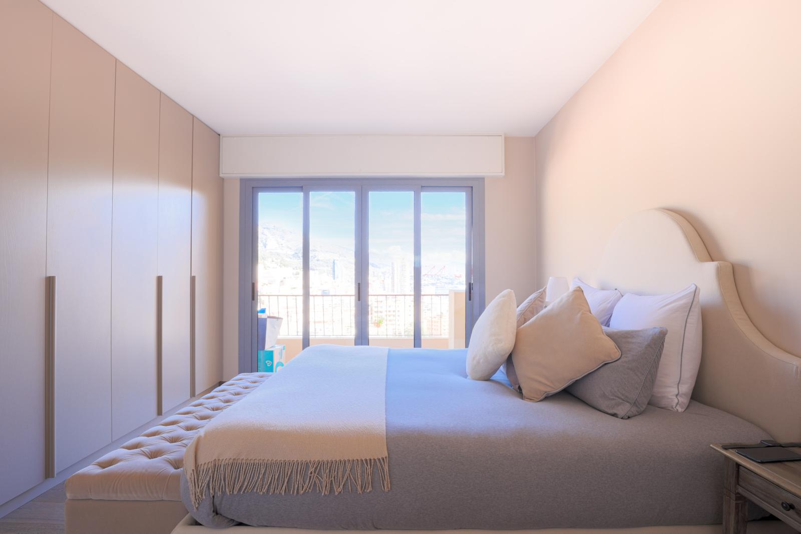 Superbe deux pièces entièrement rénové avec des matériaux haut de gamme, offrant une magnifique terrasse avec vue imprenable sur le Port Hercule, la Méditerranée et le Rocher de Monaco.