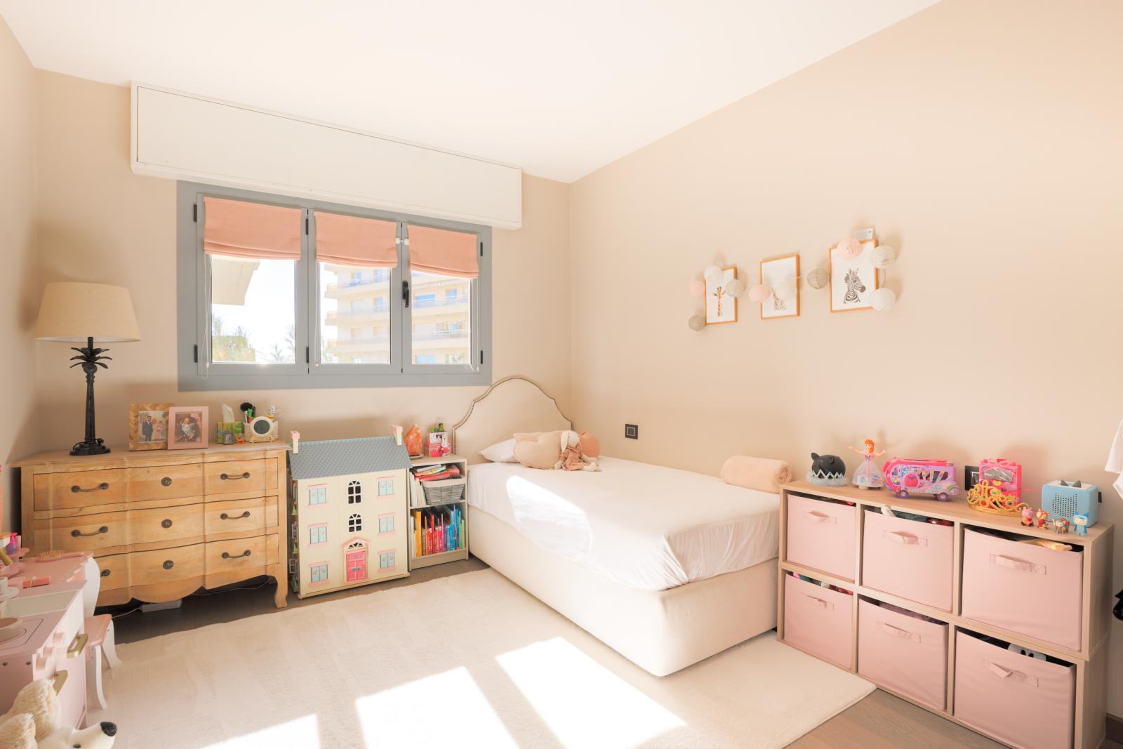 Cet appartement de 4 pièces est composé d'une belle entrée menant au salon/salle à manger, une cuisine ouverte entièrement équipée et une buanderie, une chambre de maitre avec sa salle de bains, une chambre en suite avec salle de douche et une troisième chambre.