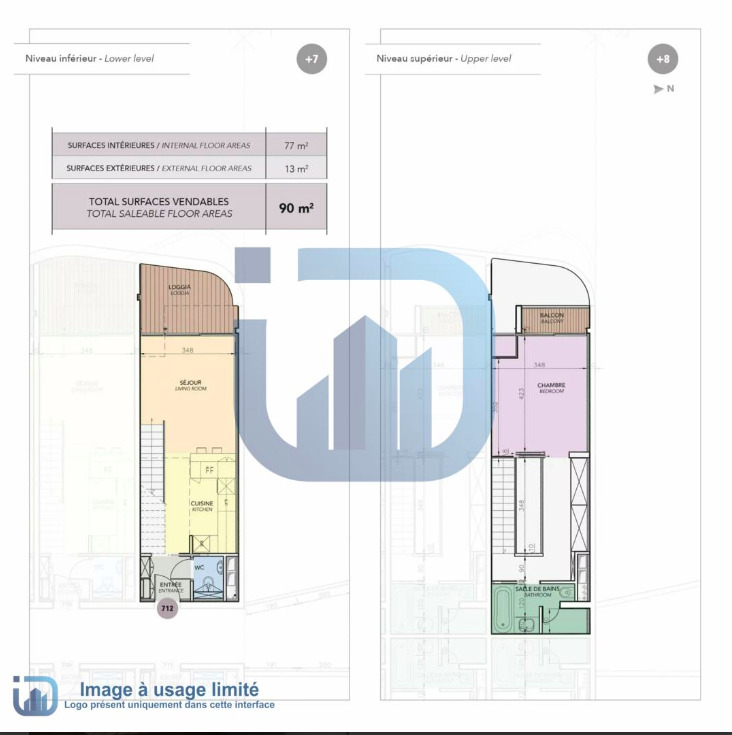 Dans une résidence de standing avec concierge, cet appartement de 2 pièces en duplex au 7ème et 8ème étage avec vue sur le palais de Monaco se compose : d’une entrée, une cuisine américaine équipée, un séjour, un WC et une loggia. À l’étage, un grand dressing, une chambre à coucher avec un balcon et une salle de bains.
