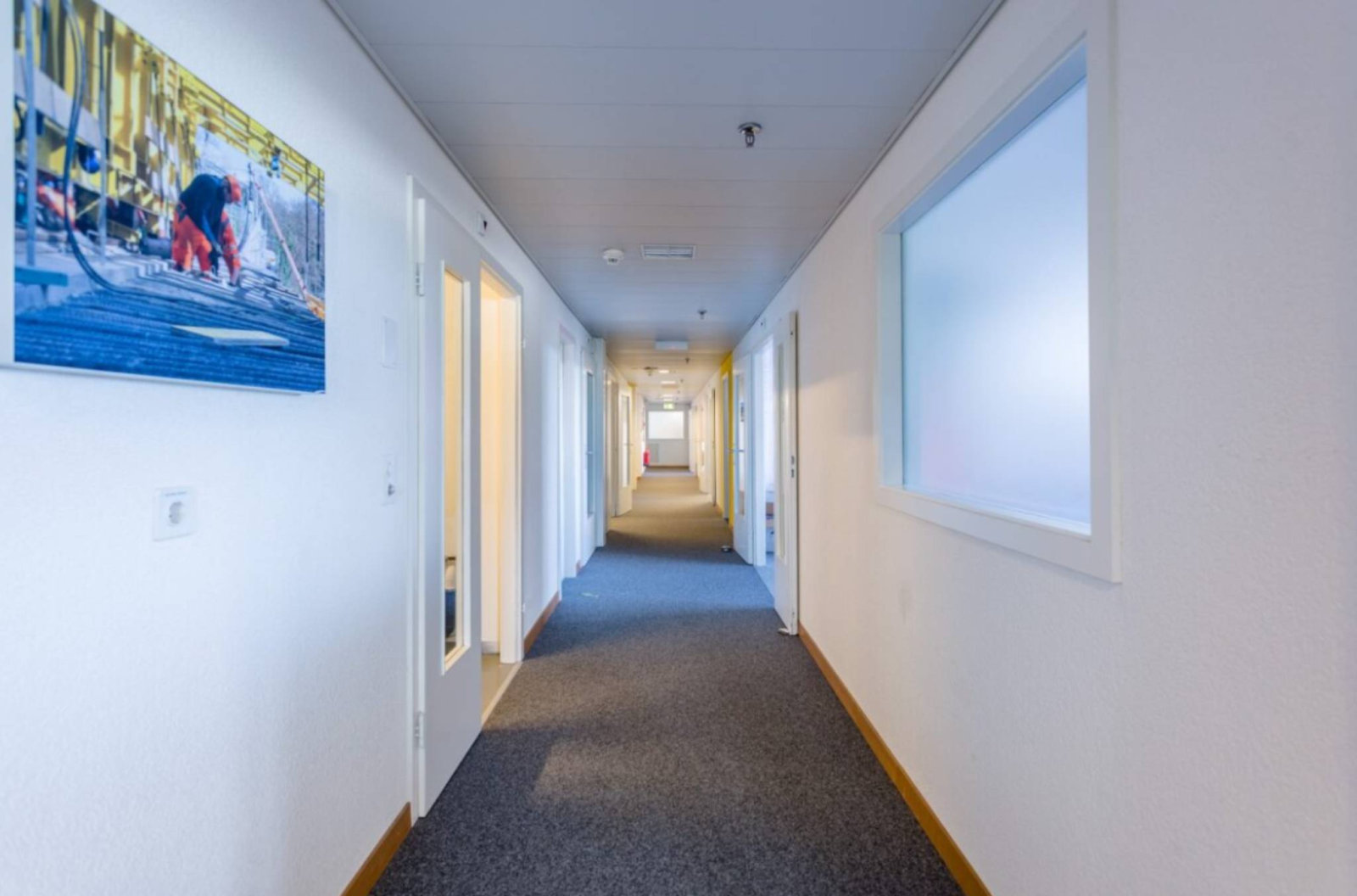 Ce grand bureau se trouve au 1er étage. Il est composé d'un bureau privatif et un grand espace ouvert. Partie commune avec les autres locataires de l'étage: kitchenette, salle de conférence, et sanitaires. La surface dispose d'installations électriques qui sont intégrées en périphérie.