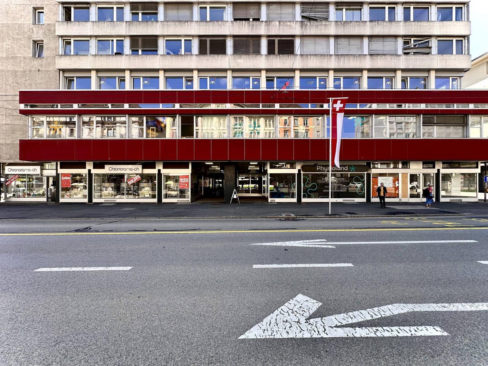 Commerces : restaurants, banques, magasins, pharmacie, Migros...