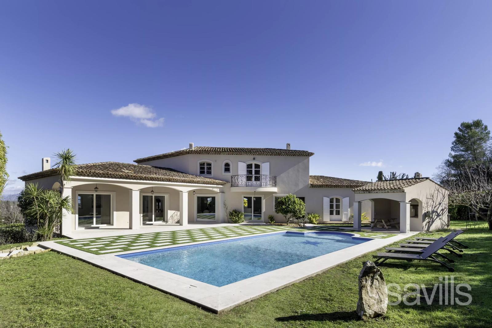 Dans le cadre verdoyant et recherché de Grasse, cette somptueuse demeure de 227 m² allie confort moderne, élégance intemporelle et art de vivre méditerranéen. Le vaste salon lumineux, prolongé par une salle à manger conviviale, s’ouvre sur une grande cuisine séparée, entièrement équipée, idéale pour partager des moments gourmands en famille ou entre amis. L’espace nuit se compose de cinq chambres spacieuses et quatre salles de bains raffinées, tandis qu’un pool house aménagé offre une sixième chambre pour accueillir vos invités en toute indépendance. Le terrain paysager de 1 960 m², enrichi d’essences méditerranéennes, abrite une piscine en pierre scintillante, un jacuzzi et de multiples terrasses et coins ombragés, parfaits pour profiter du climat azuréen et du cadre naturel. Rare et raffinée, cette propriété séduit par ses volumes généreux, ses prestations haut de gamme et son emplacement privilégié, à quelques minutes des commodités, des écoles internationales et des villages pittoresques de l’arrière-pays grassois, offrant un style de vie unique sur la Côte d’Azur.