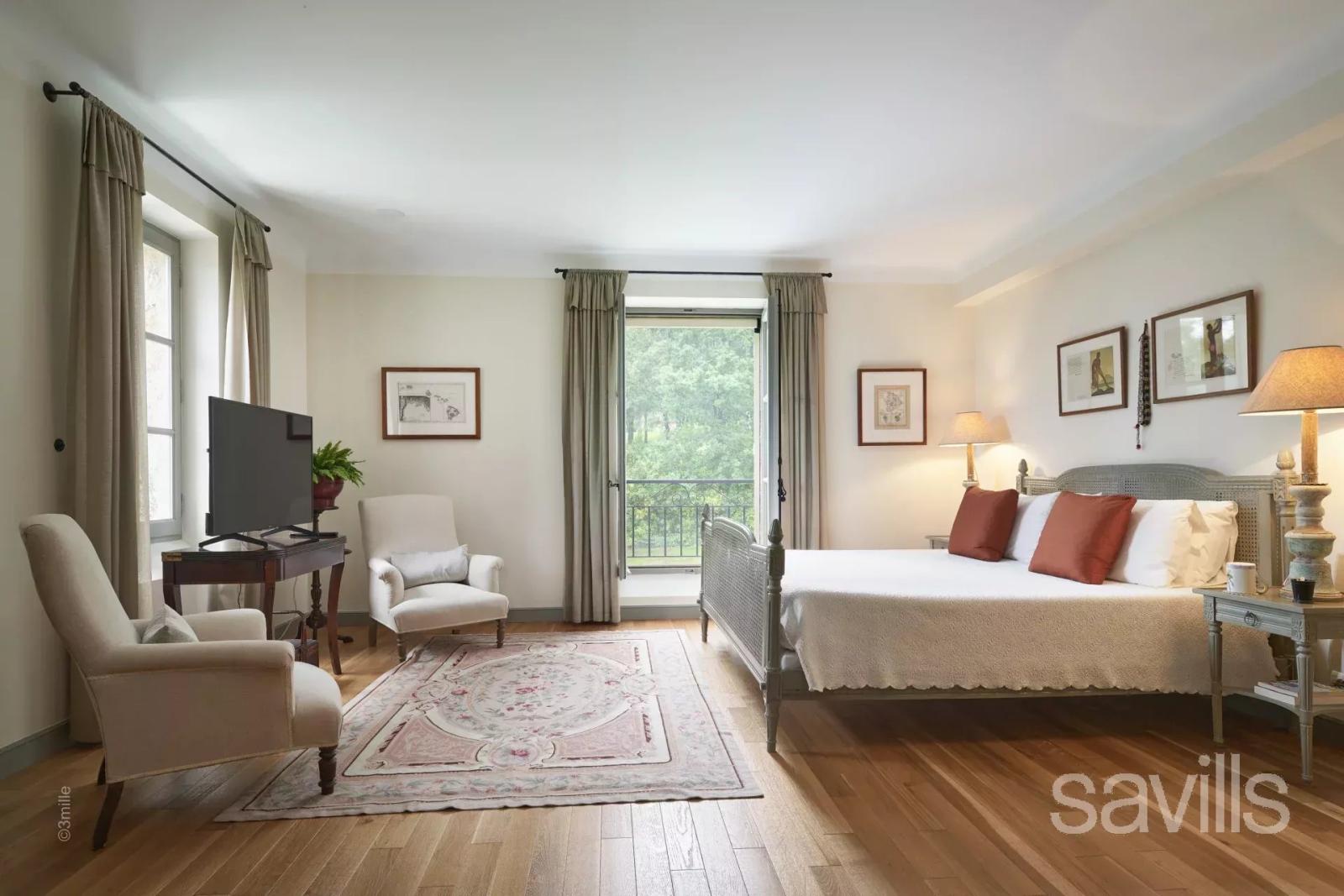 La spacieuse chambre principale située au rez-de-chaussée peut être utilisée de manière indépendante, étant équipée d'une kitchenette et d'une entrée privée.