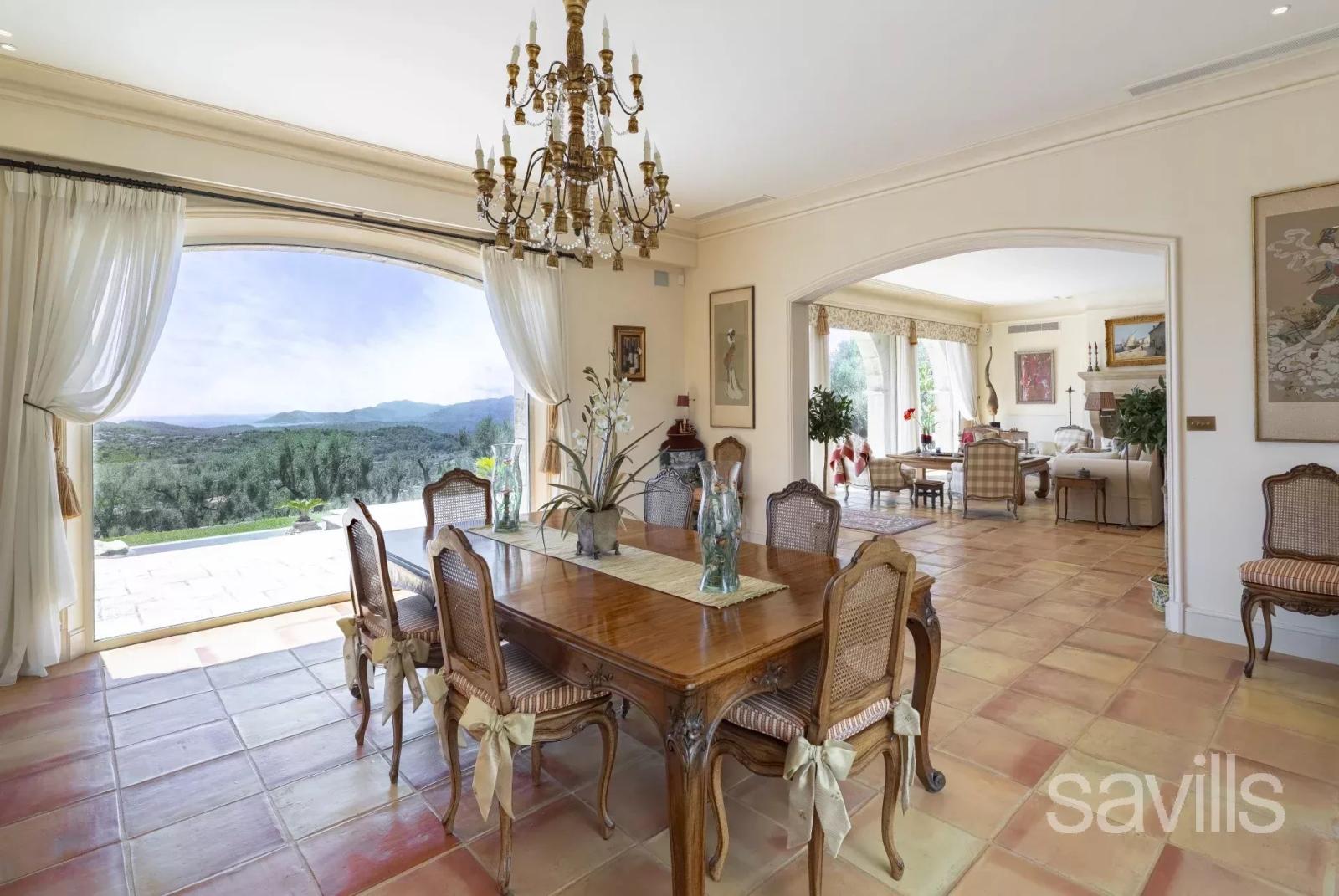 À Mougins, au cœur d’un domaine privé, fermé et sécurisé, cette élégante villa de 250 m² offre un cadre de vie paisible et raffiné, à quelques pas de l’étang de Fontmerle, des commerces, des écoles et des grands axes routiers. Baignée de lumière, sans vis-à-vis, elle bénéficie d’une exposition idéale et de superbes vues dégagées sur les collines environnantes. Dès l’entrée, un vaste hall avec vestiaire mène à un séjour lumineux doté d’une cheminée, de poutres apparentes et d’une belle hauteur sous plafond. La salle à manger s’ouvre sur une cuisine indépendante, moderne et fonctionnelle, avec buanderie attenante. Le rez-de-chaussée comprend deux chambres, dont une belle suite parentale de 27 m² avec salle de bains et toilettes, ainsi qu’une seconde chambre avec sa salle de bains privative. Un grand bureau, baigné de lumière et ouvert sur le jardin, constitue un espace idéal pour le télétravail. À l’étage, deux chambres supplémentaires profitent d’une vue panoramique sur le massif de l’Esterel et partagent une salle de douche avec WC. Le sous-sol accueille une chambre de service avec salle d’eau, trois caves, un atelier, ainsi qu’un vaste garage de près de 70 m². À l’extérieur, le terrain de 1 700 m² paysagé avec soin abrite une piscine au sel chauffée, un pool house avec cuisine d’été, de vastes terrasses et une végétation méditerranéenne généreuse. Située dans un lotissement de 14 lots sans procédure en cours, cette propriété allie calme absolu et proximité des commodités, avec des charges annuelles limitées à 300 €. Un bien rare à quelques minutes de Cannes, Nice et de l’aéroport international.