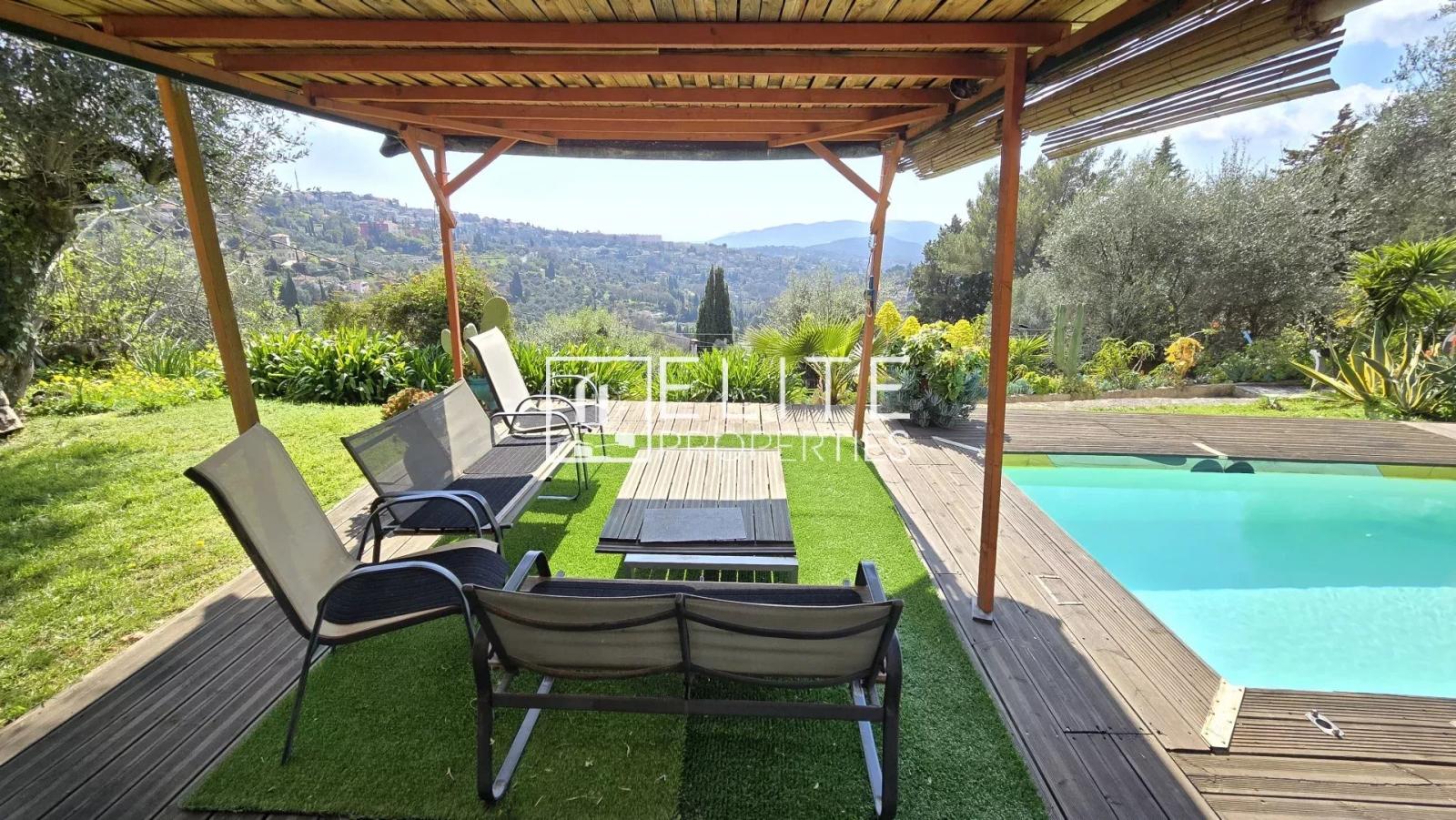 EXCLUSIVITÉ GRASSE – Véritable havre de paix pour cette maison 5 pièces de 120 m² (100m² loi Carrez) + 16m² de pool house, au calme et sans vis à vis, bénéficiant d’une vue panoramique jusqu’à la mer et les collines, avec une exposition plein sud.