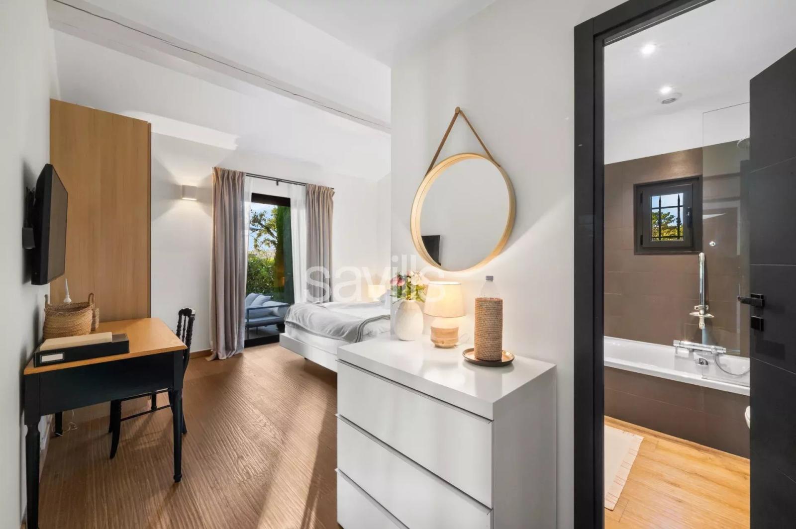 La villa bénéficie de cinq chambres en suite, dont une suite parentale paisible avec une salle de bains complète et un dressing.