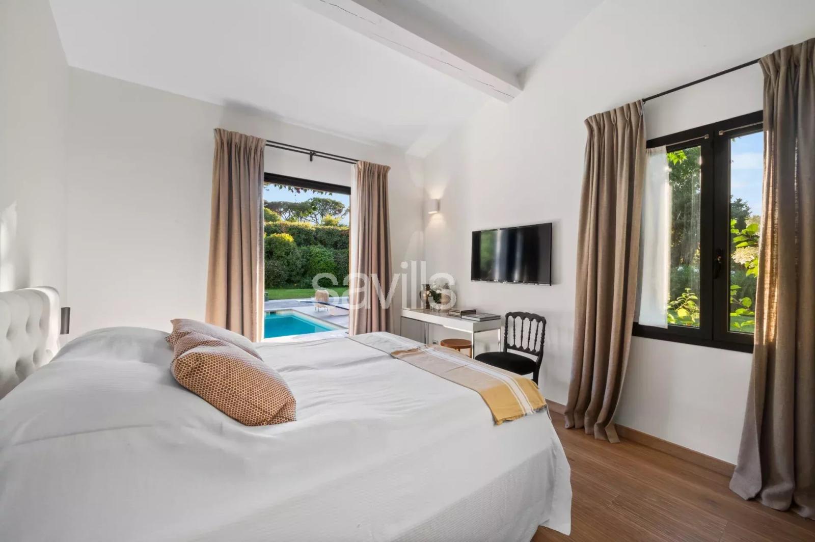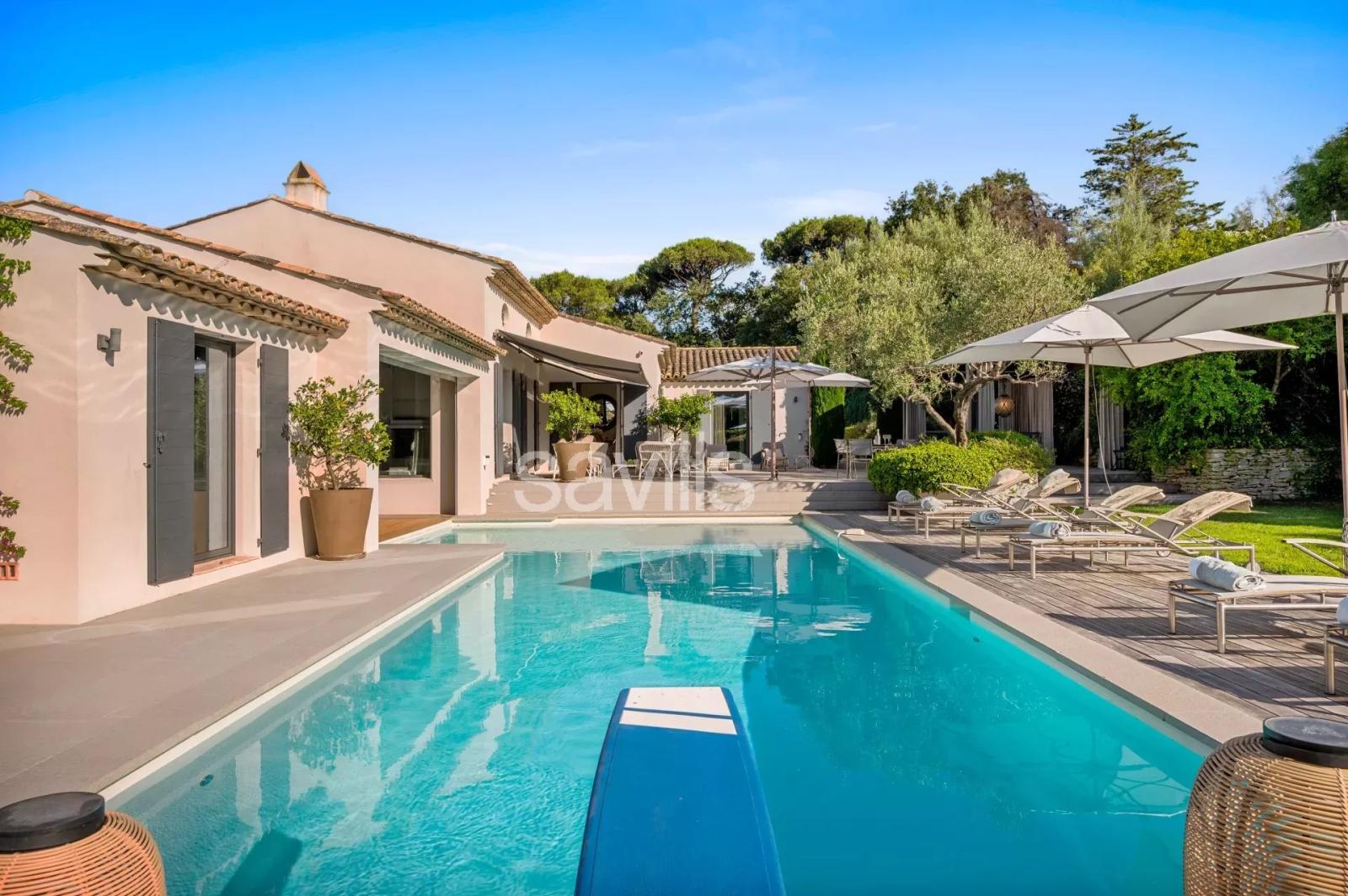 CO-EXCLUSIVITE Idéalement située entre la Plage de Pampelonne et Saint-Tropez, cette propriété s’inscrit au cœur d’un jardin paysager de près d'un hectare d’inspiration provençale, dans un environnement privilégié et préservé. La villa séduit par la générosité de ses volumes et la fluidité de ses espaces. Le vaste séjour lumineux, organisé autour d’une cheminée centrale, réunit salon et salles à manger et s’ouvre largement sur une terrasse offrant une vue dégagée sur la mer et les collines, ainsi que sur un patio paysager plus intime. La cuisine indépendante, entièrement équipée, se prolonge par une terrasse couverte avec espace repas et barbecue, idéale pour recevoir. La propriété propose sept chambres, dont plusieurs suites, réparties harmonieusement pour garantir confort et intimité. À l’étage, la suite principale dispose d’un dressing, d’une salle de bains complète avec baignoire et douche, et d’une terrasse privative bénéficiant d’une vue mer. Une chambre pour le personnel ainsi qu’une buanderie complètent l’ensemble. Le jardin en restanques dévoile différents espaces de détente, avec un terrain de pétanque et, en contrebas, une piscine chauffée de 6 x 13 mètres accompagnée de son pool house aménagé avec bar et salons ombragés. Climatisation réversible, fibre internet, système d’alarme et stationnement pour quatre véhicules avec borne de recharge électrique viennent parfaire cette propriété, conjuguant raffinement, prestations haut de gamme et douceur de vivre sur la presqu’île.