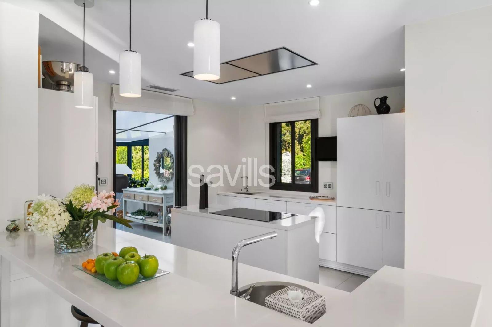 La cuisine, pensée pour allier esthétisme et praticité, est équipée d’un îlot central, d’électroménagers haut de gamme, d’un comptoir-bar et d’une arrière-cuisine.