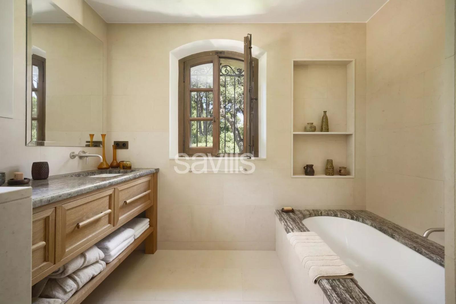 CO-EXCLUSIVITE Idéalement située entre la Plage de Pampelonne et Saint-Tropez, cette propriété s’inscrit au cœur d’un jardin paysager de près d'un hectare d’inspiration provençale, dans un environnement privilégié et préservé. La villa séduit par la générosité de ses volumes et la fluidité de ses espaces. Le vaste séjour lumineux, organisé autour d’une cheminée centrale, réunit salon et salles à manger et s’ouvre largement sur une terrasse offrant une vue dégagée sur la mer et les collines, ainsi que sur un patio paysager plus intime. La cuisine indépendante, entièrement équipée, se prolonge par une terrasse couverte avec espace repas et barbecue, idéale pour recevoir. La propriété propose sept chambres, dont plusieurs suites, réparties harmonieusement pour garantir confort et intimité. À l’étage, la suite principale dispose d’un dressing, d’une salle de bains complète avec baignoire et douche, et d’une terrasse privative bénéficiant d’une vue mer. Une chambre pour le personnel ainsi qu’une buanderie complètent l’ensemble. Le jardin en restanques dévoile différents espaces de détente, avec un terrain de pétanque et, en contrebas, une piscine chauffée de 6 x 13 mètres accompagnée de son pool house aménagé avec bar et salons ombragés. Climatisation réversible, fibre internet, système d’alarme et stationnement pour quatre véhicules avec borne de recharge électrique viennent parfaire cette propriété, conjuguant raffinement, prestations haut de gamme et douceur de vivre sur la presqu’île.