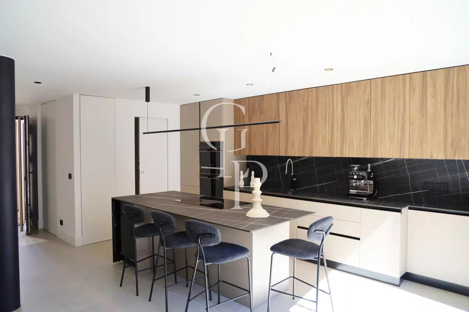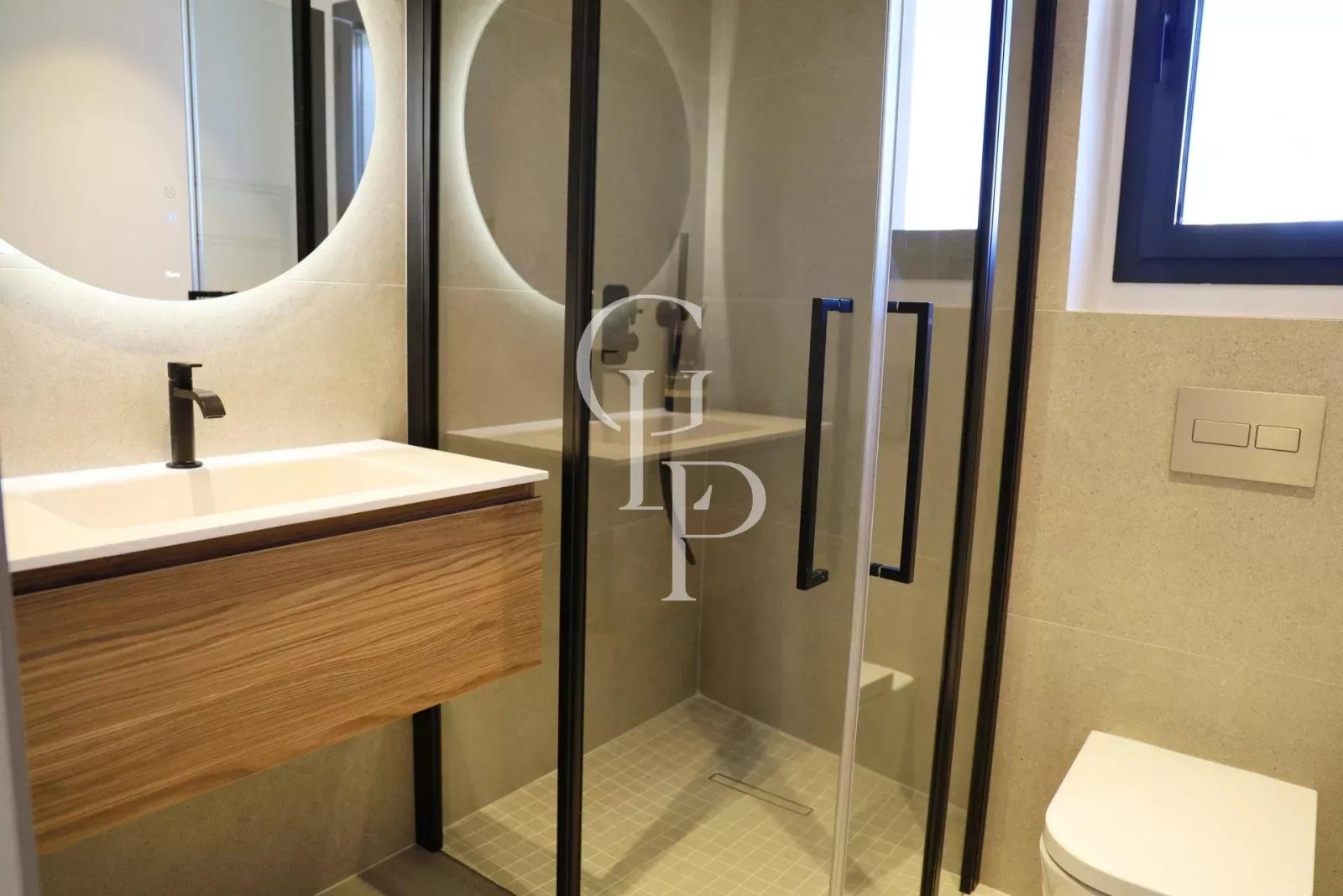 Dès l’entrée, vous découvrez un espace de vie spacieux et contemporain, composé d’un salon design, d’une salle à manger conviviale et d’une cuisine ouverte entièrement équipée. Le rez-de-chaussée s’ouvre sur deux terrasses ensoleillées, parfaites pour profiter du climat méditerranéen en toute intimité.