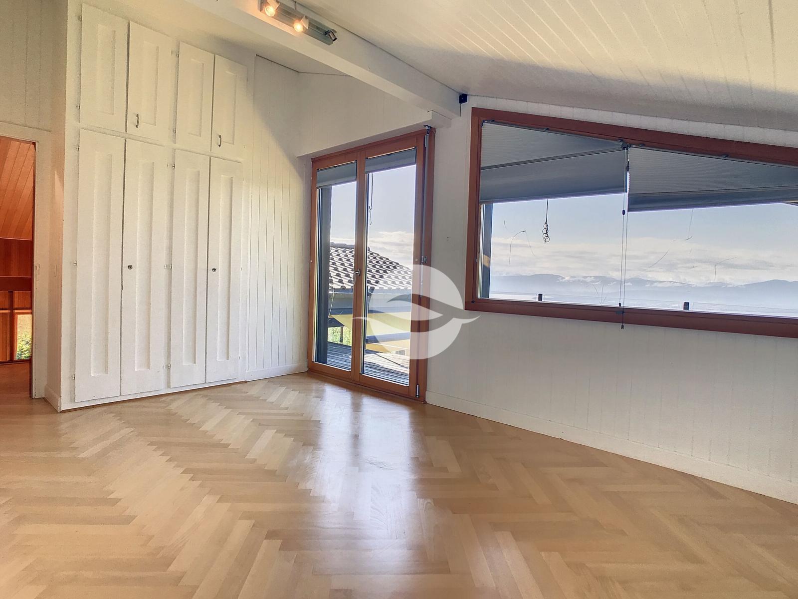 Situé dans un chemin sans issue du village d'Arzier-le-Muids, cette maison bien entretenue profite d'un emplacement privilégié avec une superbe vue sur le bassin lémanique et la chaîne des Alpes. Répartie sur plusieurs demi-niveaux, elle propose de beaux espaces et un studio avec accès indépendant au niveau inférieur.
