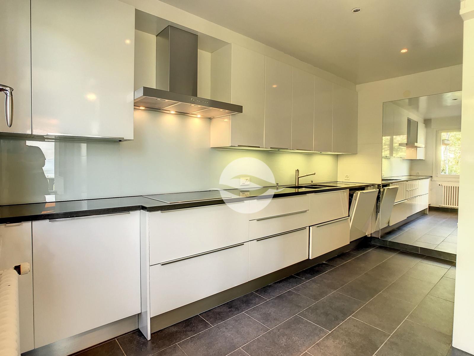 - Cuisine entièrement équipée, électroménagers neufs (machine à laver, la vaisselle et lave-linge), accès au balcon donnant sur le parc
