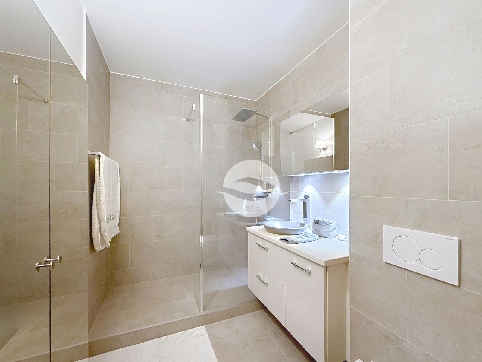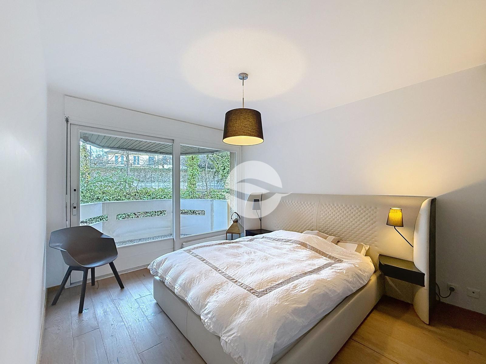 Cette villa de style contemporain remplit les critères Minergie et offre deux appartements de standing au bord du lac Léman, dans la charmante commune de Perroy.