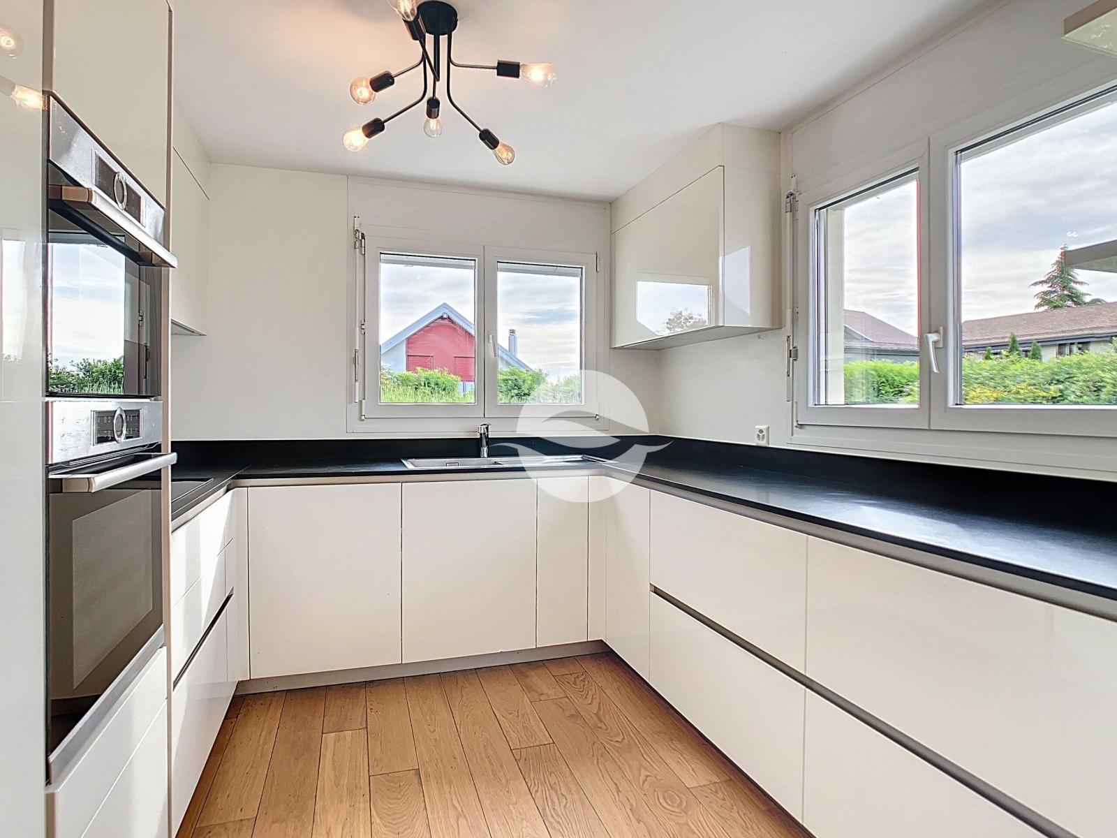 La campagne est à quelques pas et permet de s'aérer rapidement tout en offrant une proximité avec la ville, qui se trouve à moins de 10 minutes en voiture. Golf de Cologny à 15 minutes à pied. A l'abri complet des nuisances et entourée de verdure, ce bel appartement spacieux et traversant, rénové récemment au goût du jour offre un cadre de vie des plus agréables!