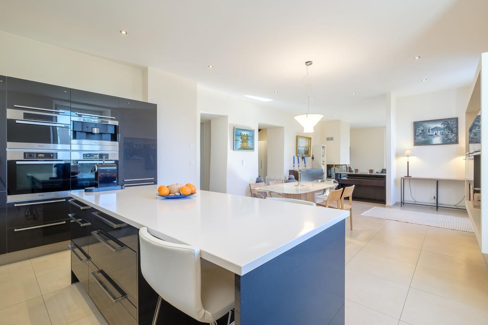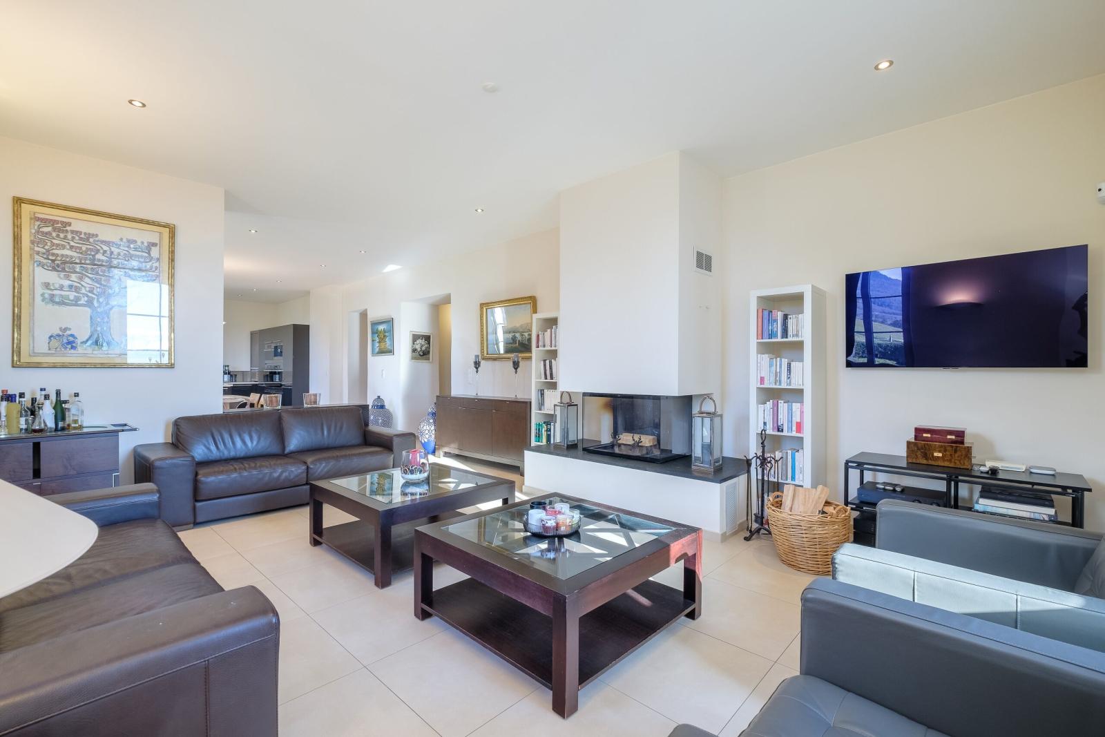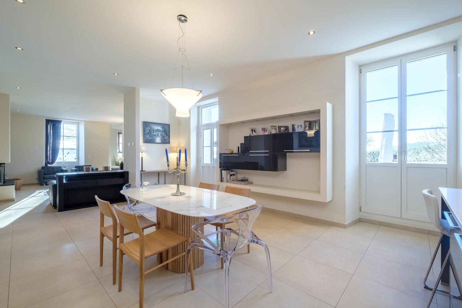 Sa situation exceptionnelle, pieds dans l'eau, est sublimée par la qualité des matériaux choisis. Les grandes baies vitrées lui apportent une luminosité et un sentiment d'espace qui font de ce bien un havre de paix avec vue imprenable sur le lac et les Alpes.