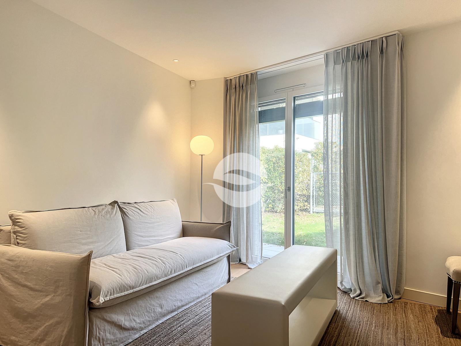 Cette villa de style contemporain remplit les critères Minergie et offre deux appartements de standing au bord du lac Léman, dans la charmante commune de Perroy.
