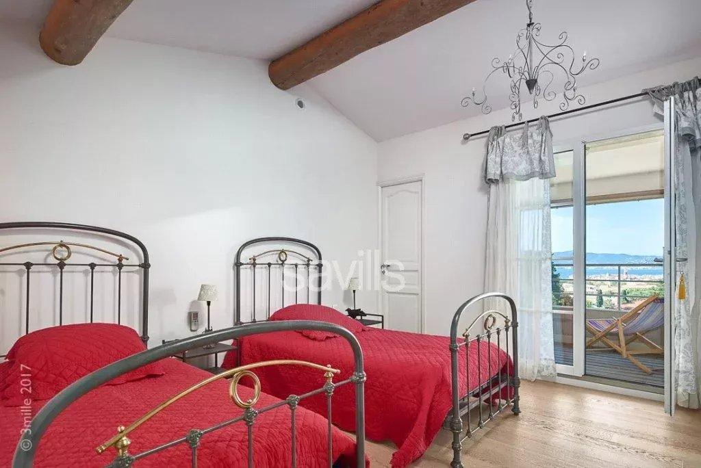 Domaine sécurisé avec gardien Idéalement située dans un domaine privé et sécurisé, cette villa d'exception sur un terrain de 1.246m² offre un cadre de vie idéal pour les amateurs de confort et de tranquillité. La villa comprend une entrée avec toilettes invitées, une buanderie et une cave à vin sous l'escalier. Le salon / salle à manger et la cuisine ouverte équipée s'ouvrent sur des terrasses extérieures, dont une couverte avec espace repas et une pergola bioclimatique abritant un salon et une véranda. Le rez-de-chaussée abrite une chambre principale avec dressing et salle de douche attenante. À l'étage, trois chambres avec salles de douche et dressings, dont une avec balcon. Les extérieurs incluent une terrasse avec pergola, un garage fermé, un terrain de pétanque et une piscine de 9m x 5m. Les équipements de cette villa comprennent la climatisation réversible, une alarme intérieure et extérieure, un système sonore intérieur et extérieur, ainsi qu'un gardien à l’entrée du domaine. Période minimale de location : 2 semaines N° d'enregistrement :83065 000928 FD Les prix varient en fonction de la période de location - seuls les tarifs minimums sont renseignés en annonces : nous vous invitons à nous consulter pour toute demande de tarification. Veuillez noter que des frais de location supplémentaires s’appliquent. Honoraires d’agence à la charge du locataire. Barème des honoraires de location disponible en ligne et sur demande. Veuillez noter que le plan n’indique pas l’emplacement précis du bien et que toutes les mesures sont approximatives, les informations sont fournies à titre indicatif uniquement.