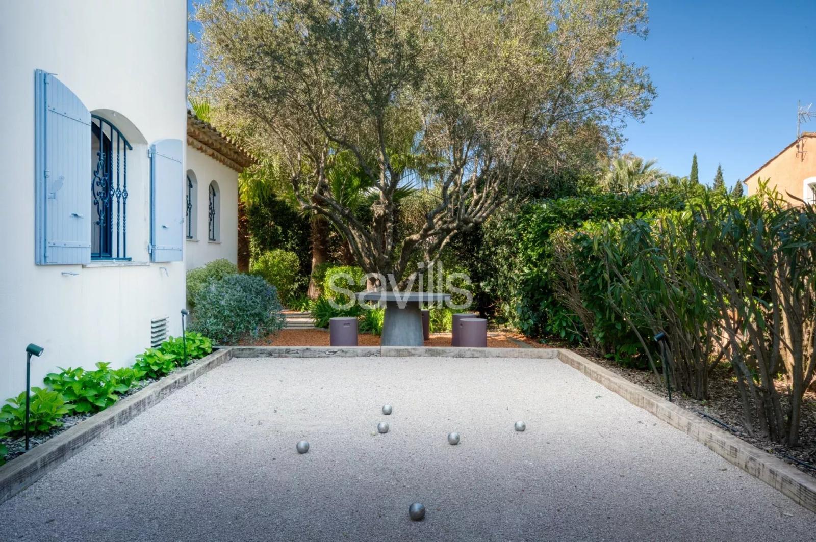 Domaine sécurisé avec gardien Idéalement située dans un domaine privé et sécurisé, cette villa d'exception sur un terrain de 1.246m² offre un cadre de vie idéal pour les amateurs de confort et de tranquillité. La villa comprend une entrée avec toilettes invitées, une buanderie et une cave à vin sous l'escalier. Le salon / salle à manger et la cuisine ouverte équipée s'ouvrent sur des terrasses extérieures, dont une couverte avec espace repas et une pergola bioclimatique abritant un salon et une véranda. Le rez-de-chaussée abrite une chambre principale avec dressing et salle de douche attenante. À l'étage, trois chambres avec salles de douche et dressings, dont une avec balcon. Les extérieurs incluent une terrasse avec pergola, un garage fermé, un terrain de pétanque et une piscine de 9m x 5m. Les équipements de cette villa comprennent la climatisation réversible, une alarme intérieure et extérieure, un système sonore intérieur et extérieur, ainsi qu'un gardien à l’entrée du domaine. Période minimale de location : 2 semaines N° d'enregistrement :83065 000928 FD Les prix varient en fonction de la période de location - seuls les tarifs minimums sont renseignés en annonces : nous vous invitons à nous consulter pour toute demande de tarification. Veuillez noter que des frais de location supplémentaires s’appliquent. Honoraires d’agence à la charge du locataire. Barème des honoraires de location disponible en ligne et sur demande. Veuillez noter que le plan n’indique pas l’emplacement précis du bien et que toutes les mesures sont approximatives, les informations sont fournies à titre indicatif uniquement.