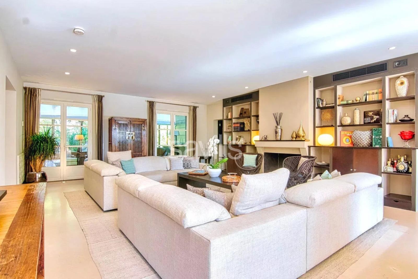 Domaine sécurisé avec gardien Idéalement située dans un domaine privé et sécurisé, cette villa d'exception sur un terrain de 1.246m² offre un cadre de vie idéal pour les amateurs de confort et de tranquillité. La villa comprend une entrée avec toilettes invitées, une buanderie et une cave à vin sous l'escalier. Le salon / salle à manger et la cuisine ouverte équipée s'ouvrent sur des terrasses extérieures, dont une couverte avec espace repas et une pergola bioclimatique abritant un salon et une véranda. Le rez-de-chaussée abrite une chambre principale avec dressing et salle de douche attenante. À l'étage, trois chambres avec salles de douche et dressings, dont une avec balcon. Les extérieurs incluent une terrasse avec pergola, un garage fermé, un terrain de pétanque et une piscine de 9m x 5m. Les équipements de cette villa comprennent la climatisation réversible, une alarme intérieure et extérieure, un système sonore intérieur et extérieur, ainsi qu'un gardien à l’entrée du domaine. Période minimale de location : 2 semaines N° d'enregistrement :83065 000928 FD Les prix varient en fonction de la période de location - seuls les tarifs minimums sont renseignés en annonces : nous vous invitons à nous consulter pour toute demande de tarification. Veuillez noter que des frais de location supplémentaires s’appliquent. Honoraires d’agence à la charge du locataire. Barème des honoraires de location disponible en ligne et sur demande. Veuillez noter que le plan n’indique pas l’emplacement précis du bien et que toutes les mesures sont approximatives, les informations sont fournies à titre indicatif uniquement.