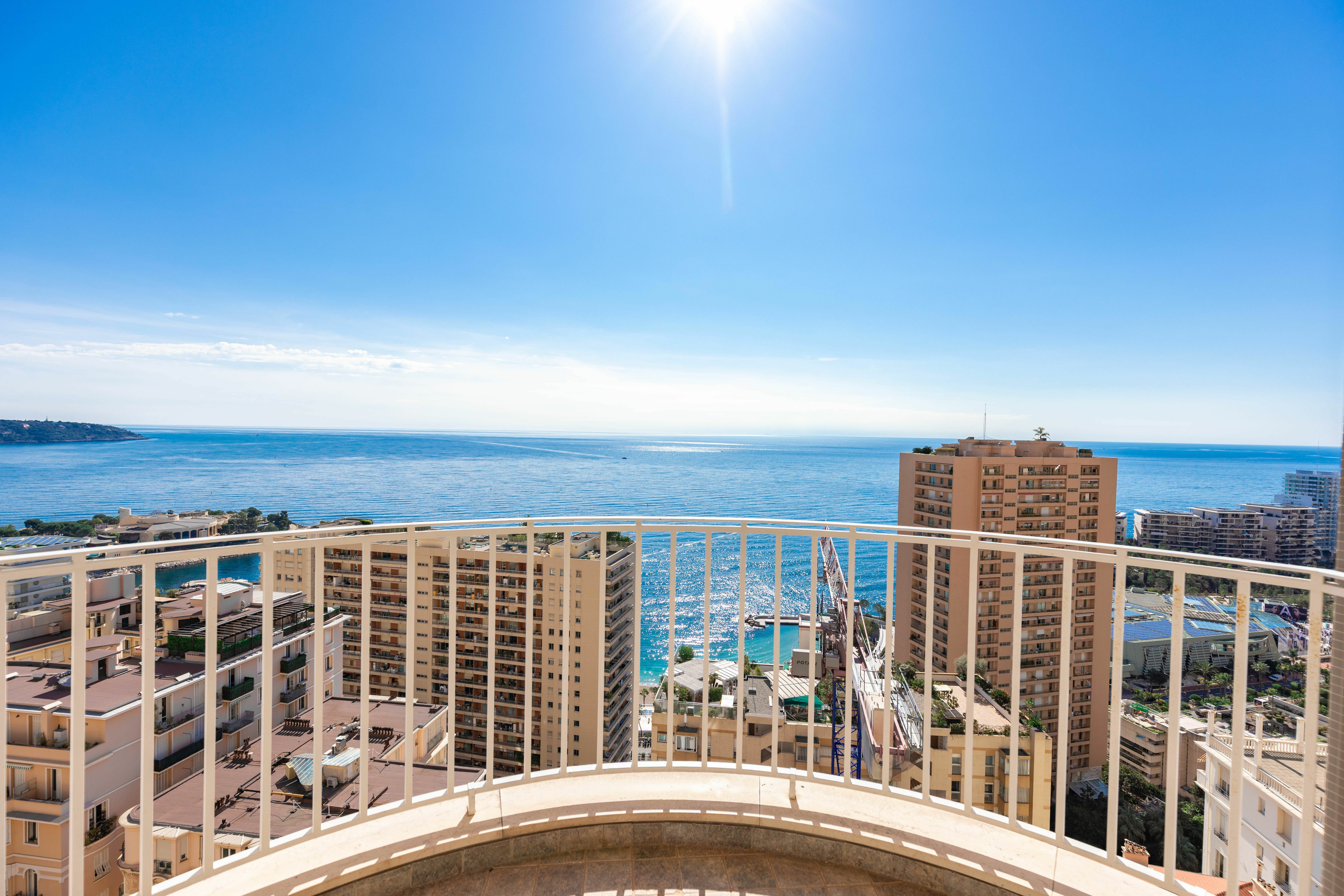 Superbe deux pièces entièrement rénové avec des matériaux haut de gamme, offrant une magnifique terrasse avec vue imprenable sur le Port Hercule, la Méditerranée et le Rocher de Monaco.